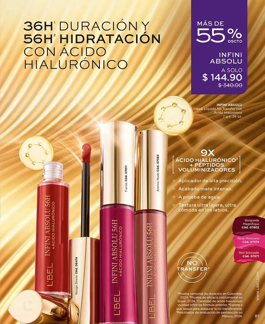 Para un regalo de lujo, «L’Bel Infini» en Edición Limitada, es tu mejor opción. 3 Labiales en un hermoso estuche listo para entregar.