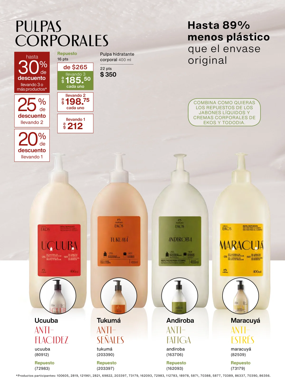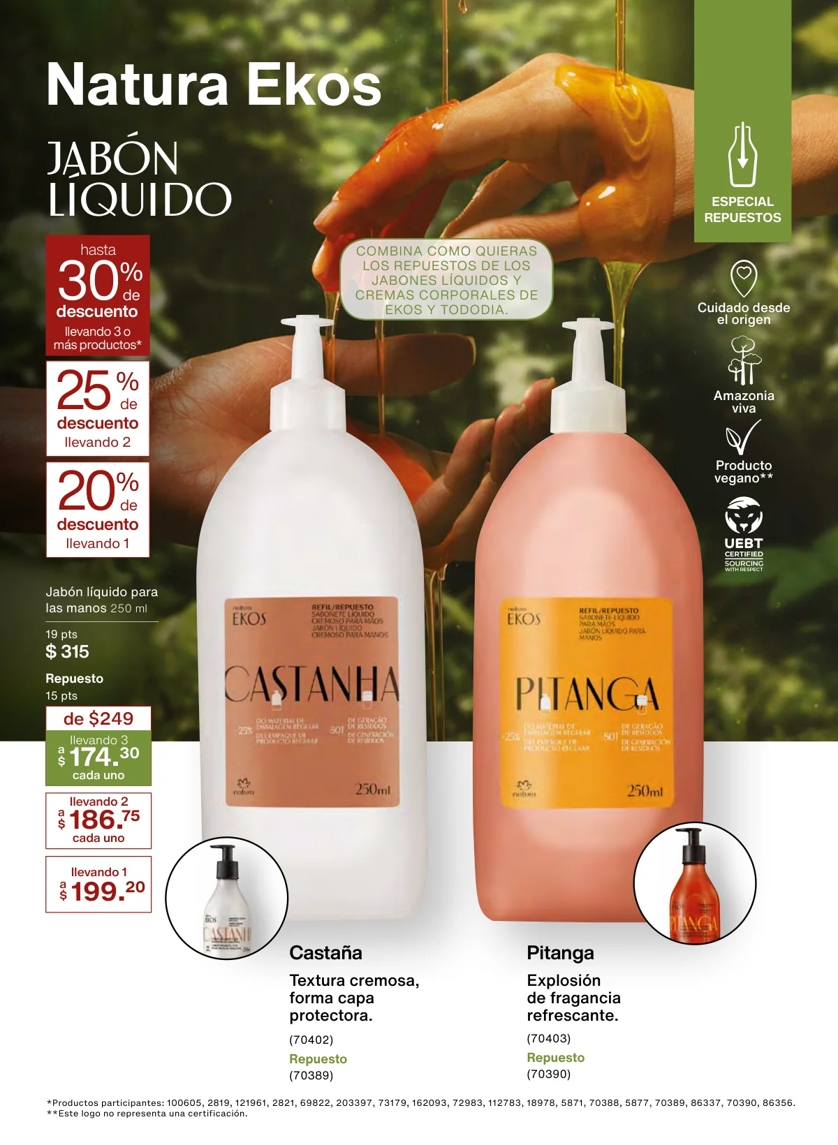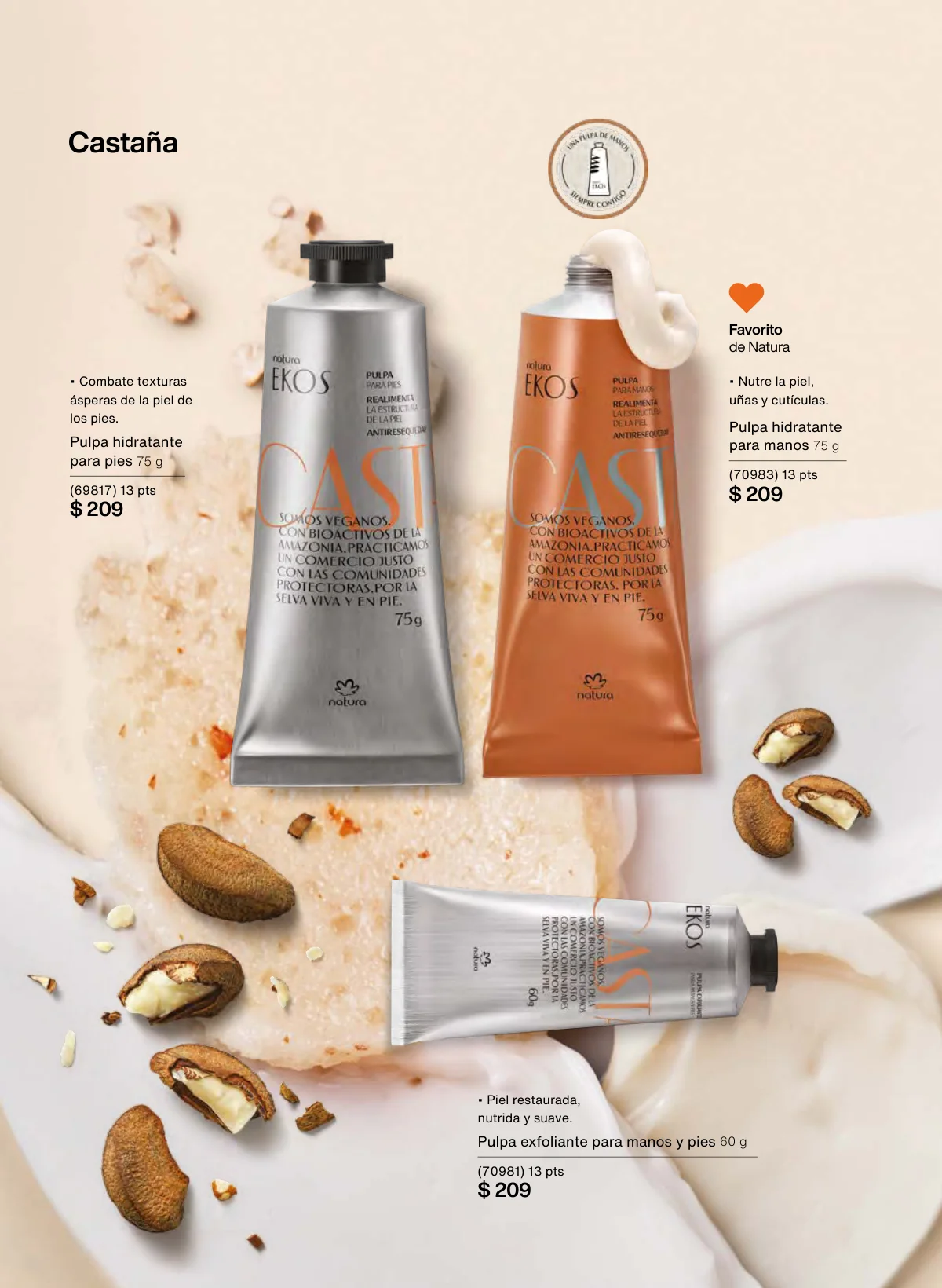 Por su parte Ekos es un clásico en las revistas de Natura, esto porque toda su línea de cuidado personal destaca por sí misma. Sus pulpas hidratantes y aceite corporal son los artículos más interesantes de esta revista porque su poder revitalizador y reequilibrio de la piel, uñas y cutículas es insuperable y a un precio que no se puede dejar pasar.