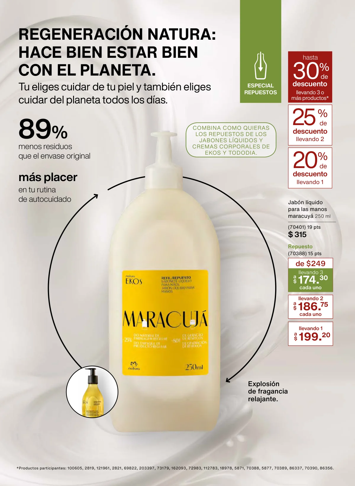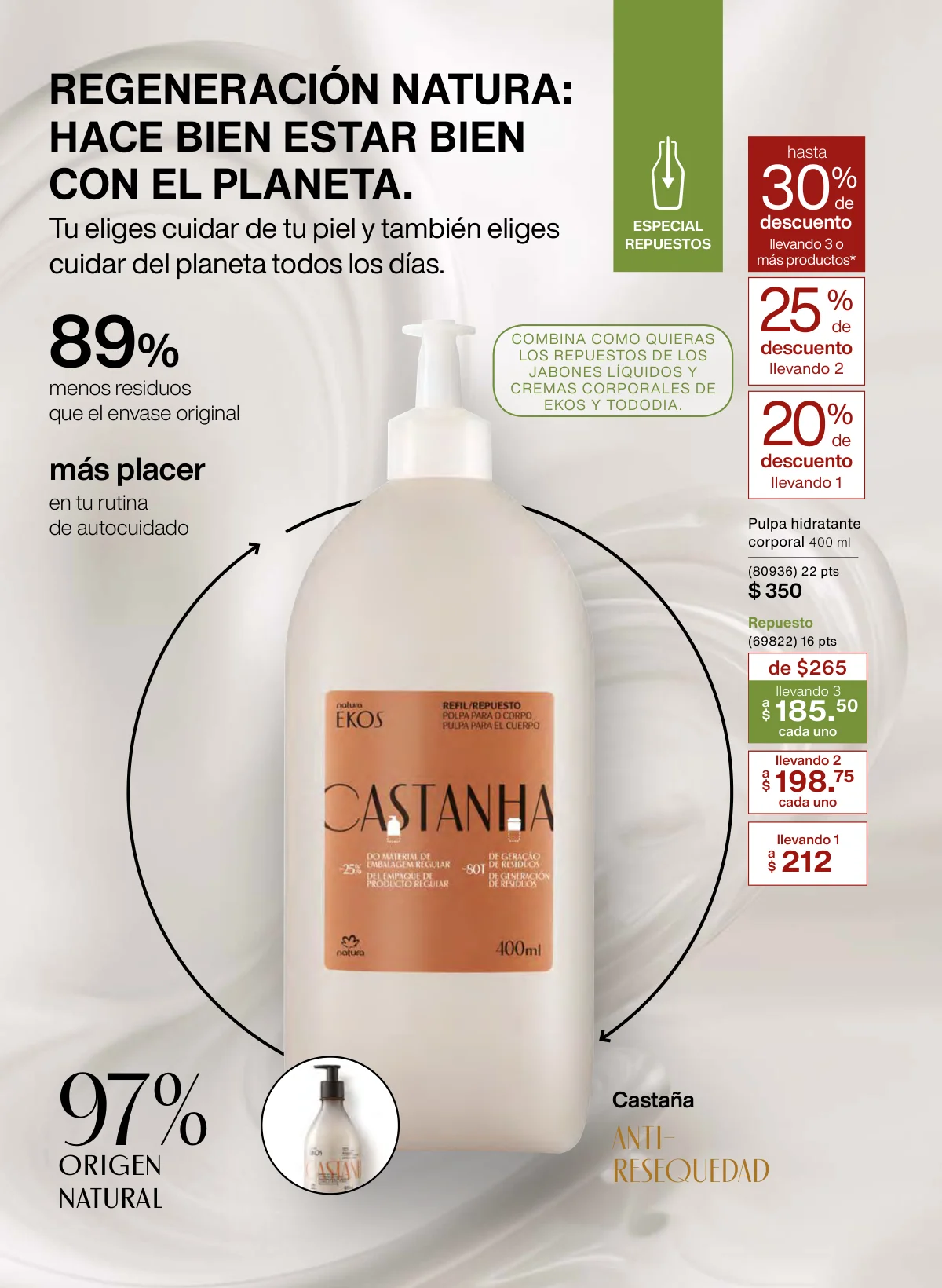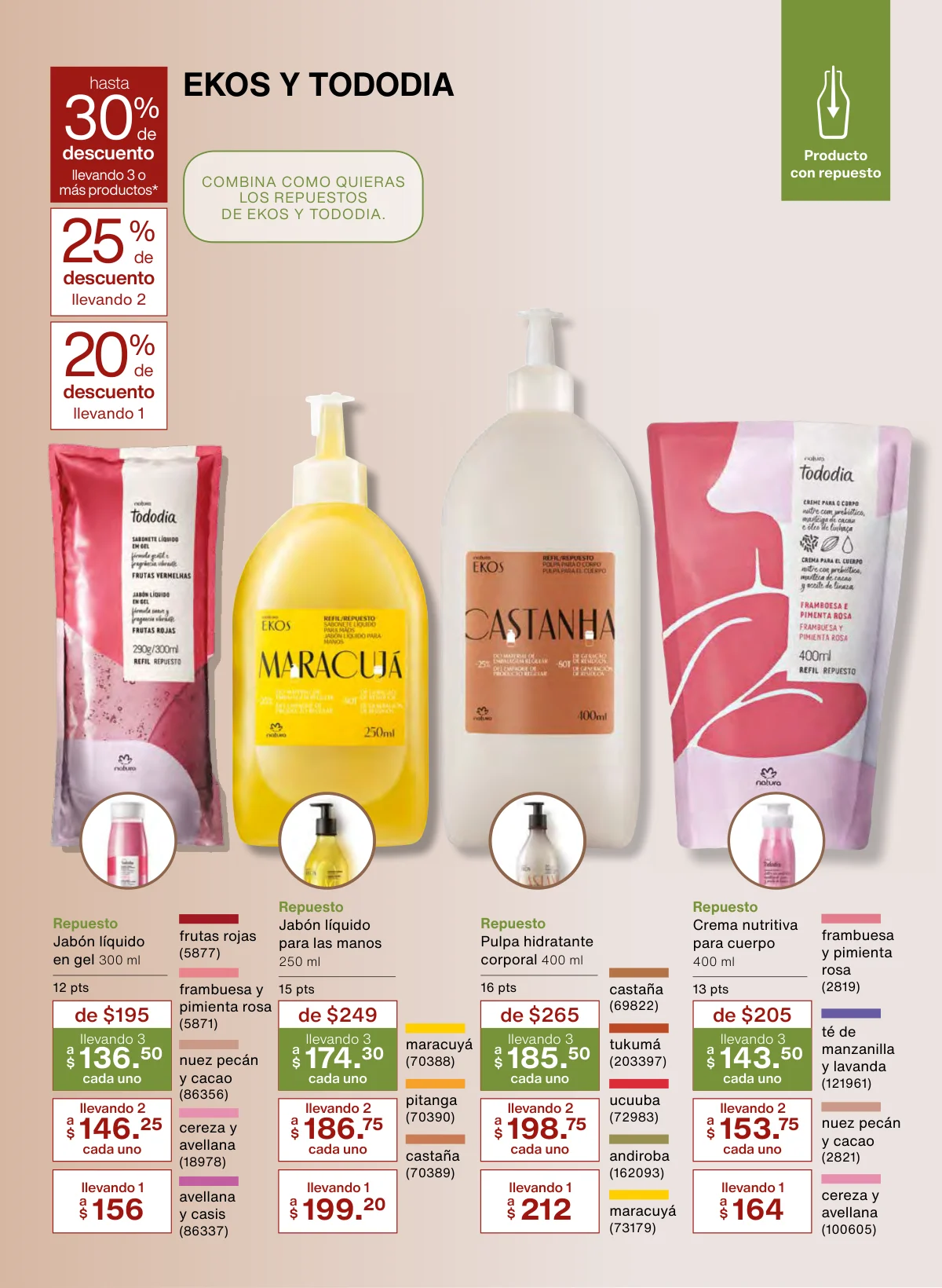Por su parte Ekos es un clásico en las revistas de Natura, esto porque toda su línea de cuidado personal destaca por sí misma. Sus pulpas hidratantes y aceite corporal son los artículos más interesantes de esta revista porque su poder revitalizador y reequilibrio de la piel, uñas y cutículas es insuperable y a un precio que no se puede dejar pasar.