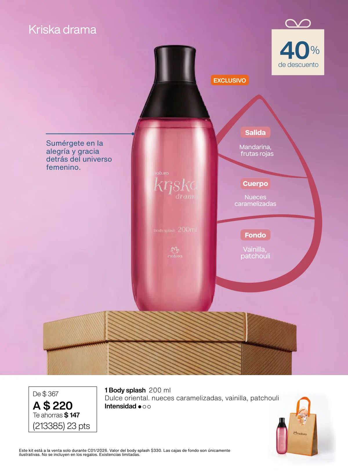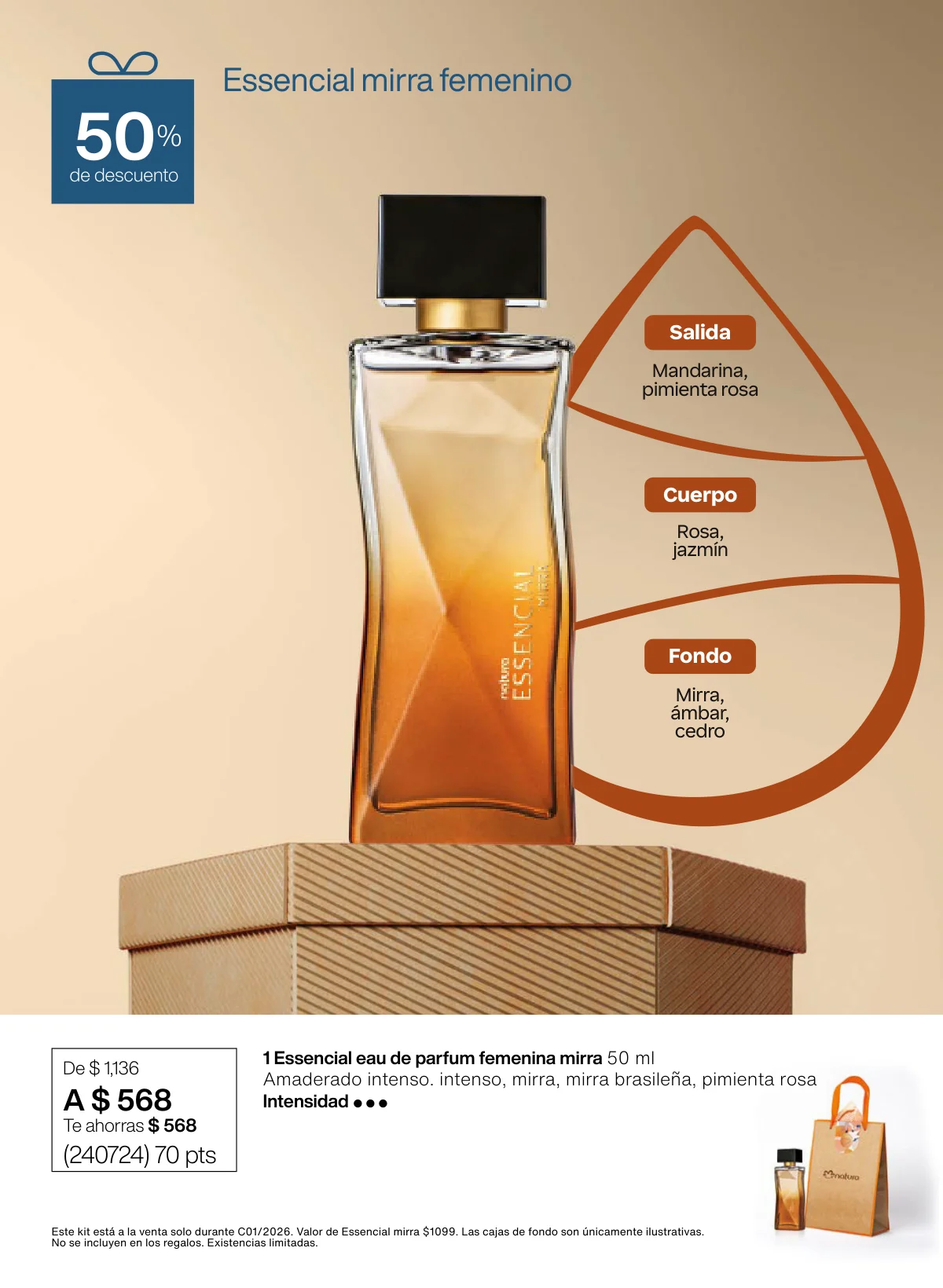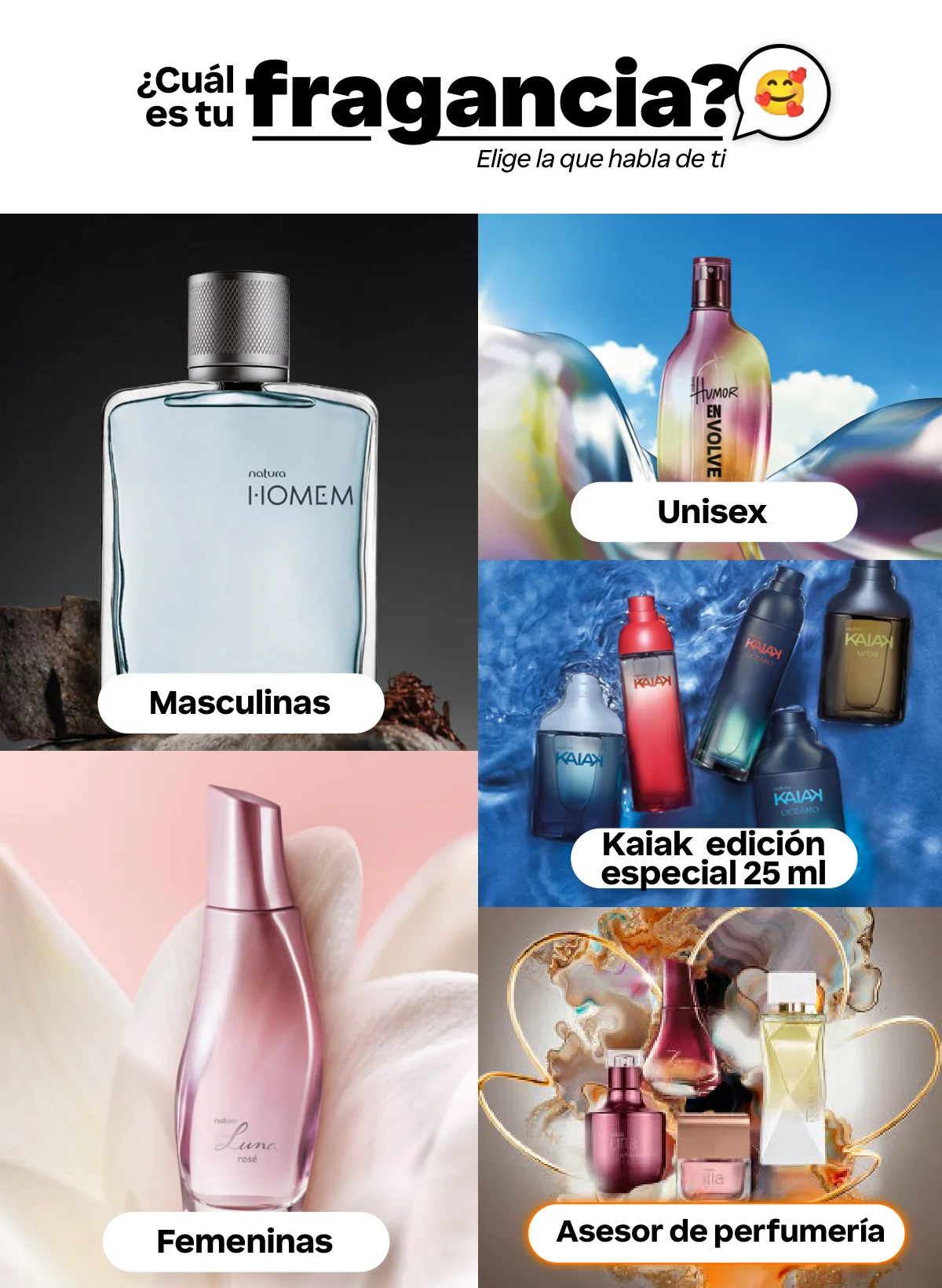 Las fragancias que esta revista 1 2026 para México trae Natura son especiales y únicas. Essencial con su sinuoso frasco trae unos aromas ideales para cualquier momento del día. Los perfumes Una y Luna destacan esa belleza individual que solo necesita unas cuantas gotas extras para ser absolutamente irresistible.