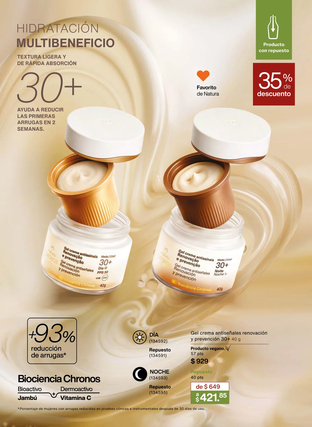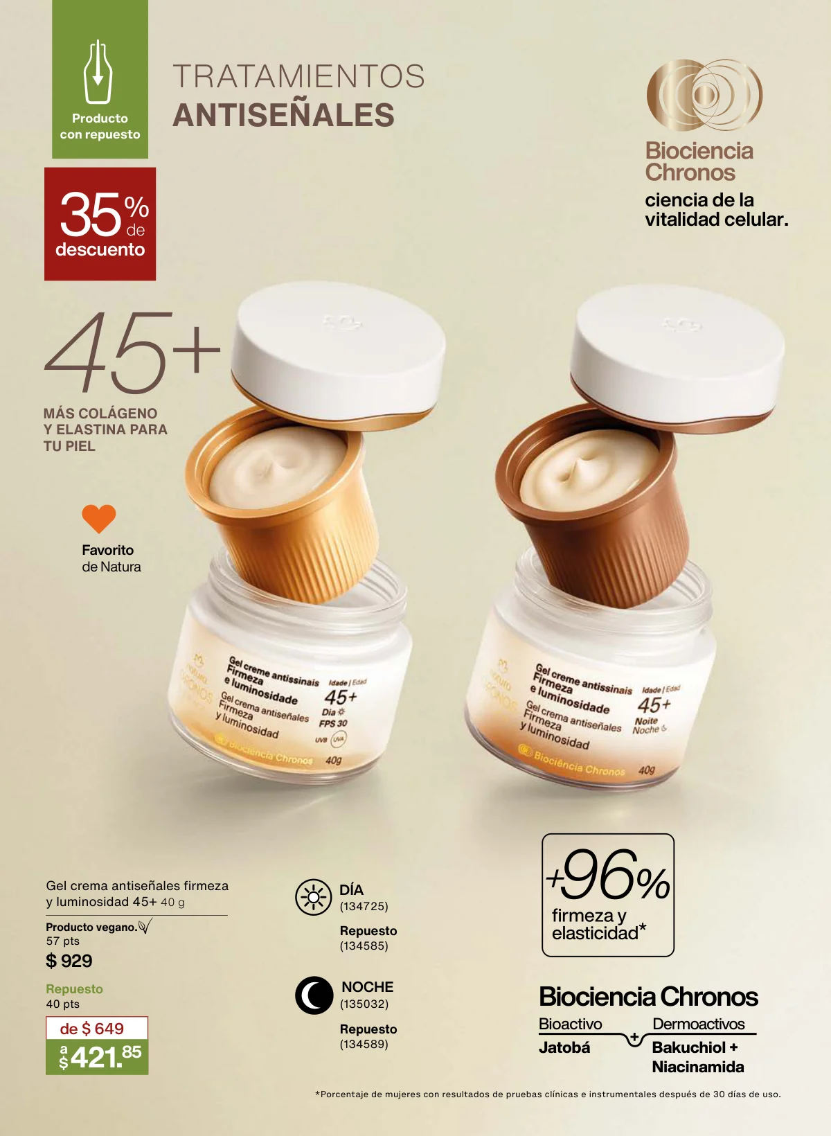 En Natura nos preocupamos por ofrecer productos que permitan un cuidado profundo de la piel. El mayor órgano del cuerpo merece lo mejor y las fórmulas de nuestras mejores marcas lo demuestran. Chronos en esta catálogo Natura Ciclo revista 1 2026 México, trae los mejores tratamientos para combatir los embates de la edad y el clima con fabulosos descuentos.