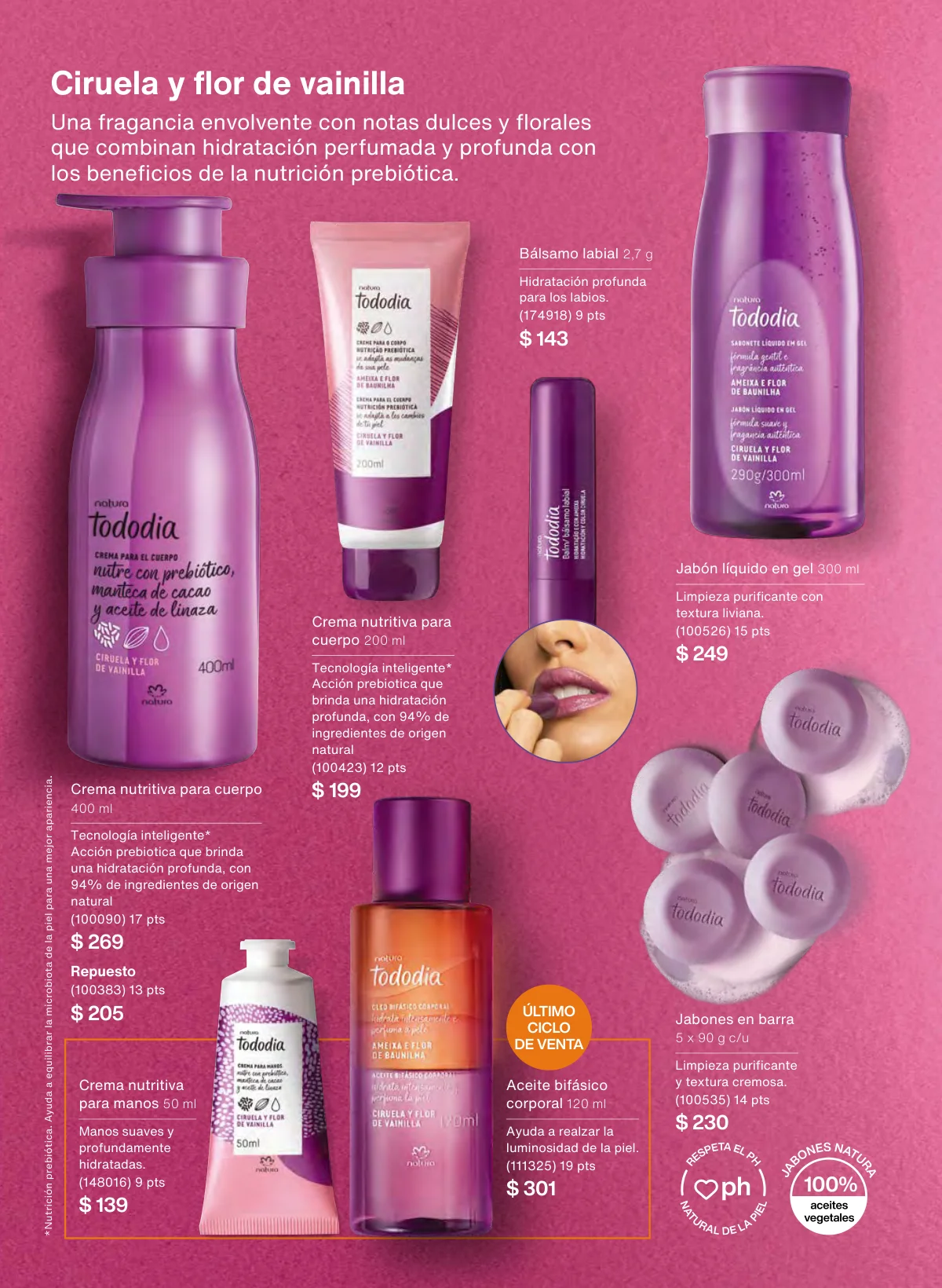 Tododia es la marca a destacar este mes. Esto porque sus cremas nutritivas, jabones en barra o líquido, desodorante y splash con las más deliciosas fragancias de ciruela, flor de vainilla, frutos rojos y demás nutren especialmente nuestra piel mientras la dejan con un aroma y suavidad irresistible.