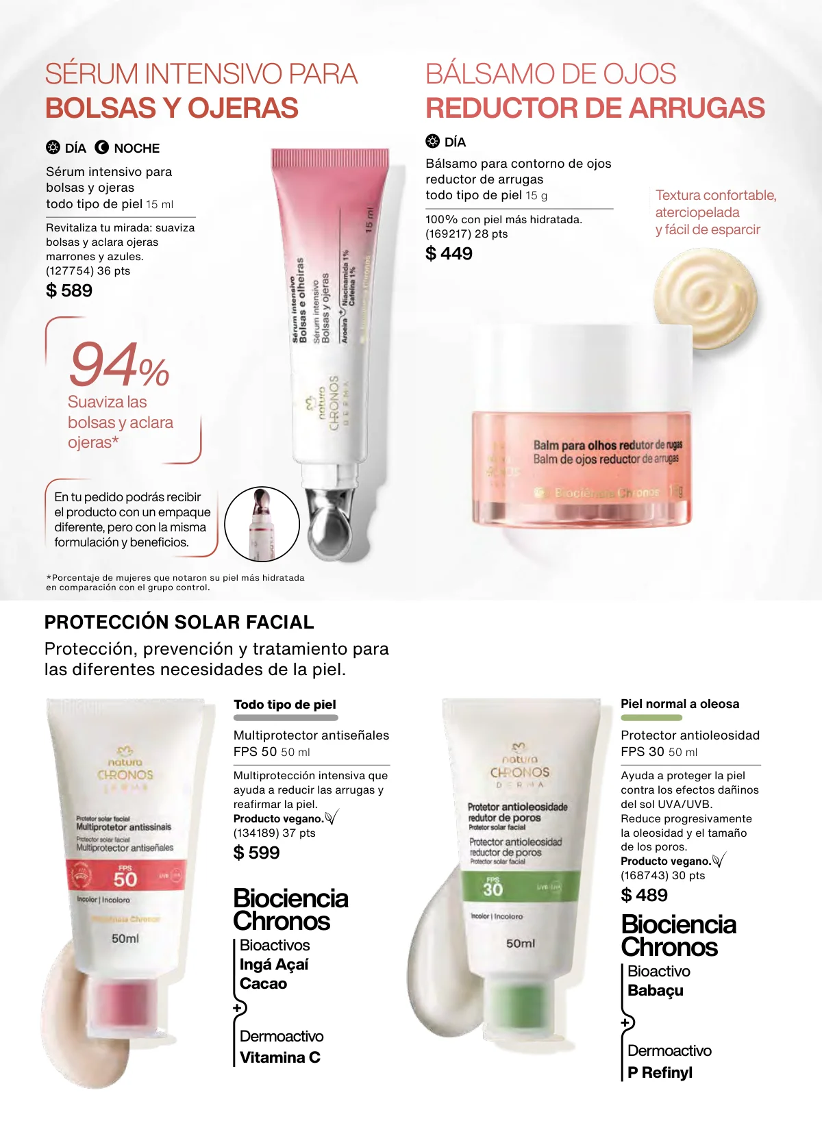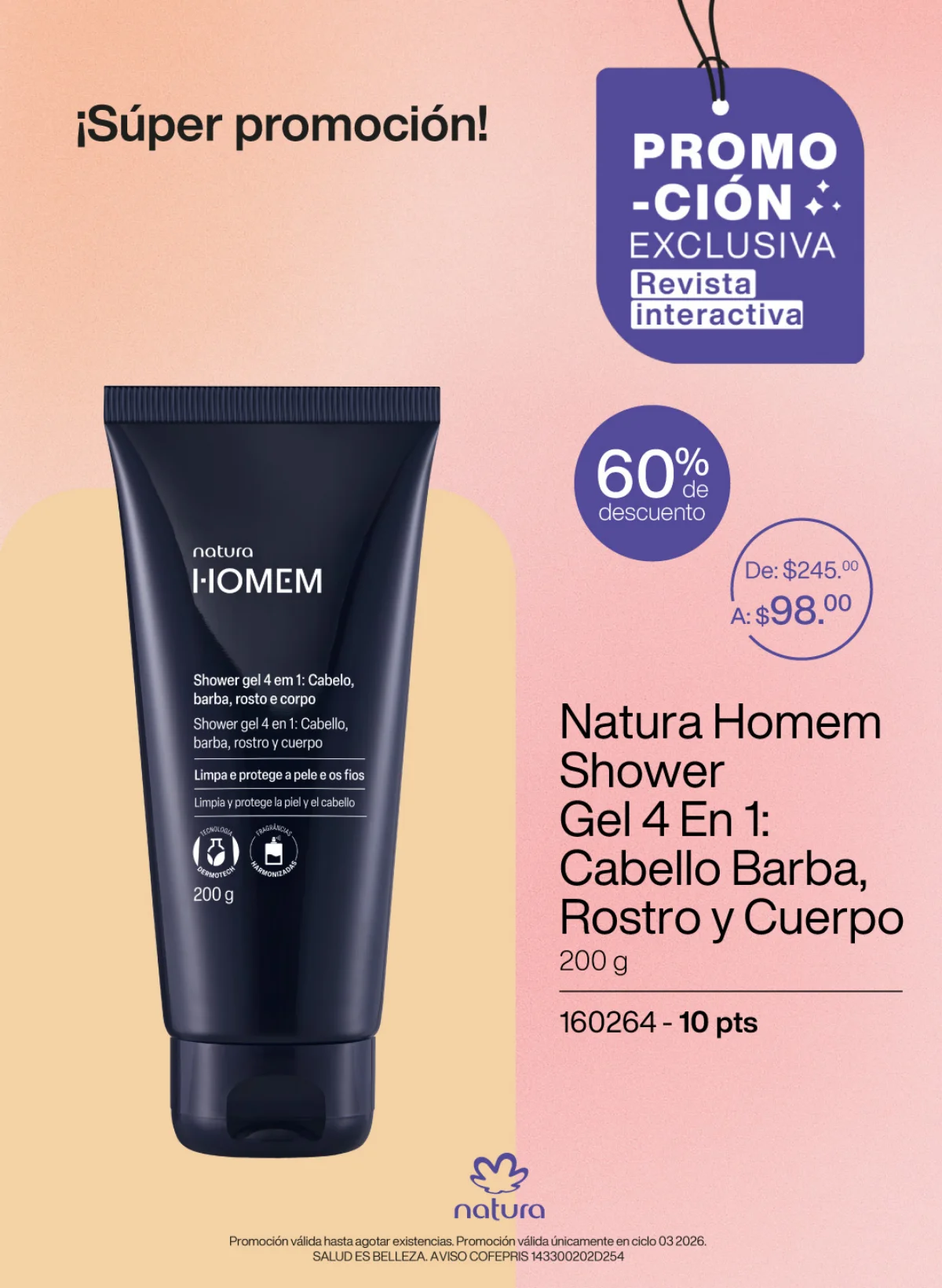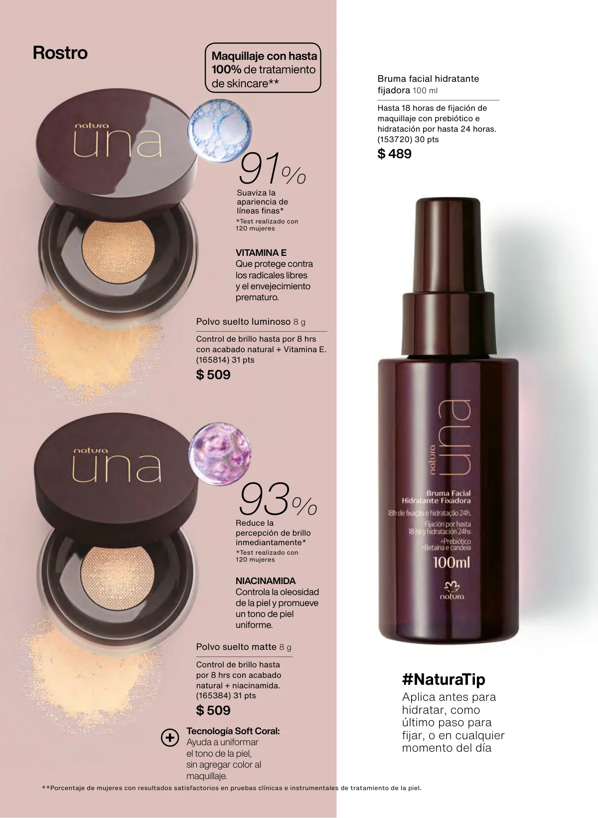 En este catálogo Natura Ciclo revista 3 2026 México trae tanto su línea hidratante para piel normal como para piel grasa. Esto sin olvidar su magnífica colección de maquillaje con su polvo compacto, delineador labial y máscaras. ¿Lo mejor? El fabuloso descuento en muchas de las piezas de esta campaña.