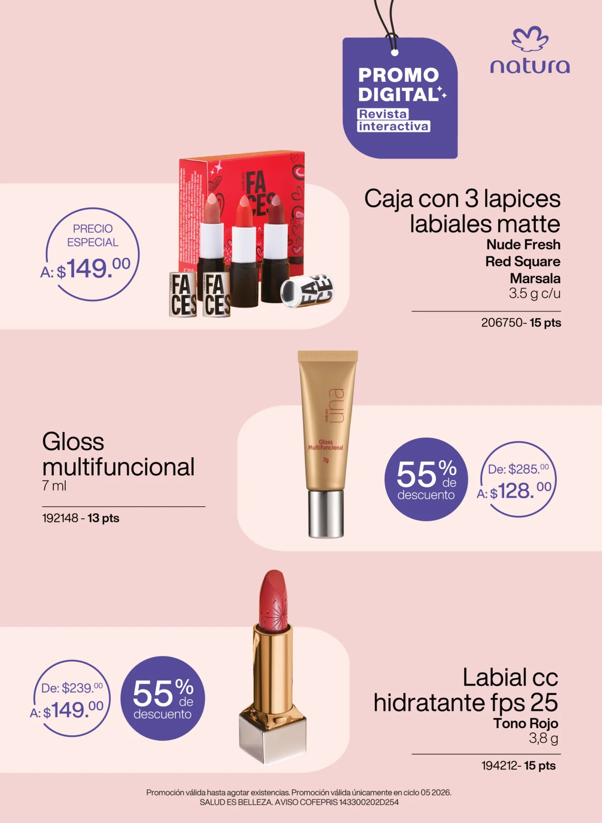 En esta campaña te recomendamos los kits de tratamiento o el de viaje. Todos están a un excelente precio de descuento y son esenciales para una adecuada salud capilar. Sin importar si es cabello rubio, con cañas, seco o maltratado, Lumina es la marca ideal de Natura que esta catálogo Natura Ciclo revista 6 2026 México está dispuesta a dar todo para tener un cabello sano y fuerte, tal y como mamá merece.