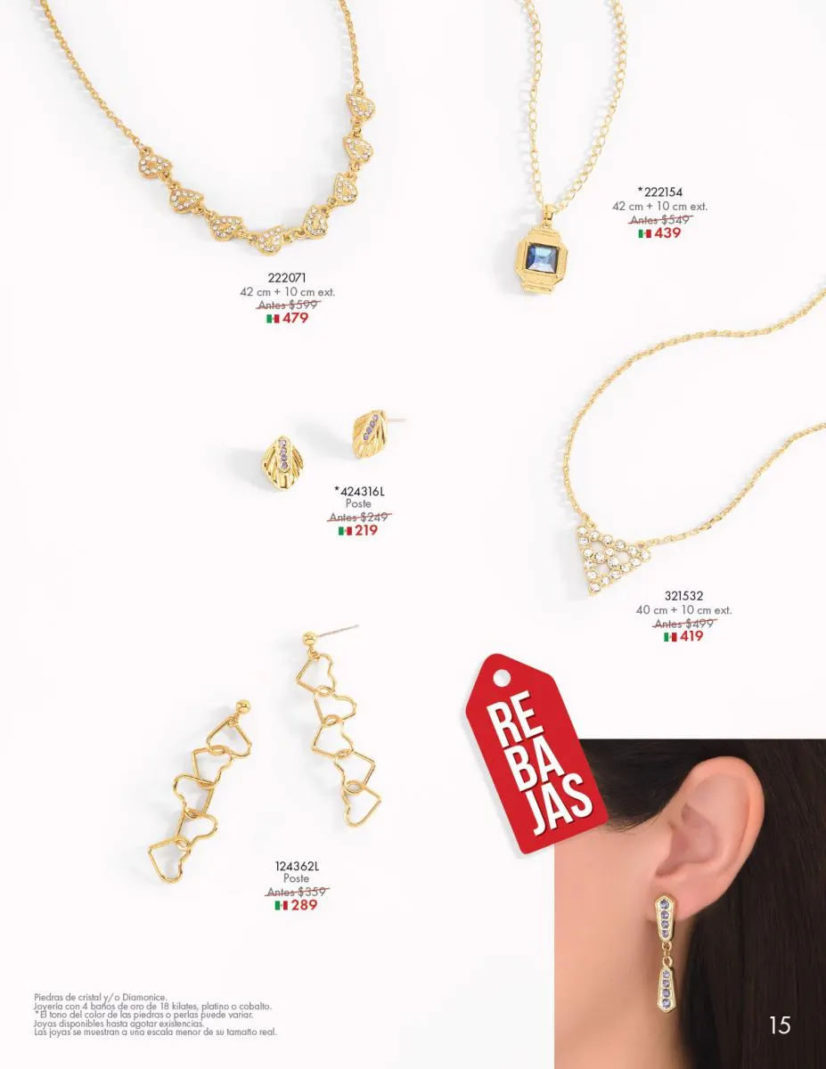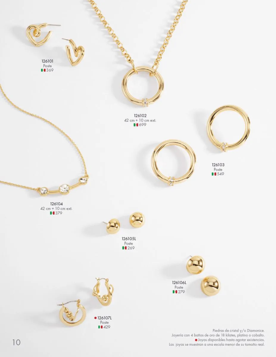 Si de aretes se trata, este catálogo trae innumerables piezas que amarás combinar con diferentes outfits. Para el día, qué tal unos aretes pequeños con poste en baño de oro y piedra cristal o quizás unos con baño de rodio y perla gris. Sin duda perfectos para lucir fabulosa durante tu jornada de trabajo o en la universidad.
