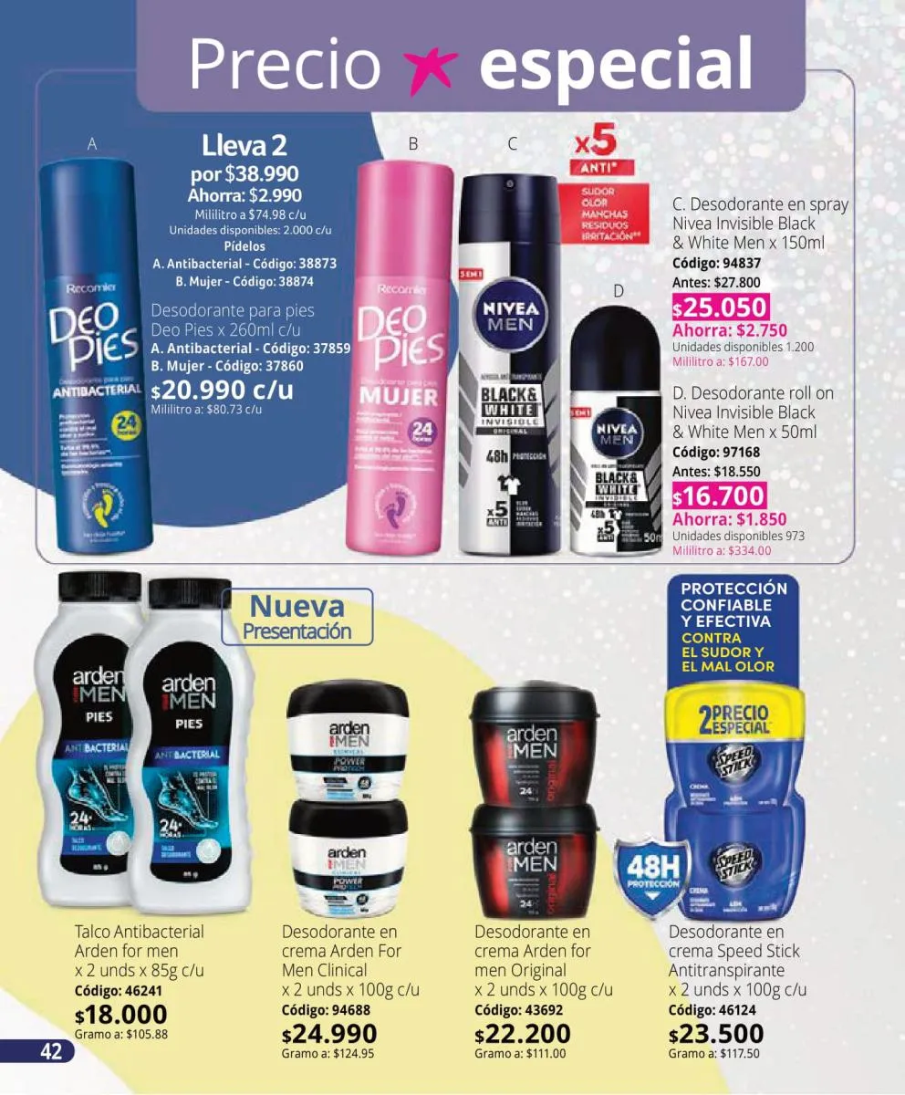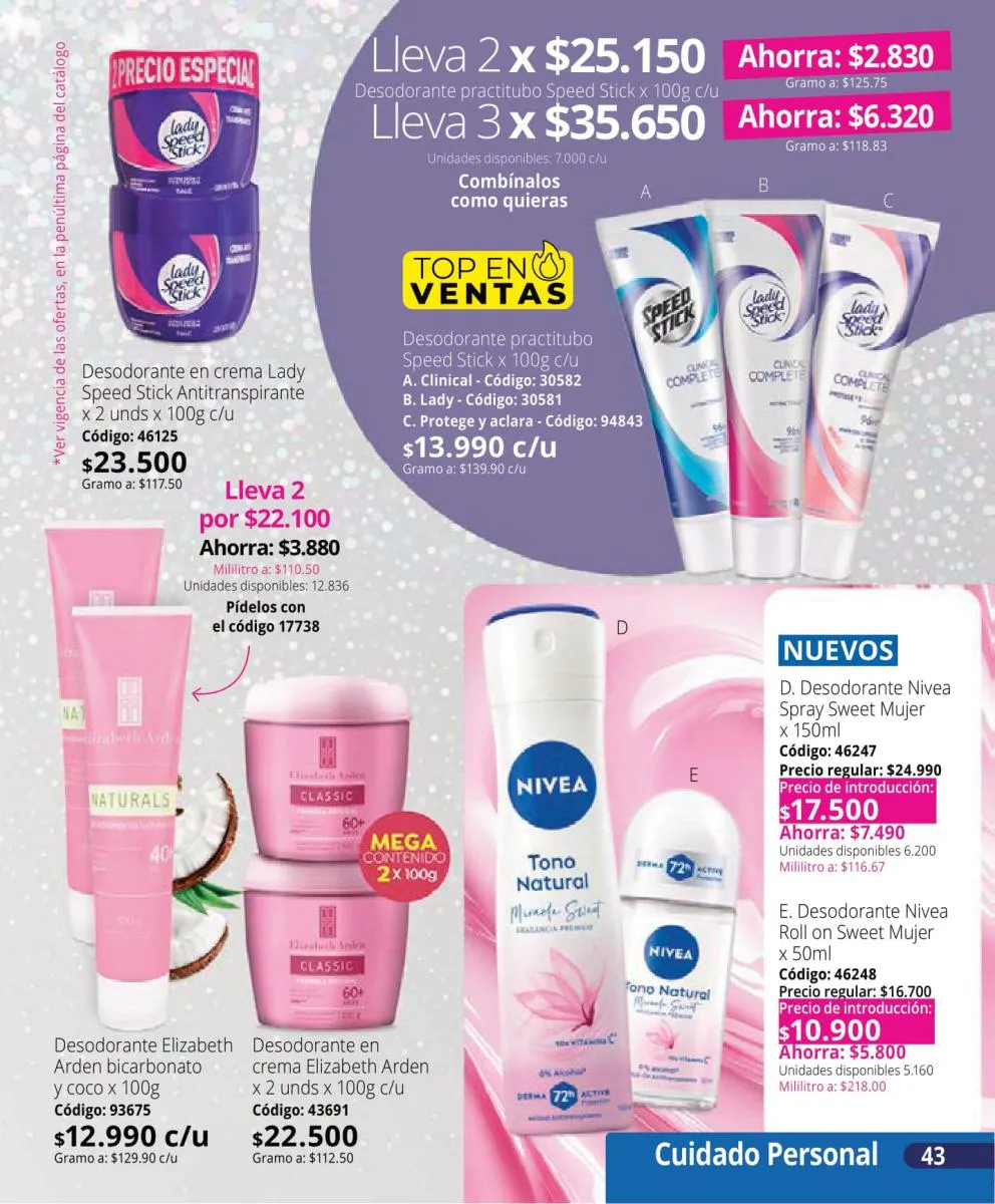 Secret, con sus fragancias femeninas y presentación en barra, se mantiene como una de las opciones preferidas por su eficacia y su suavidad en la piel. Además, su fórmula antitranspirante proporciona seguridad incluso en los días más activos.