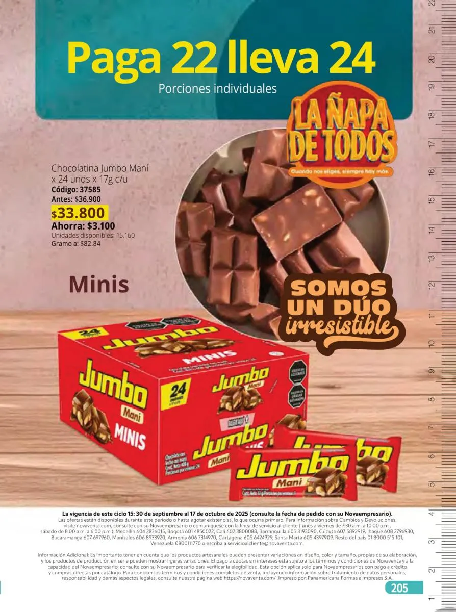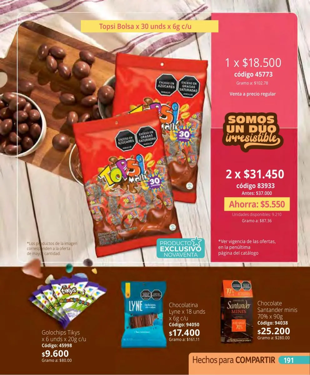Las promociones de esta campaña permiten llevar más por menos, con ofertas que aplican descuentos sobre productos seleccionados. Esto hace de Novaventa campaña una excelente alternativa para surtirse de dulces, snacks y chocolates tanto para consumo personal como para uso en eventos y celebraciones.