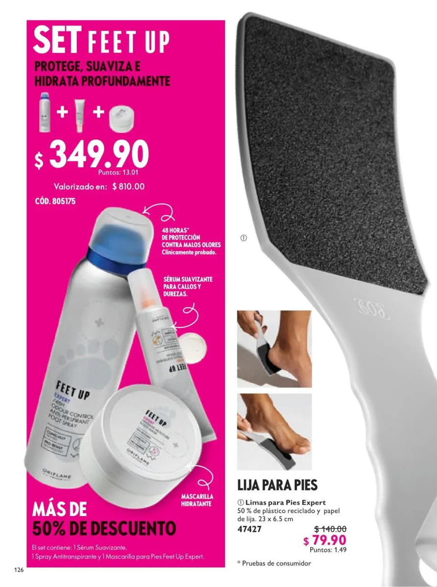La mascarilla capilar y la crema de ducha tampoco se quedan atrás con su estupendo descuento por aniversario. ¿Sabes que está a un estupendo precio por estos 55 años? La marca FeetUp Advance con un 40% de rebaja en su lima, desodorante y mascarilla de hidratación para los pies.