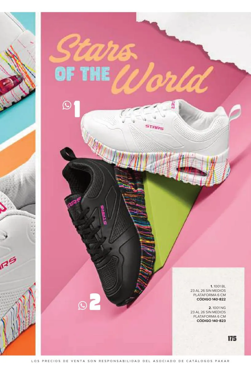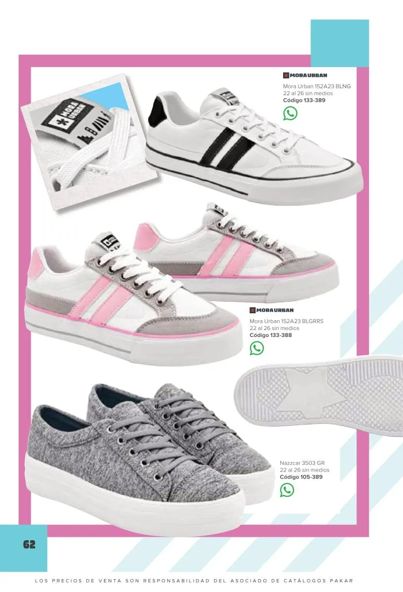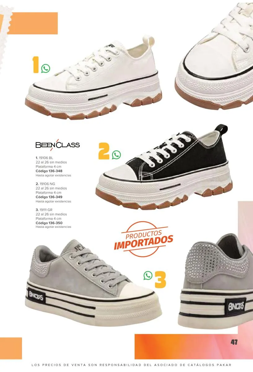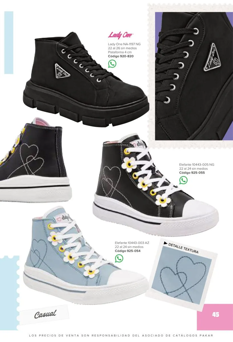Con esta edición Pakar pretende adaptarse a las nuevas tendencias, donde predominan los estilos urbanos, vanguardistas y originales. Calzados de mujer en diferentes modelos, zapatillas urbanas, flats, alpargatas, zapatillas deportivas, ballerinas, tenis con plataforma, calzado de charol, sneakers casuales, zapato bostoniano y muchos modelos más. También hemos incluido una gran variedad en accesorios y diferentes prendas que seguramente complementarán tu estilo. Encuentra bolsos, carteras, medias y otras opciones que seguro te van a encantar.