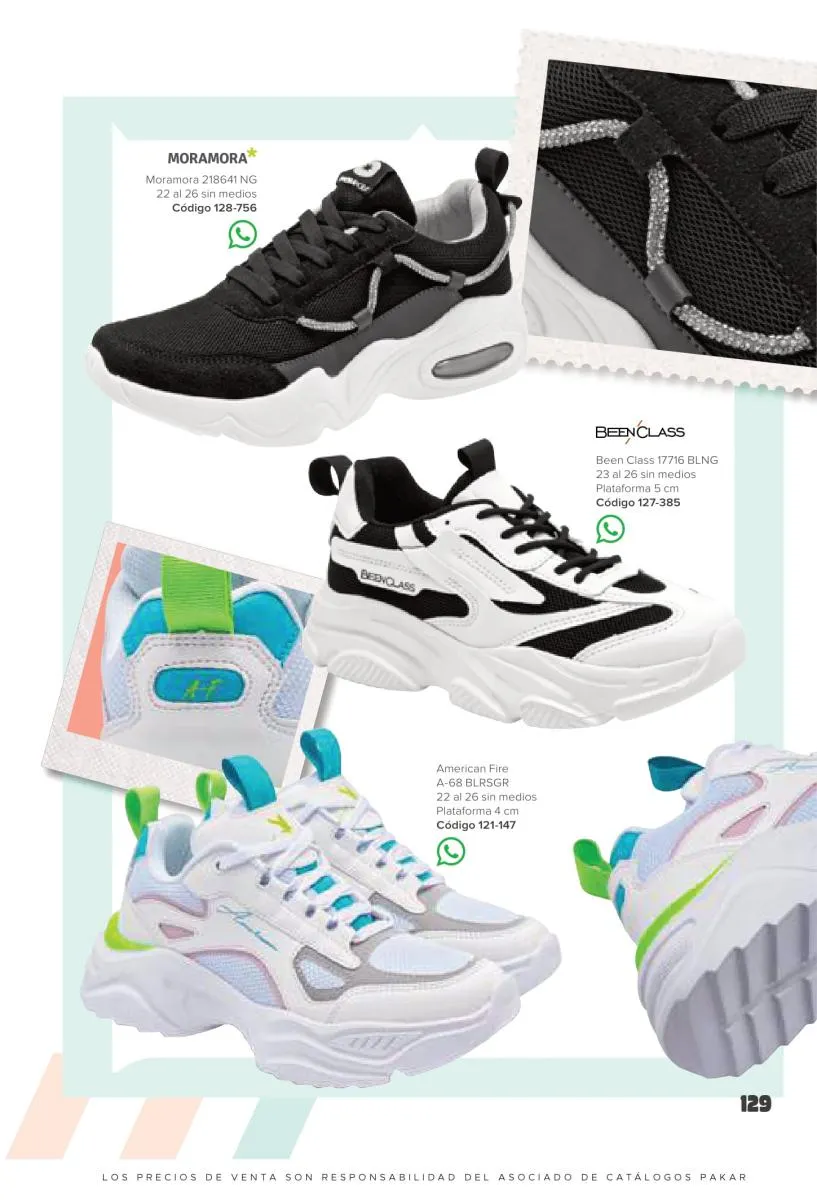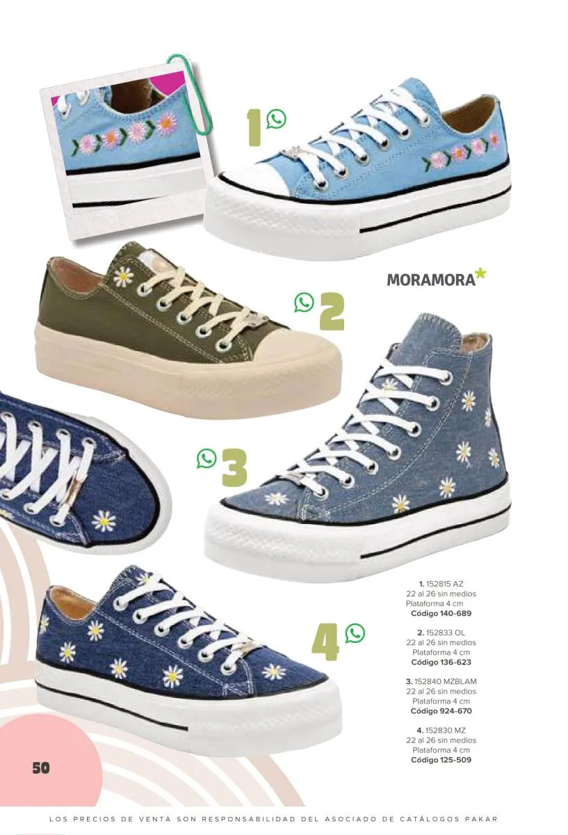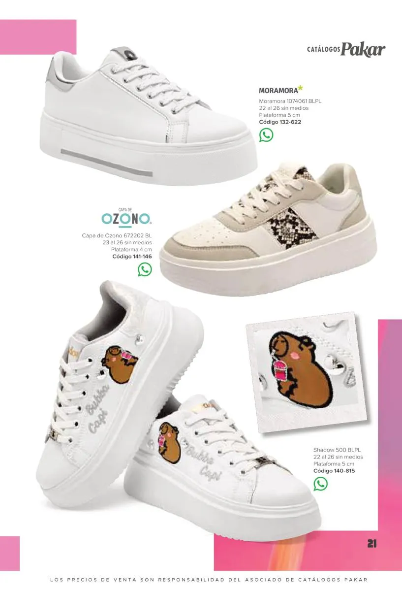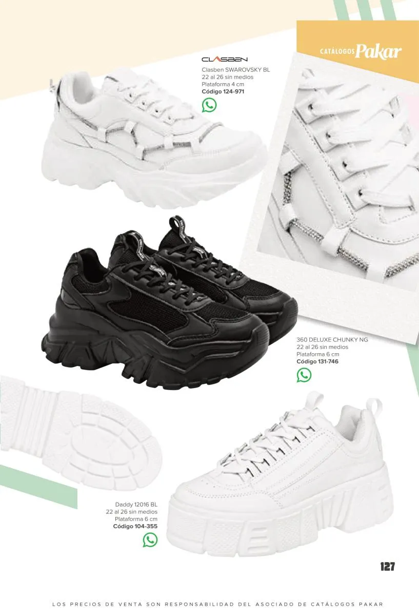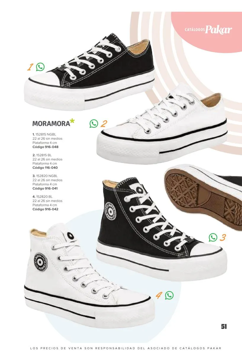 Con esta edición Pakar pretende adaptarse a las nuevas tendencias, donde predominan los estilos urbanos, vanguardistas y originales. Calzados de mujer en diferentes modelos, zapatillas urbanas, flats, alpargatas, zapatillas deportivas, ballerinas, tenis con plataforma, calzado de charol, sneakers casuales, zapato bostoniano y muchos modelos más. También hemos incluido una gran variedad en accesorios y diferentes prendas que seguramente complementarán tu estilo. Encuentra bolsos, carteras, medias y otras opciones que seguro te van a encantar.