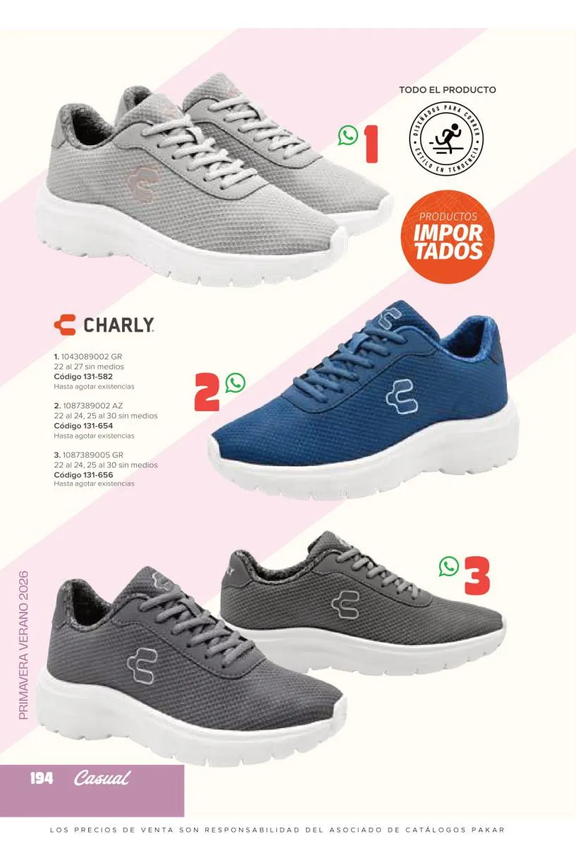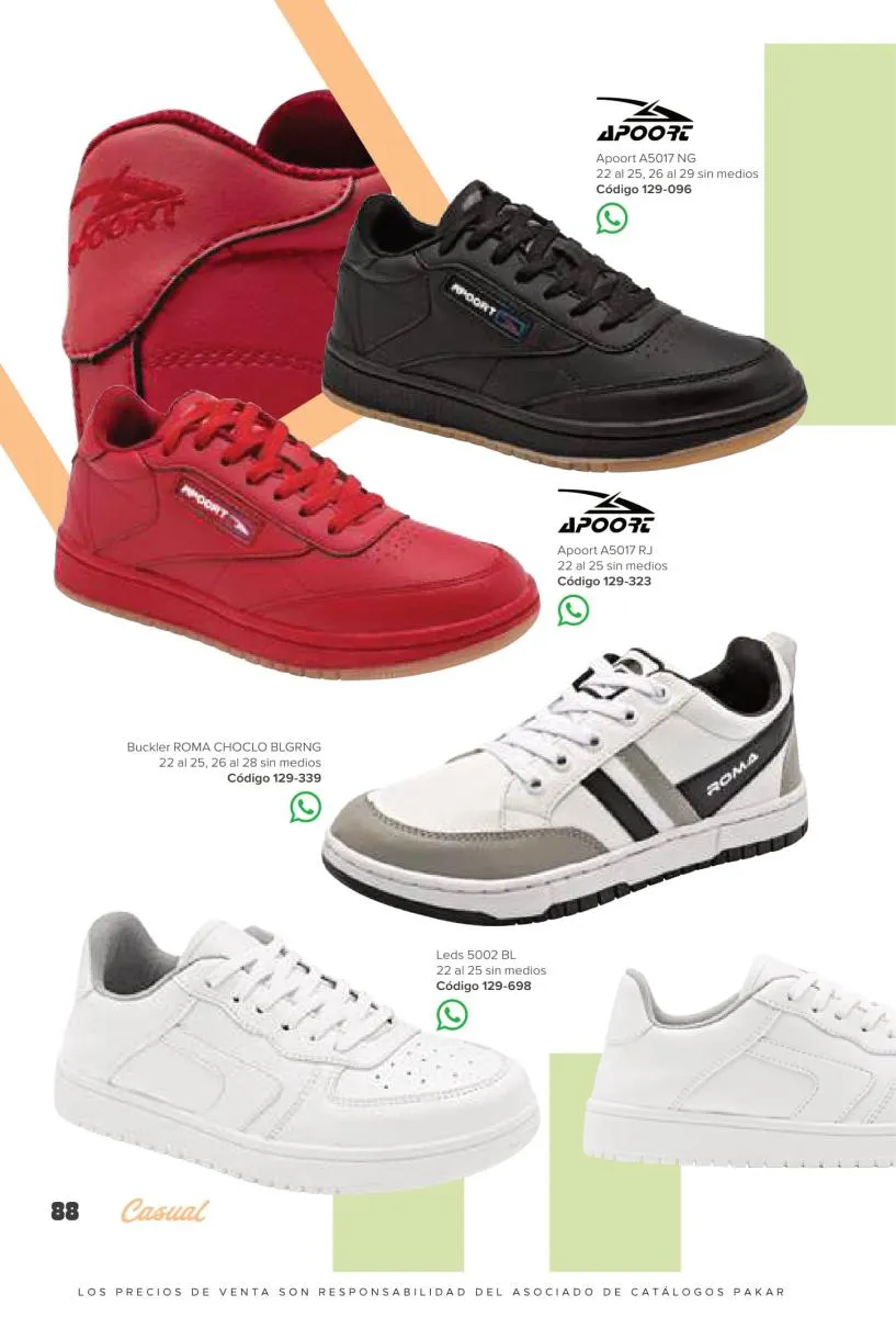 Un catálogo Pakar Calzado Casual primavera verano 2026 México muy completo donde encuentras además de una amplia colección en calzado casual, las mejores ofertas disponibles. Encuentra calzados en variedad de colores, con diseños muy sobrios y distinguidos que seguro encajan con una personalidad formal y elegante, pero con un toque de frescura. También puedes optar por otras opciones más relajadas y coloridas, con diferentes texturas y llenas de colores, diseños variados, cómodos y duraderos para que recibas la mejor calidad con los mejores precios del mercado.