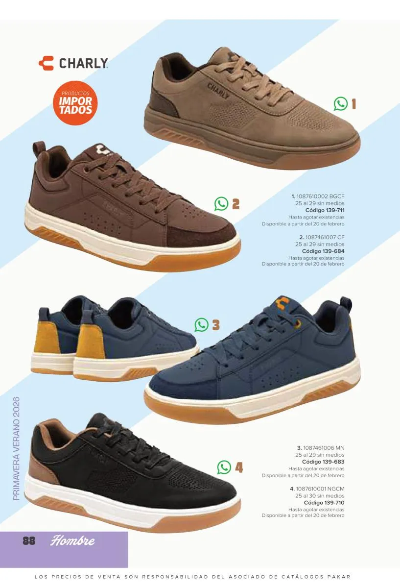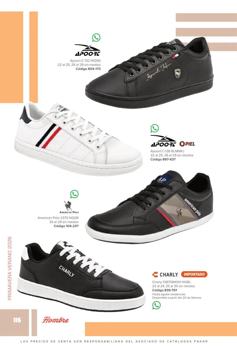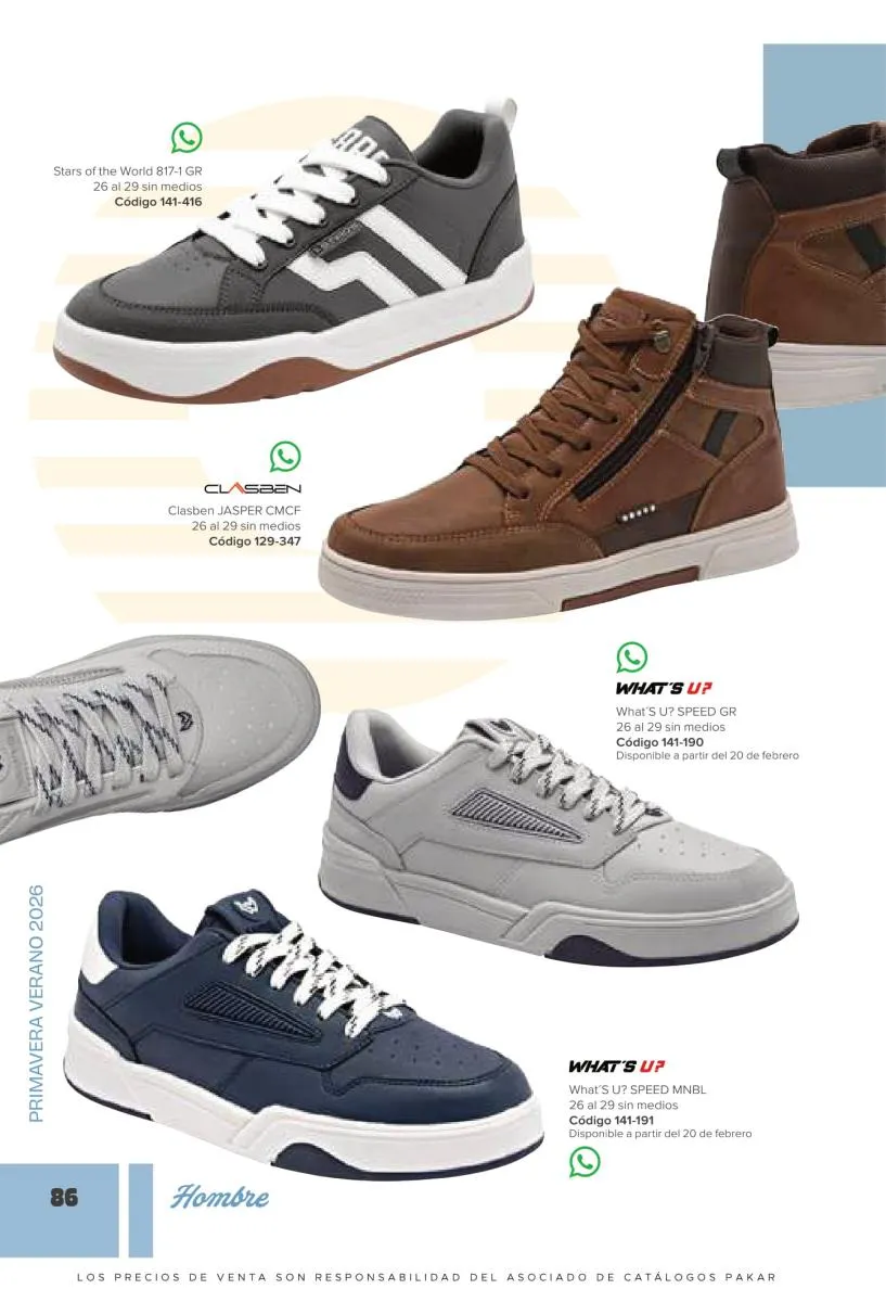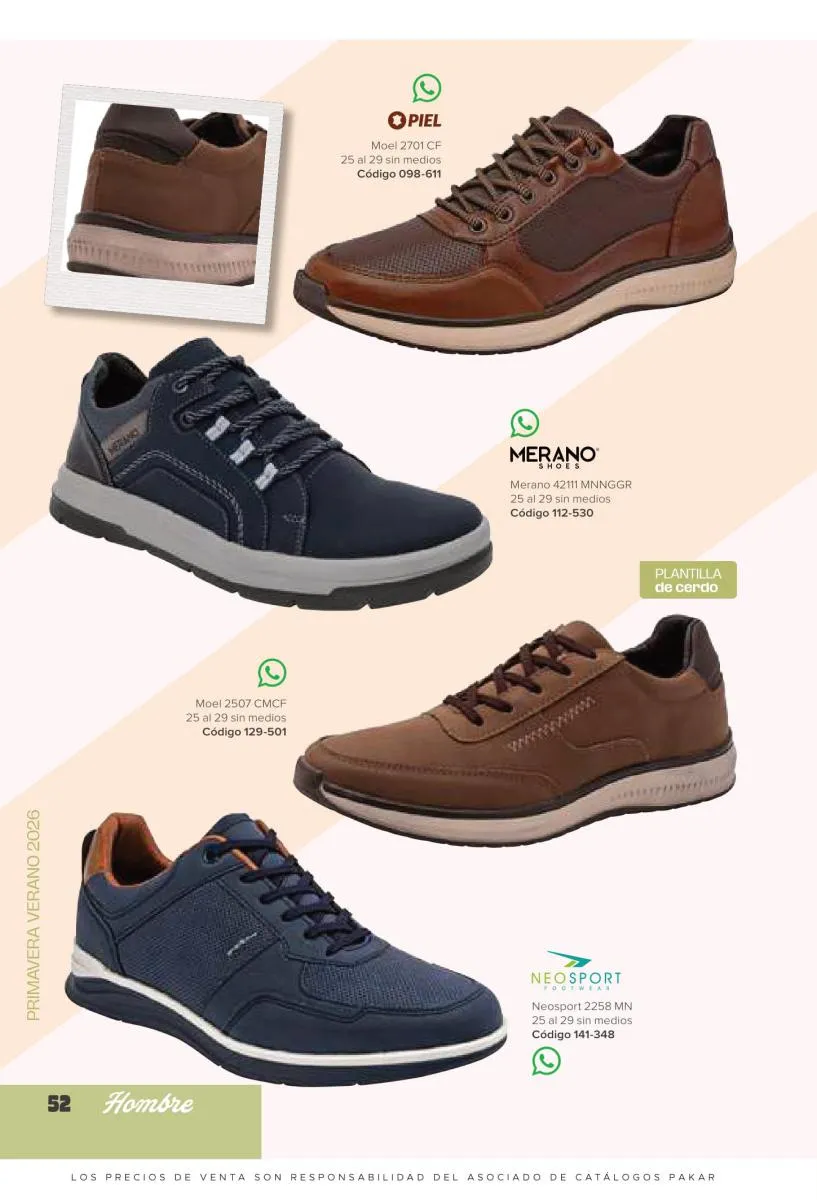 Los caballeros tienen gustos muy particulares y variados, a pesar de ser mucho más fáciles de complacer que las mujeres, no dejan de expresar estilos únicos y modernos. En esta catálogo Pakar Calzado Hombre primavera verano 2026 México queremos ofrecerles una extensa y renovada selección de calzado ideal para todo tipo de ocasión. Variedad de marcas, diseños y tallas para complacer las más altas exigencias. Explora y encuentra lo que necesitas con nuestra colección.