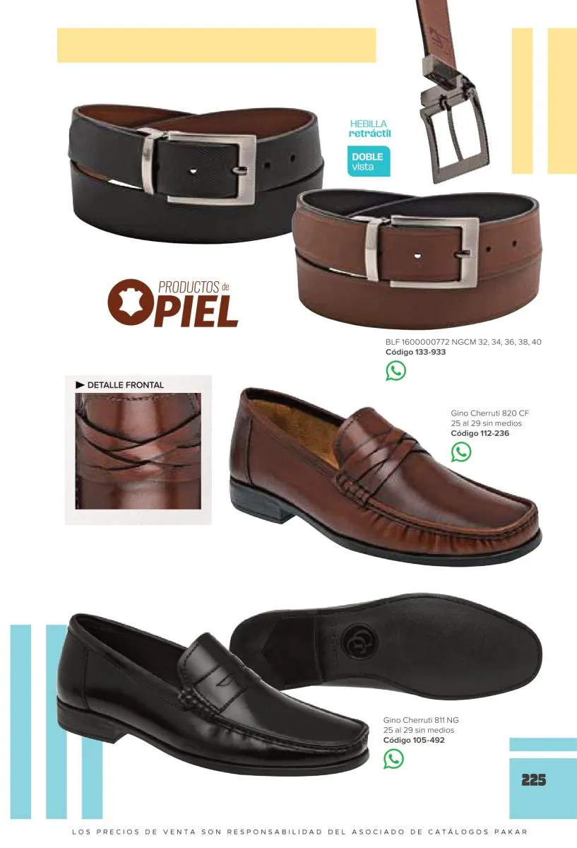 En este catalogo además de presentar una extensa variedad en zapatos casuales, con un estilo muy exclusivo y elegante, también hemos incluido una hermosa selección en billeteras y cinturones, hechos en materiales de alta calidad, de gran resistencia y en diseños muy sofisticados. Igualmente, encuentra una gran variedad en bolsas, portafolios y diferentes accesorios que seguro te encantará.
