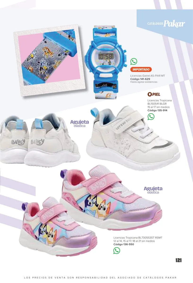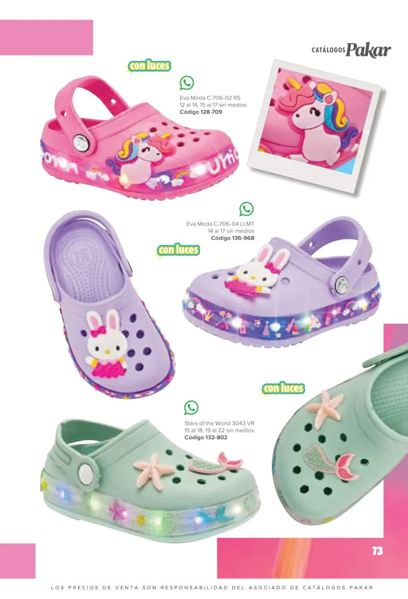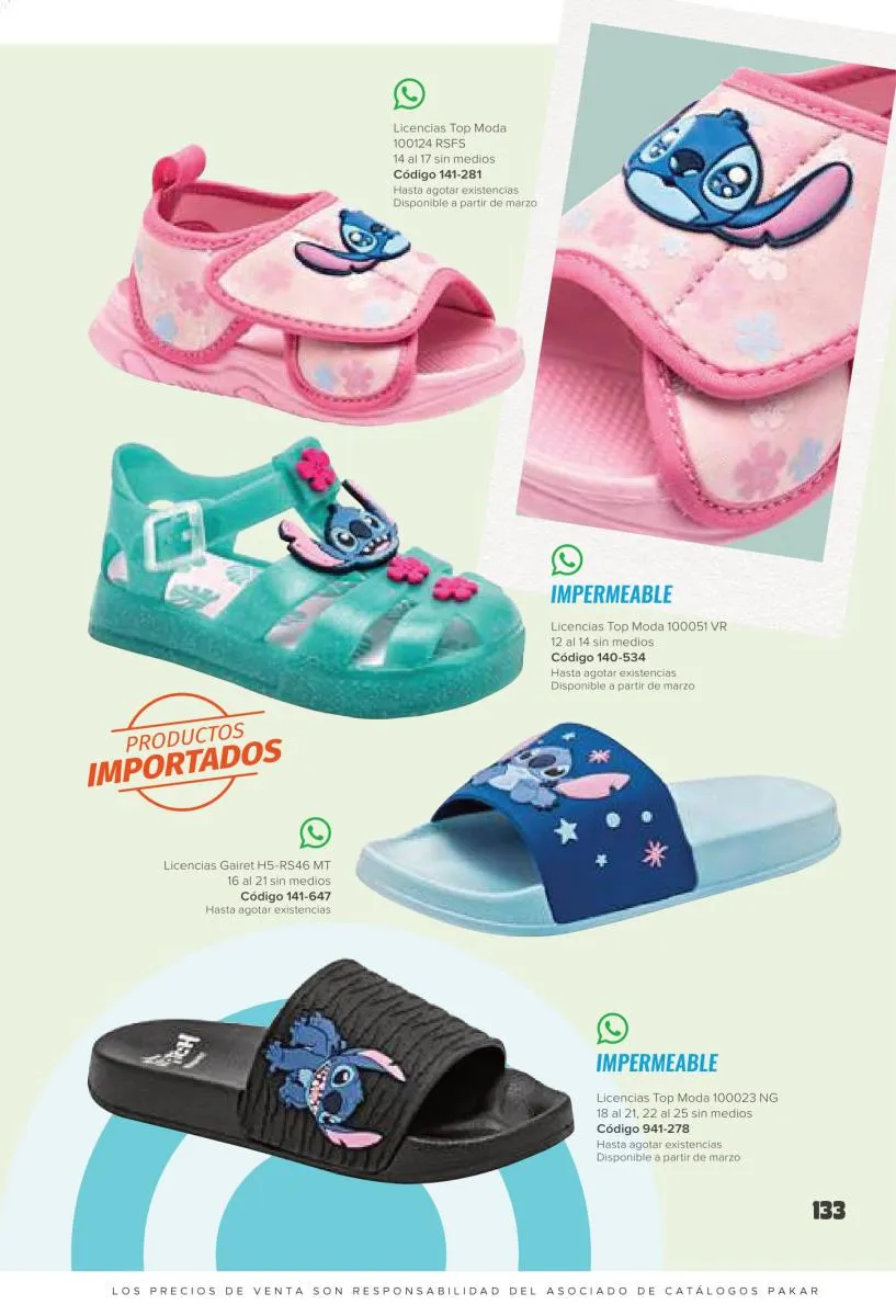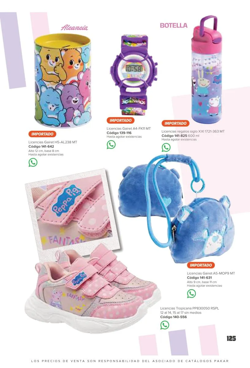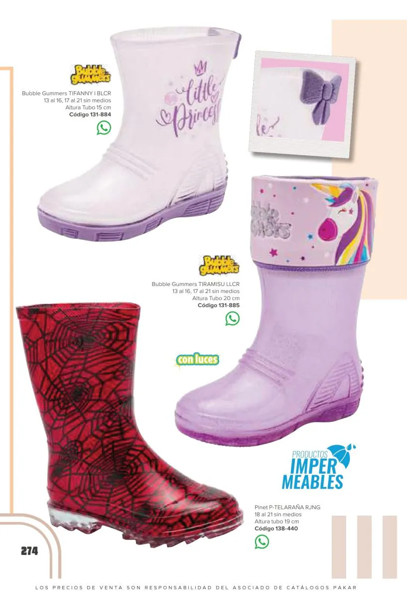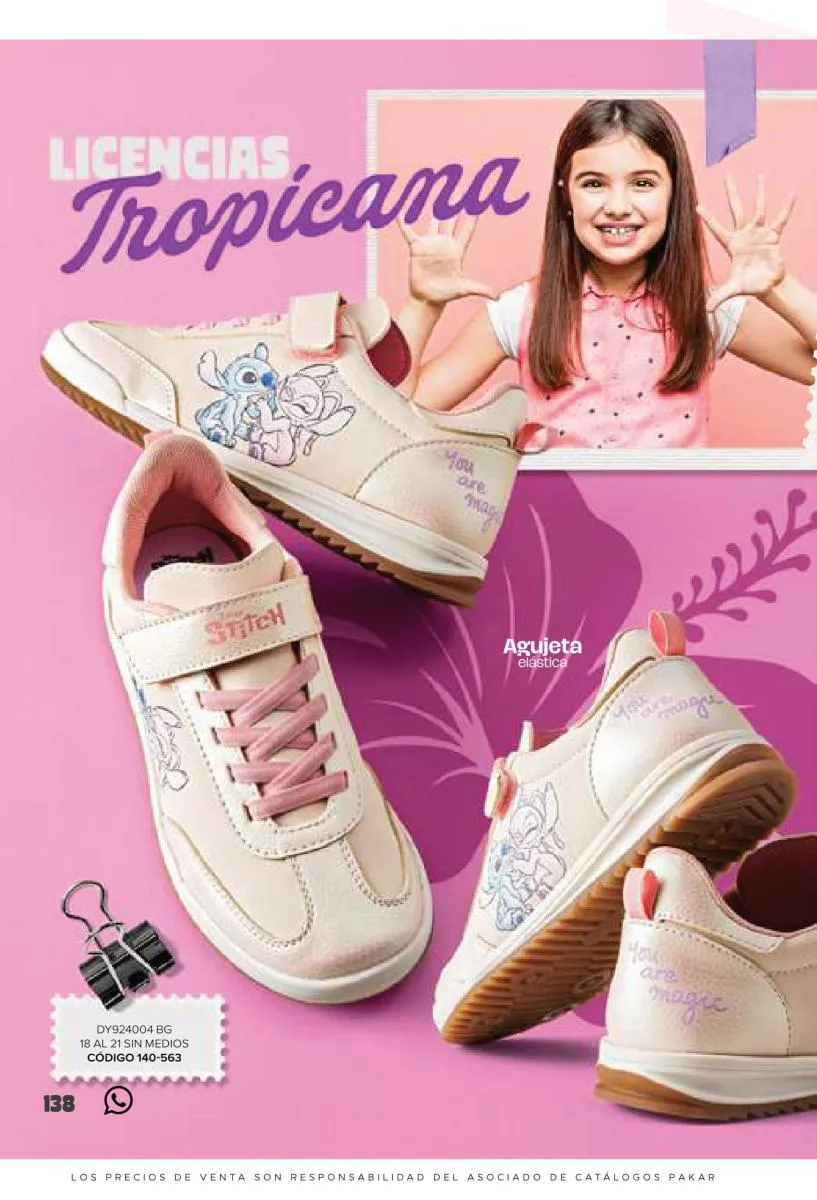 Este catalogo también incluye calzado con los personajes preferidos de las niñas, comenzando con hermosos diseños de Paw Patrol, también en esta colección se encuentran piezas de Frozen, Princesas de Disney, Hello Kitty, Minnie Mouse, Lilo y Stitch, Unicorn, y muchos más. Además de destacar con estos calzados, accesorios infantiles para que tu niña luzca radiante, mochilas, relojes, cojines, lámparas, lapiceras, lentes de sol, impermeables, tapabocas, gorras, entre otros.