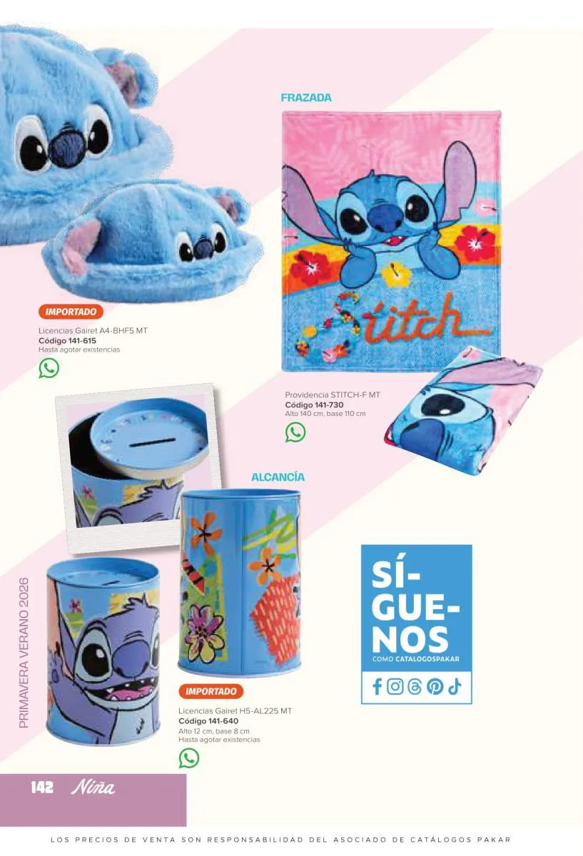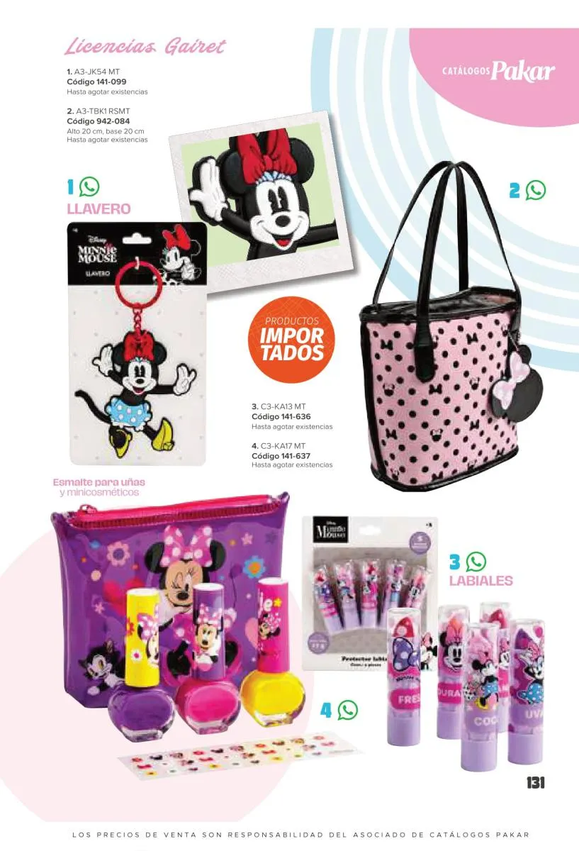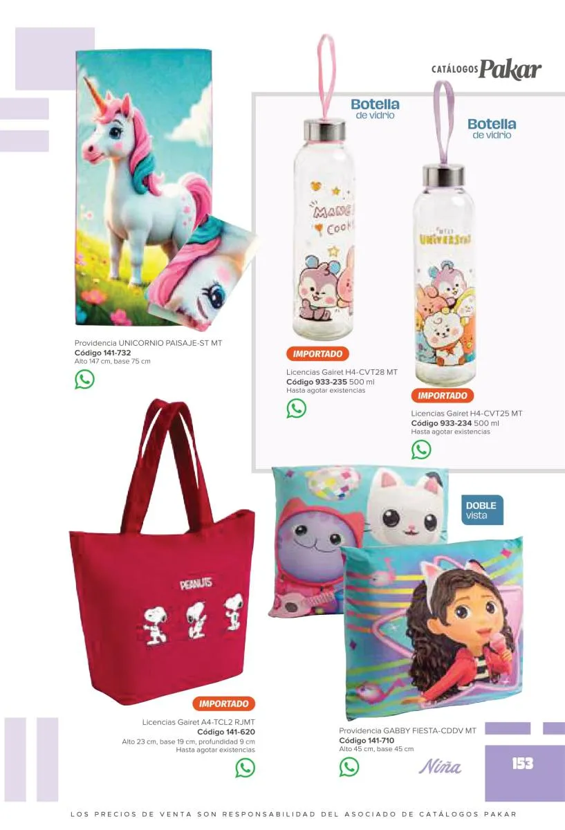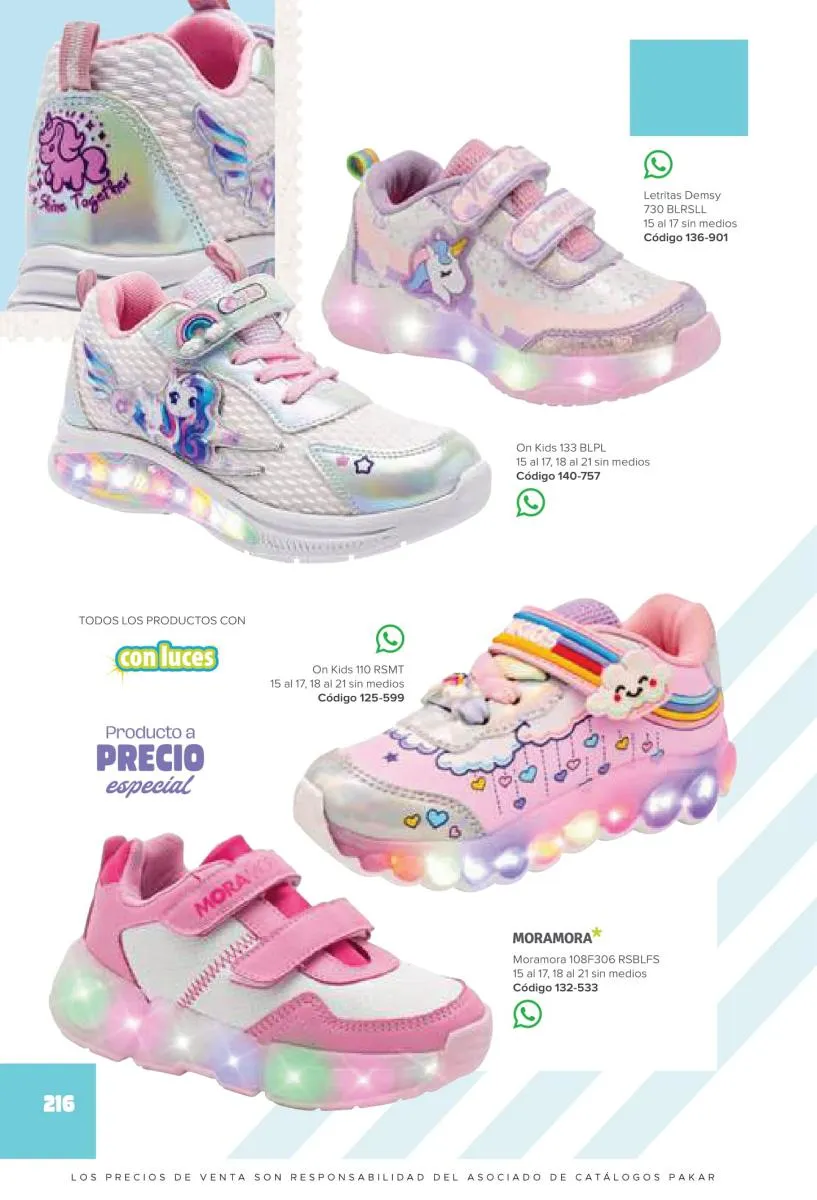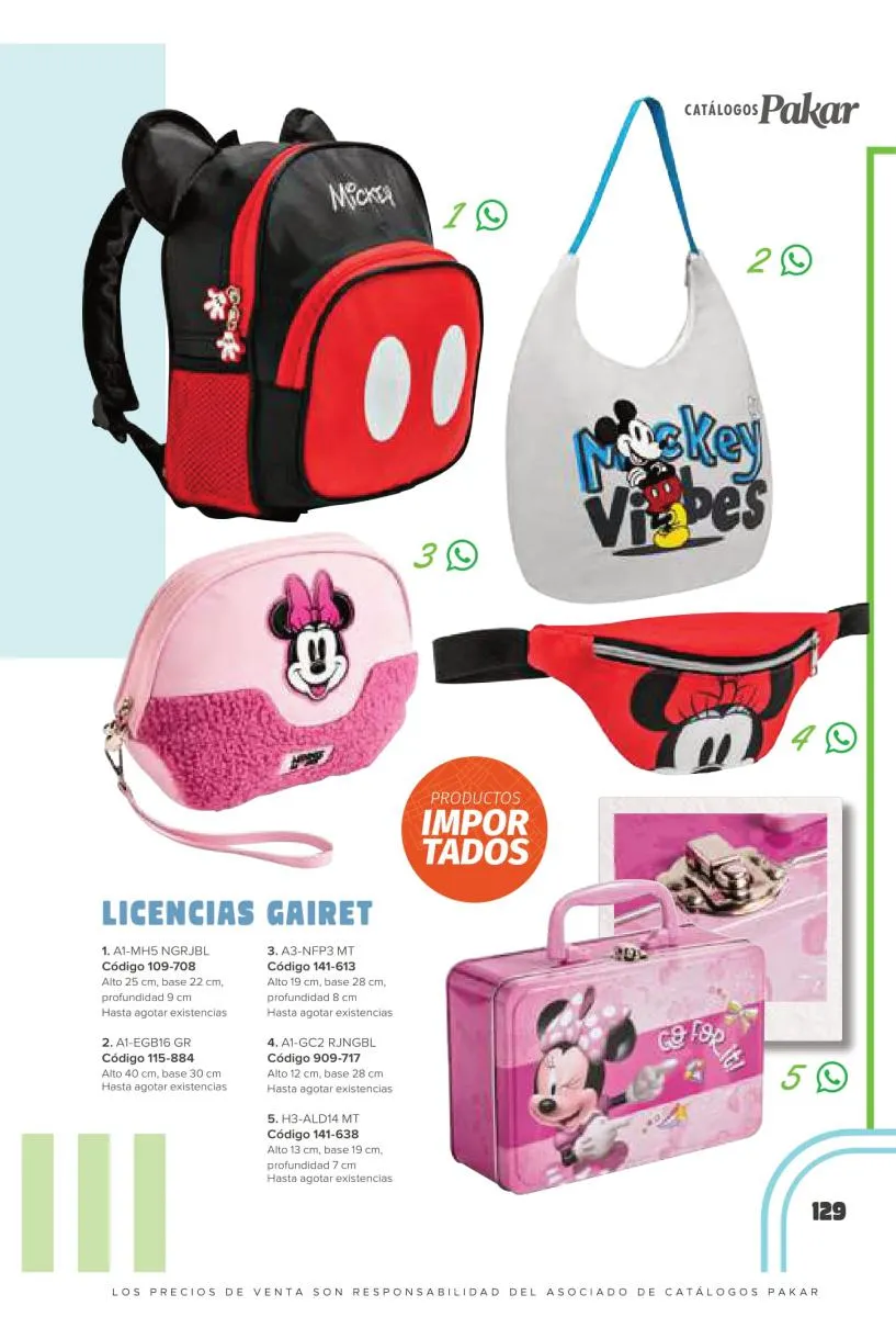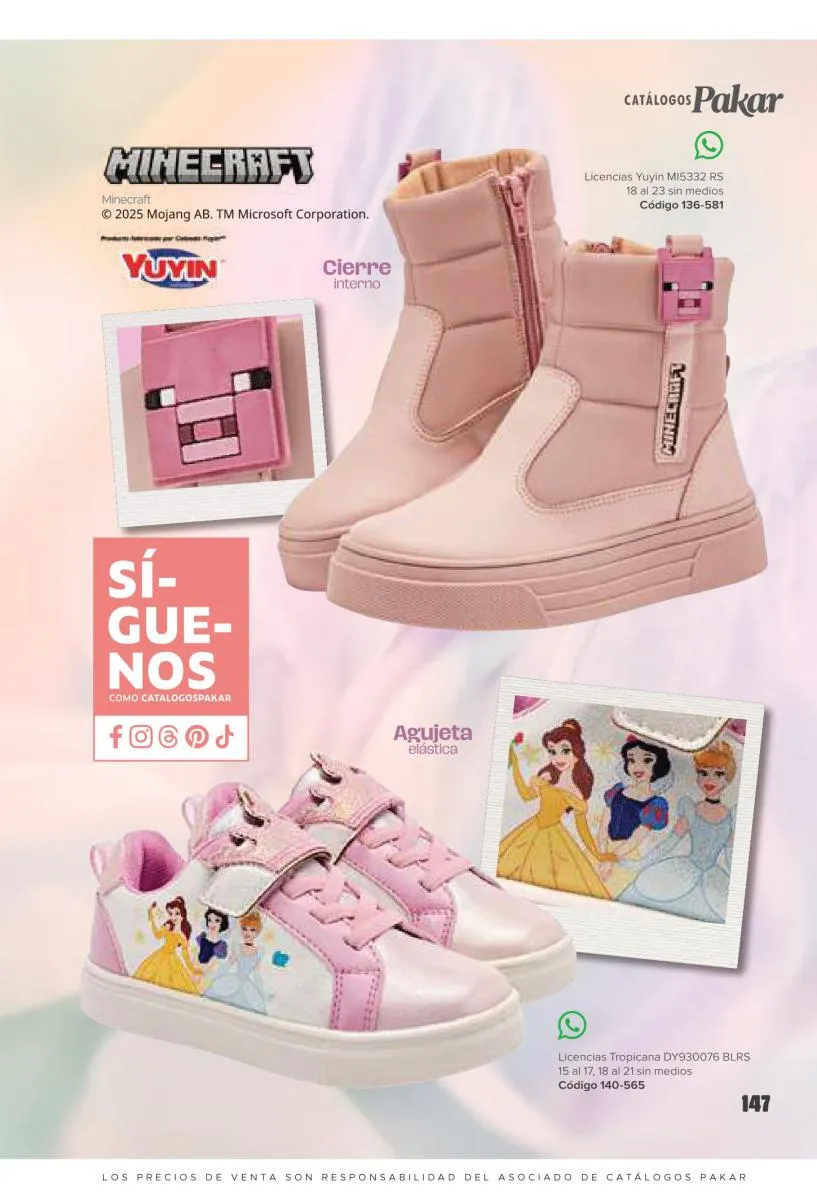 Este catalogo también incluye calzado con los personajes preferidos de las niñas, comenzando con hermosos diseños de Paw Patrol, también en esta colección se encuentran piezas de Frozen, Princesas de Disney, Hello Kitty, Minnie Mouse, Lilo y Stitch, Unicorn, y muchos más. Además de destacar con estos calzados, accesorios infantiles para que tu niña luzca radiante, mochilas, relojes, cojines, lámparas, lapiceras, lentes de sol, impermeables, tapabocas, gorras, entre otros.