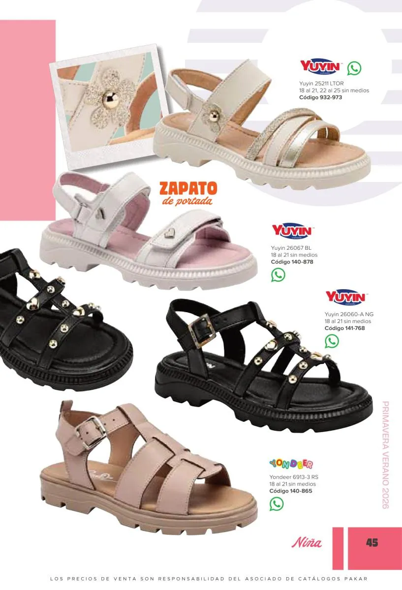 Este catálogo Pakar Calzado Niña primavera verano 2026 México llena de muchas sorpresas y hermosos detalles para las coquetas de la casa. Consiente a tu niña y disfruta de variedad en diseños para que use el calzado adecuado a su edad y a cada ocasión. Comenzando con modelos de sandalias muy coloridos, con bellos diseños que los hacen mucho más atractivos, flores, lazos, estampados, combinaciones de colores, son muchas las opciones en sandalias que tienes a tu disposición.