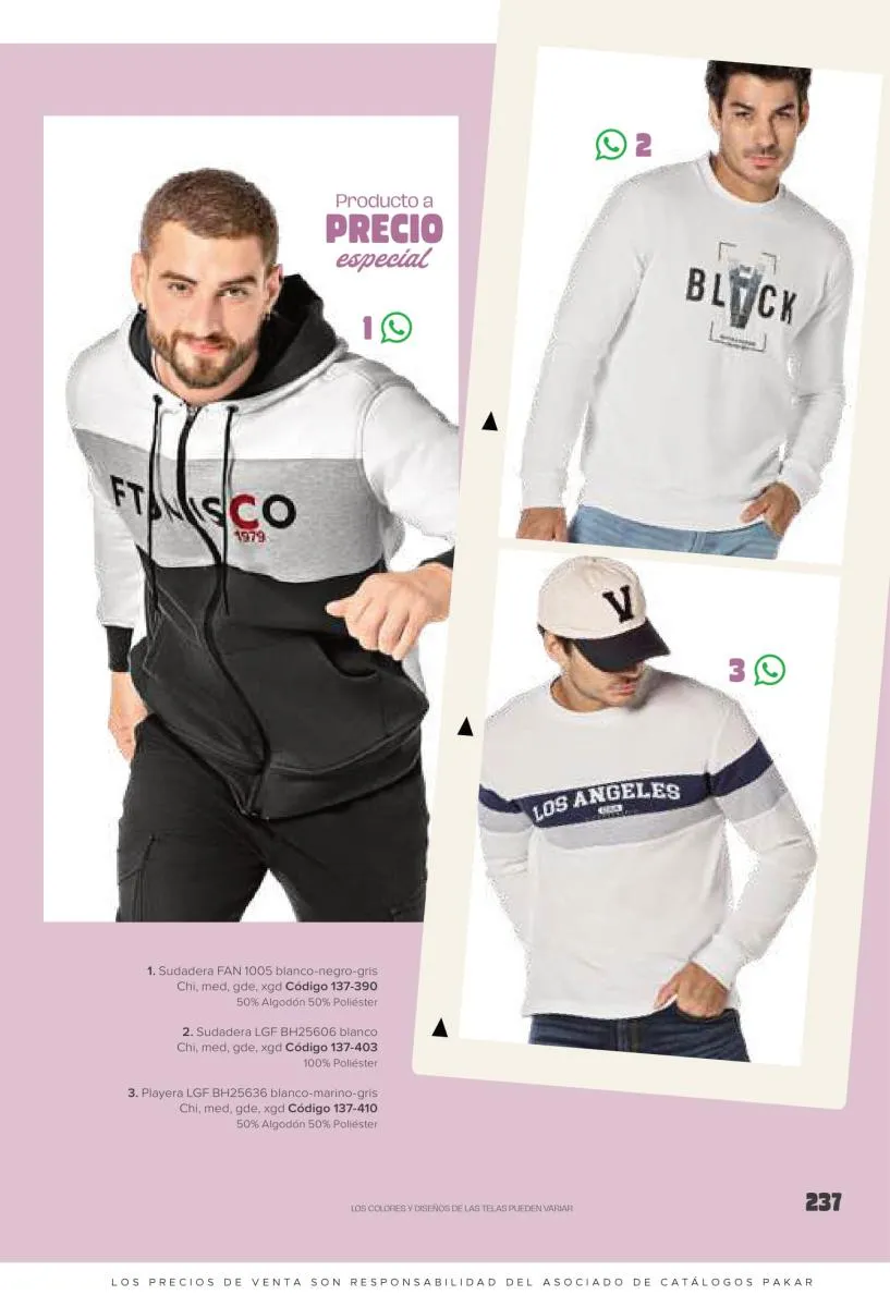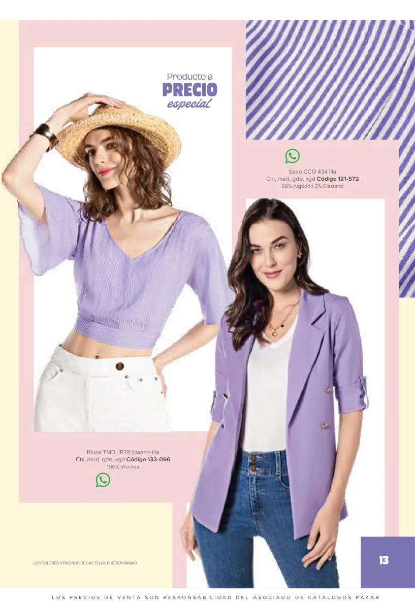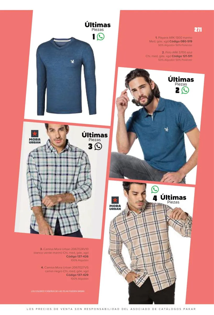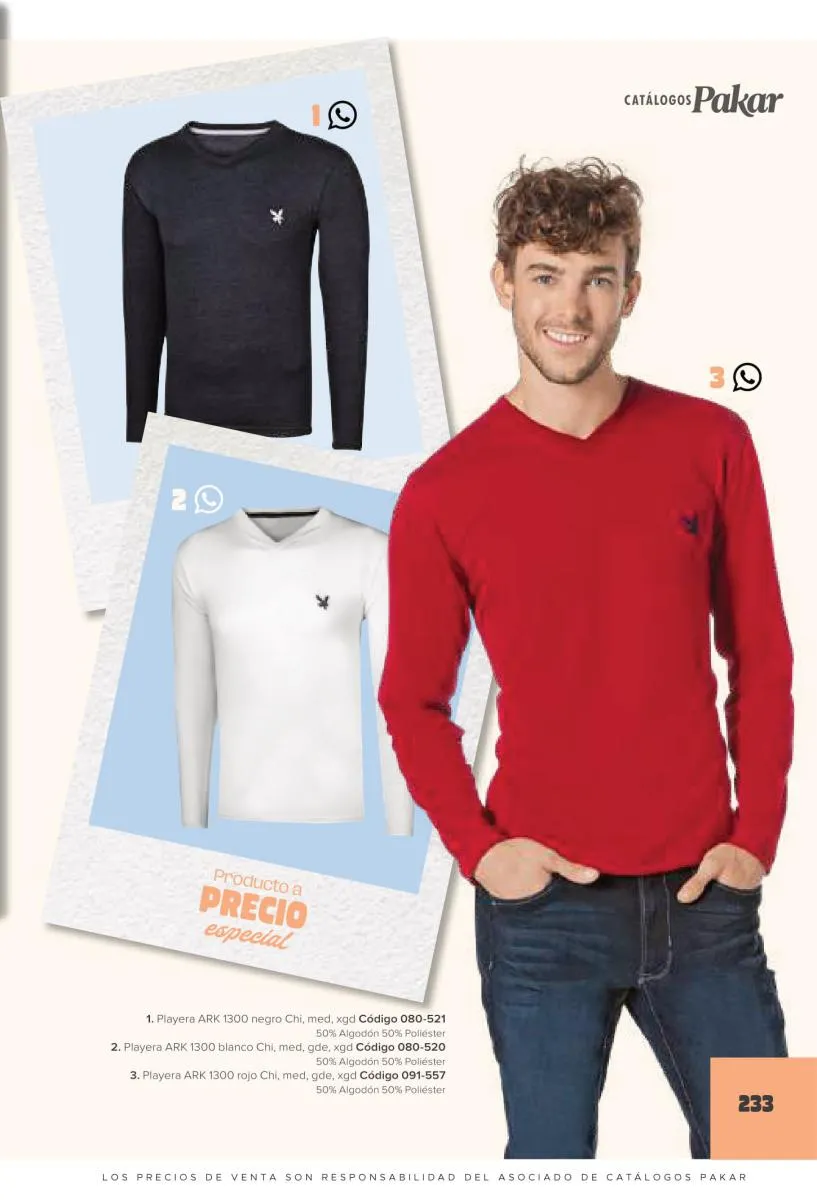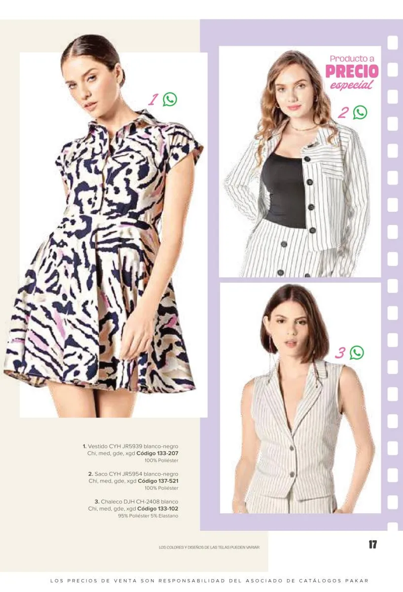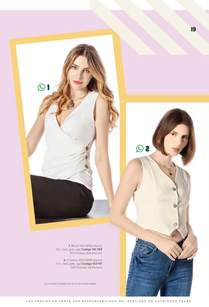 En esta oportunidad Pakar ofrece una colección llena de vida, color y estilo, esta edición también destaca por su extensa selección en jeans y pantalones, hermosos diseños en variedad de colores y modelos. Además de todas las sorpresas que hemos incluido en esta campaña, disfruta de las mejores ofertas, para que no te quedes sin llevarte la ropa y los accesorios que deseas.