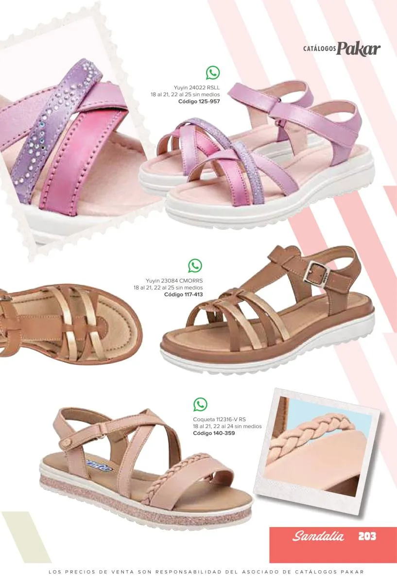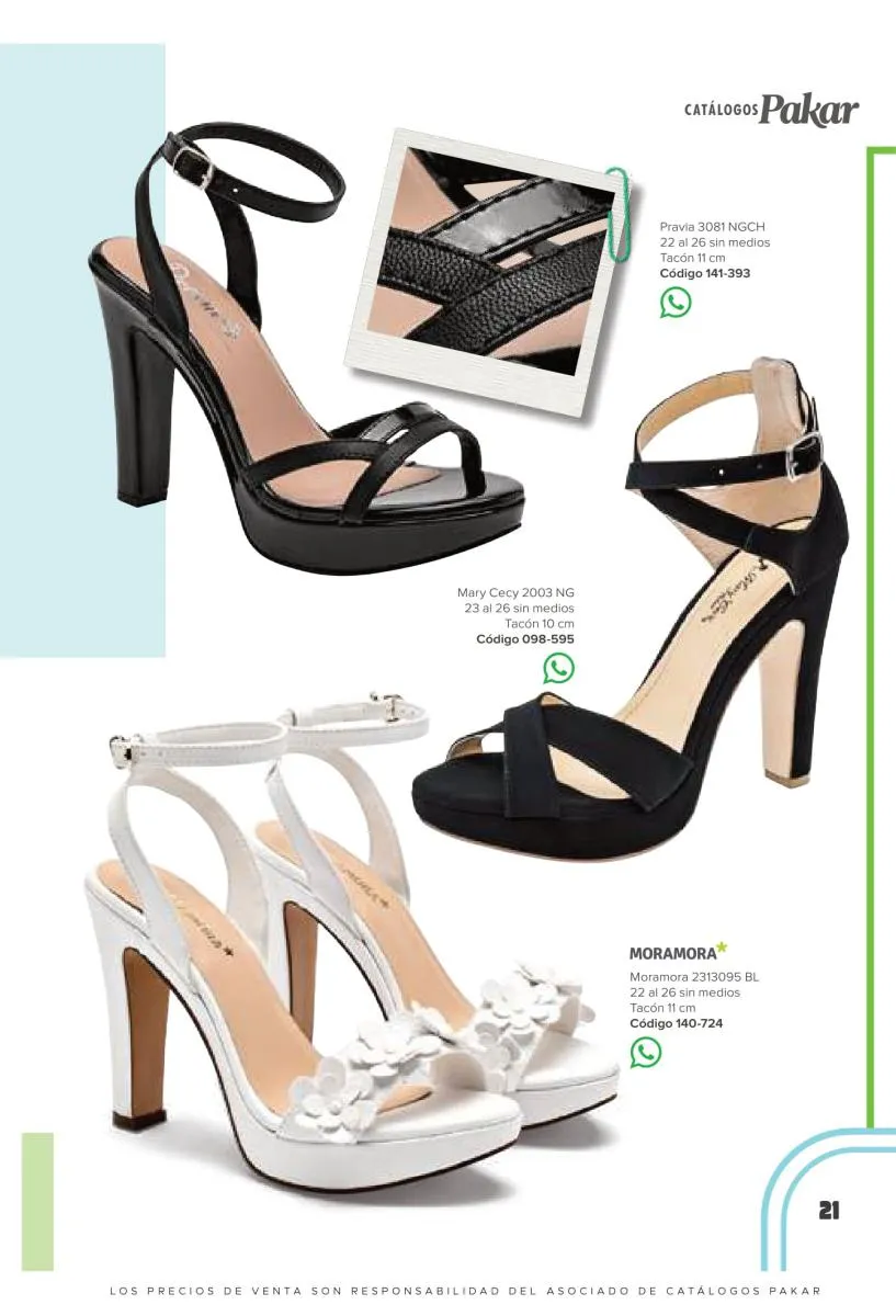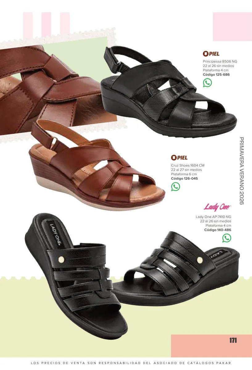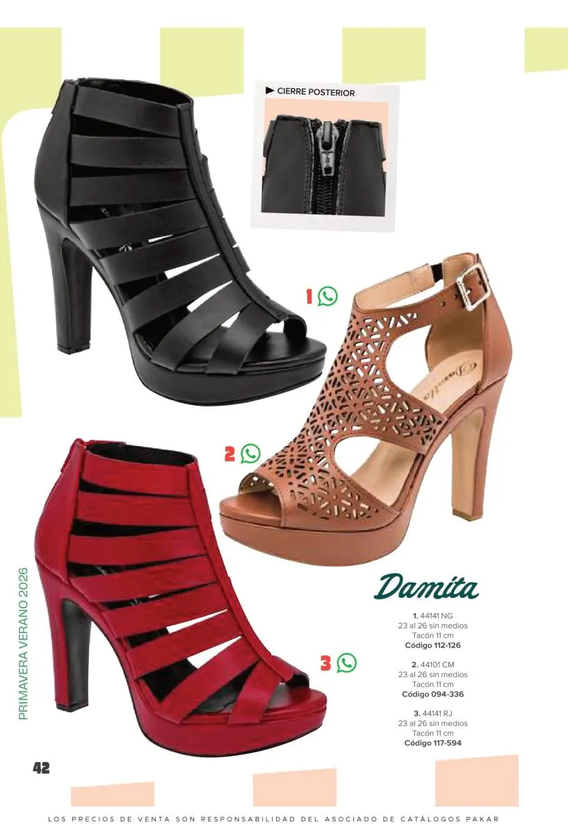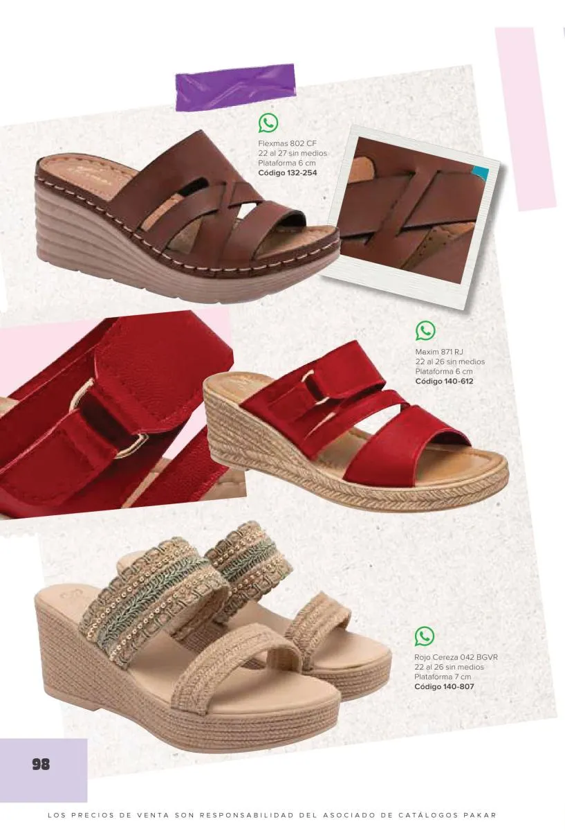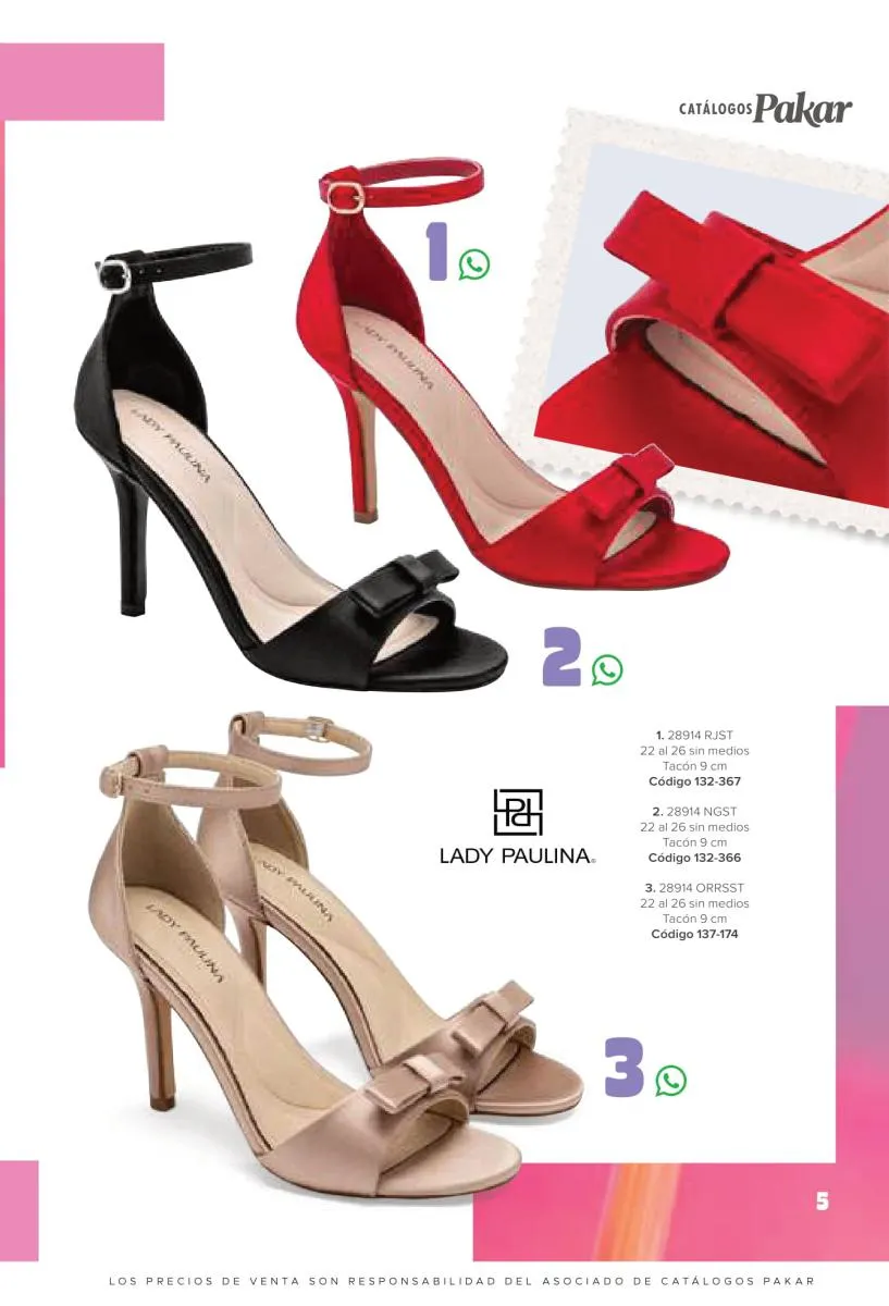 Otras opciones que tiene esta catálogo Pakar Sandalia primavera verano 2026 México, son las sandalias de corte alto, son cerradas en casi toda su extensión, de tacón alto y con un aspecto sumamente refinado. Están hechas en diferentes materiales para crear estilos muy marcados, seguro puedes combinarlas con unos hermosos jeans o alguna linda minifalda. Para una personalidad un poco más divertida, tenemos modelos más coloridos y con detalles en su superficie. Diseños coloridos, estampados, de flores, entre otros, todos creados con la intención de resaltar tu estilo y tu personalidad.