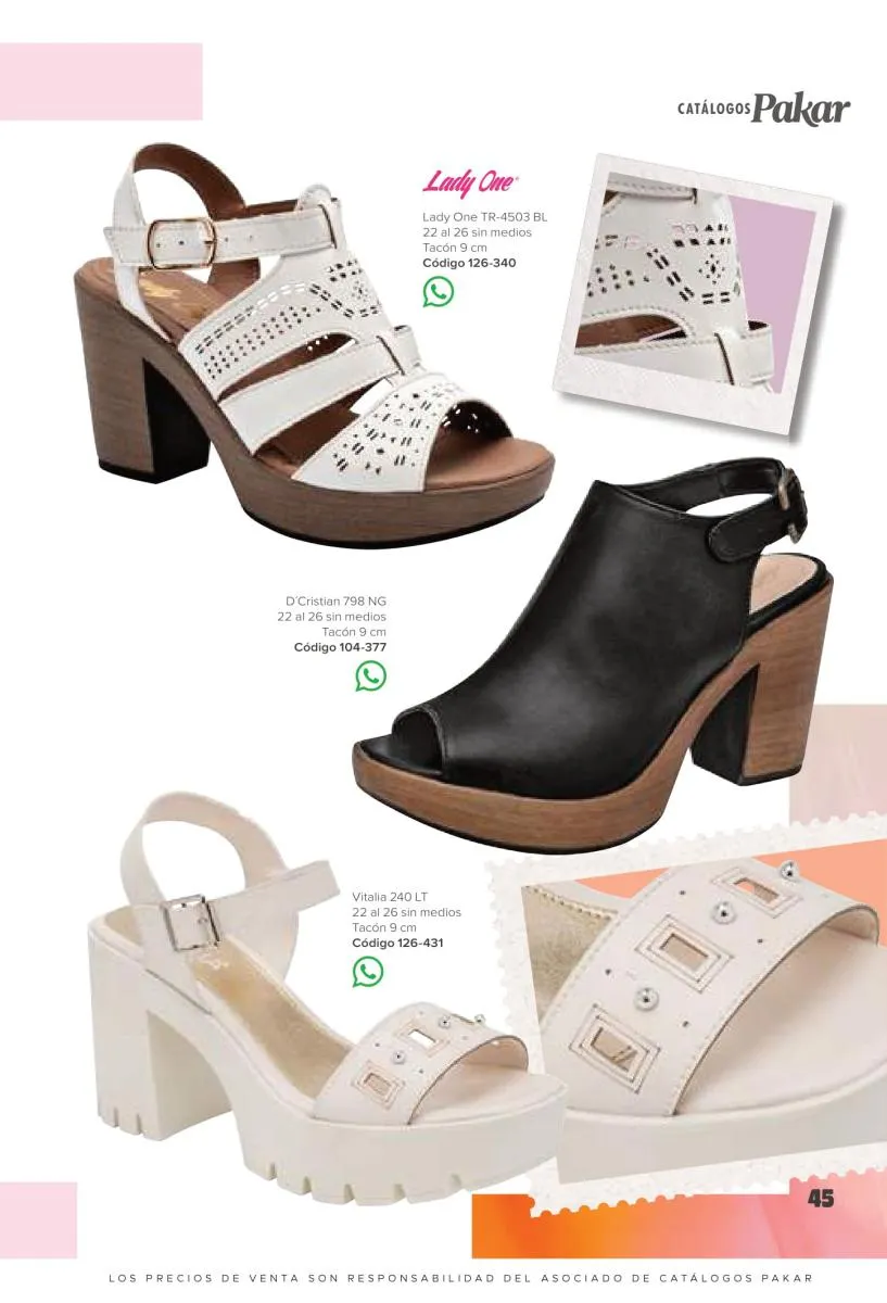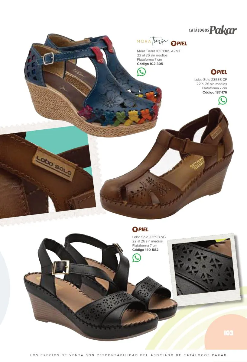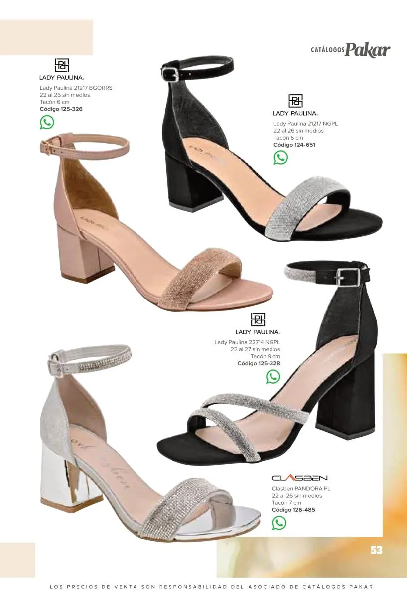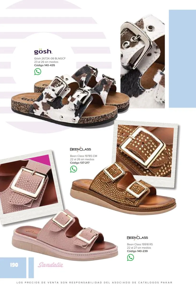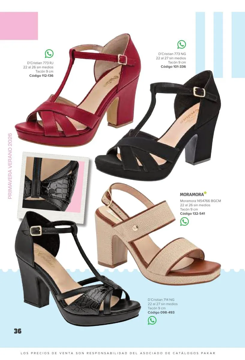 Otras opciones que tiene esta catálogo Pakar Sandalia primavera verano 2026 México, son las sandalias de corte alto, son cerradas en casi toda su extensión, de tacón alto y con un aspecto sumamente refinado. Están hechas en diferentes materiales para crear estilos muy marcados, seguro puedes combinarlas con unos hermosos jeans o alguna linda minifalda. Para una personalidad un poco más divertida, tenemos modelos más coloridos y con detalles en su superficie. Diseños coloridos, estampados, de flores, entre otros, todos creados con la intención de resaltar tu estilo y tu personalidad.