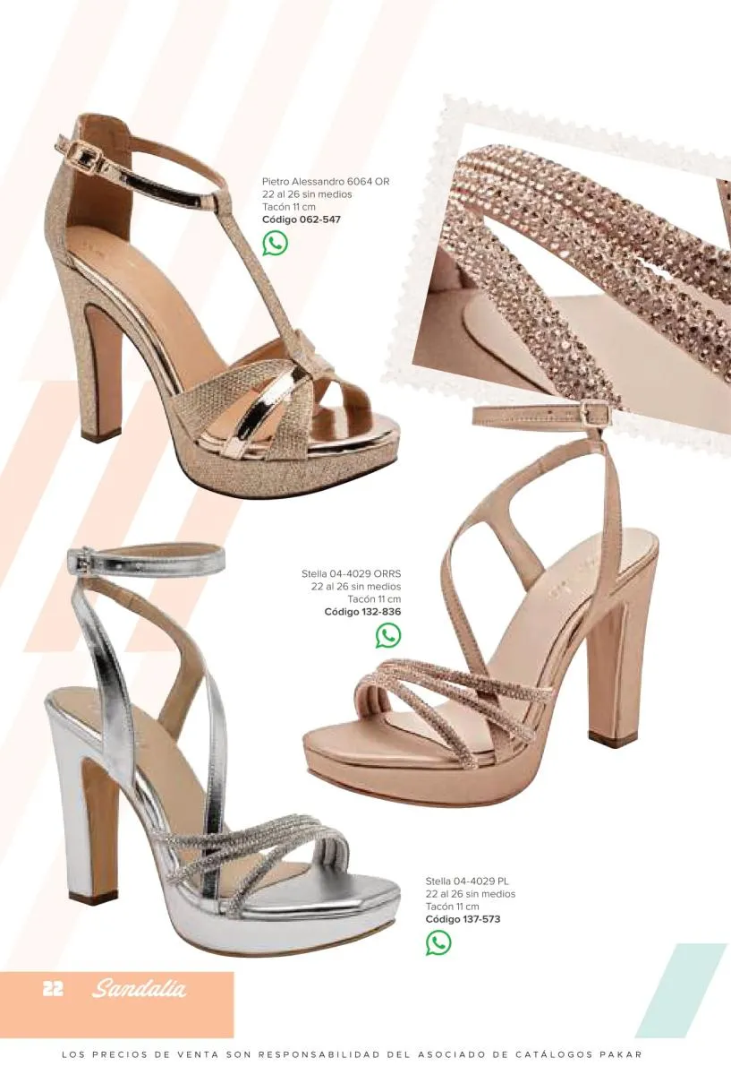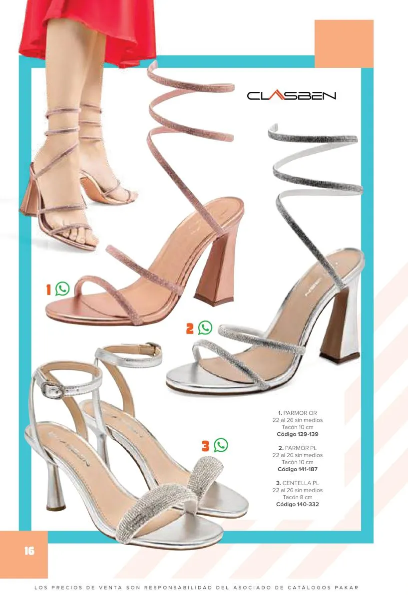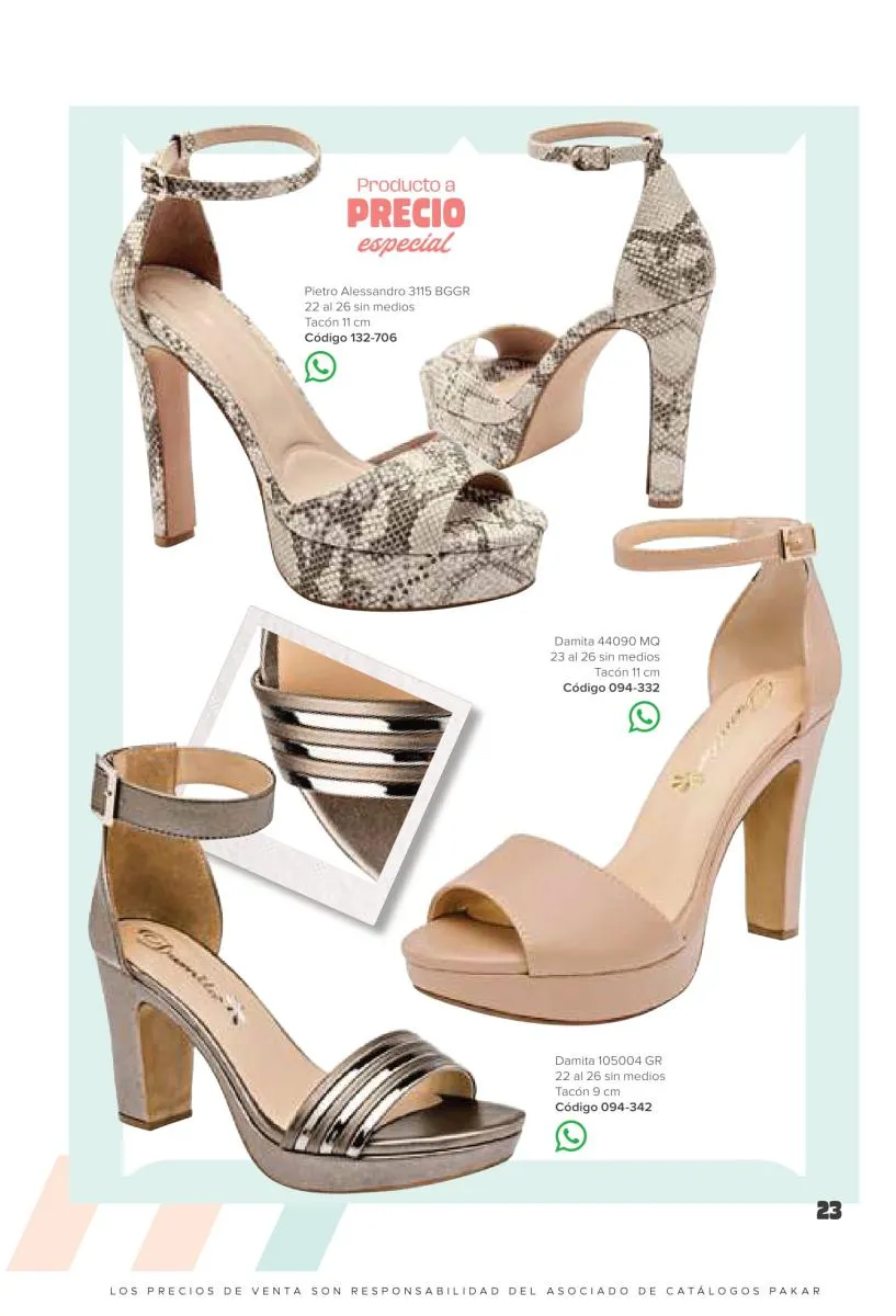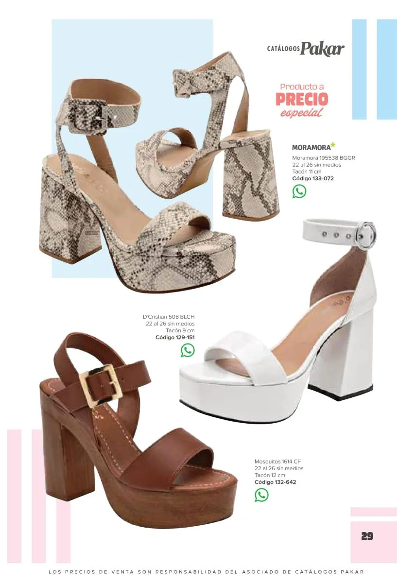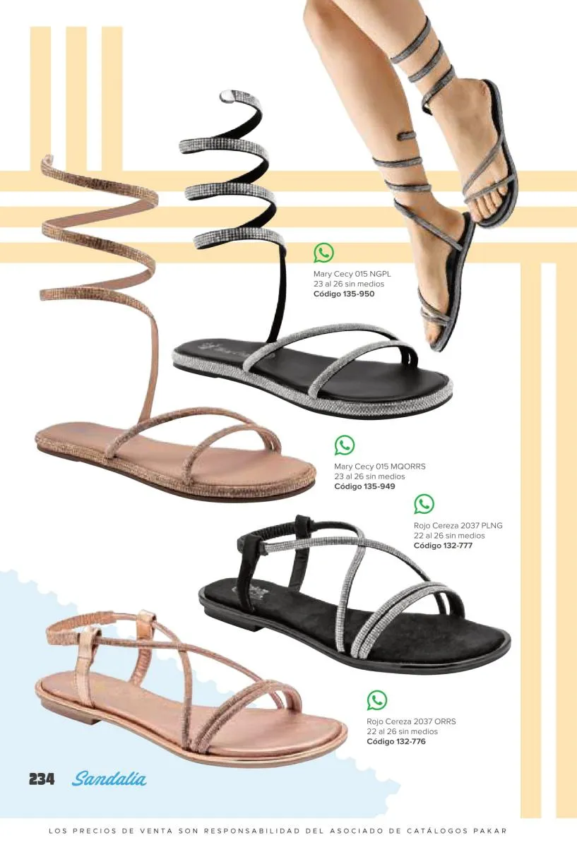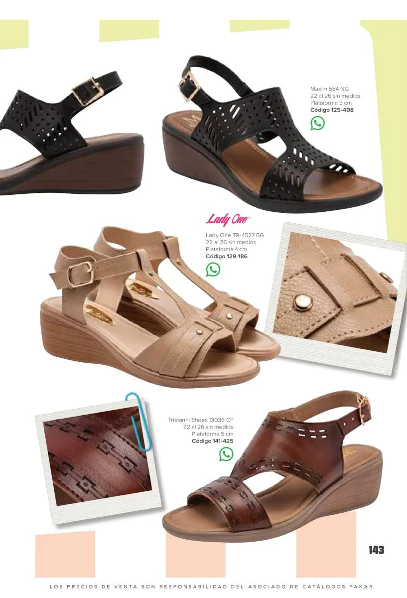Otras opciones que tiene esta catálogo Pakar Sandalia primavera verano 2026 México, son las sandalias de corte alto, son cerradas en casi toda su extensión, de tacón alto y con un aspecto sumamente refinado. Están hechas en diferentes materiales para crear estilos muy marcados, seguro puedes combinarlas con unos hermosos jeans o alguna linda minifalda. Para una personalidad un poco más divertida, tenemos modelos más coloridos y con detalles en su superficie. Diseños coloridos, estampados, de flores, entre otros, todos creados con la intención de resaltar tu estilo y tu personalidad.