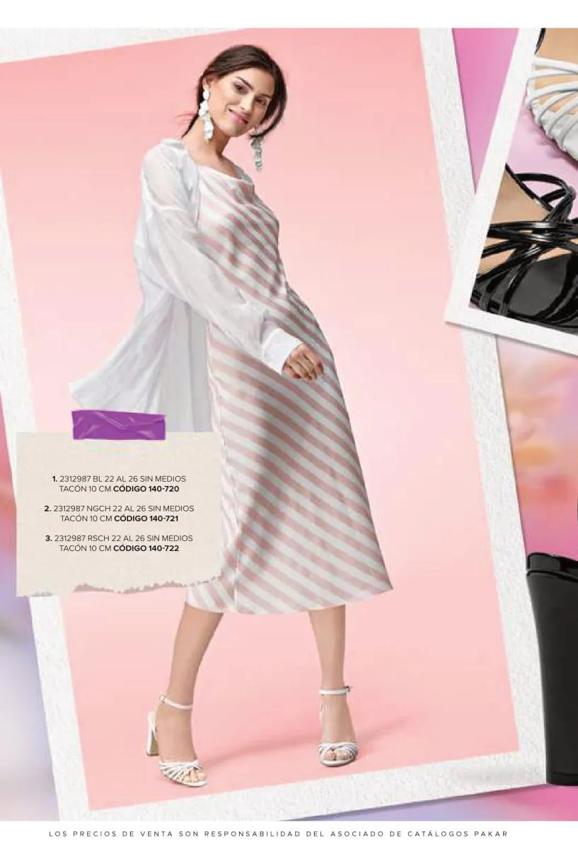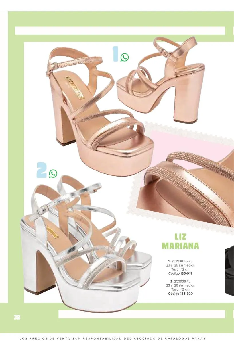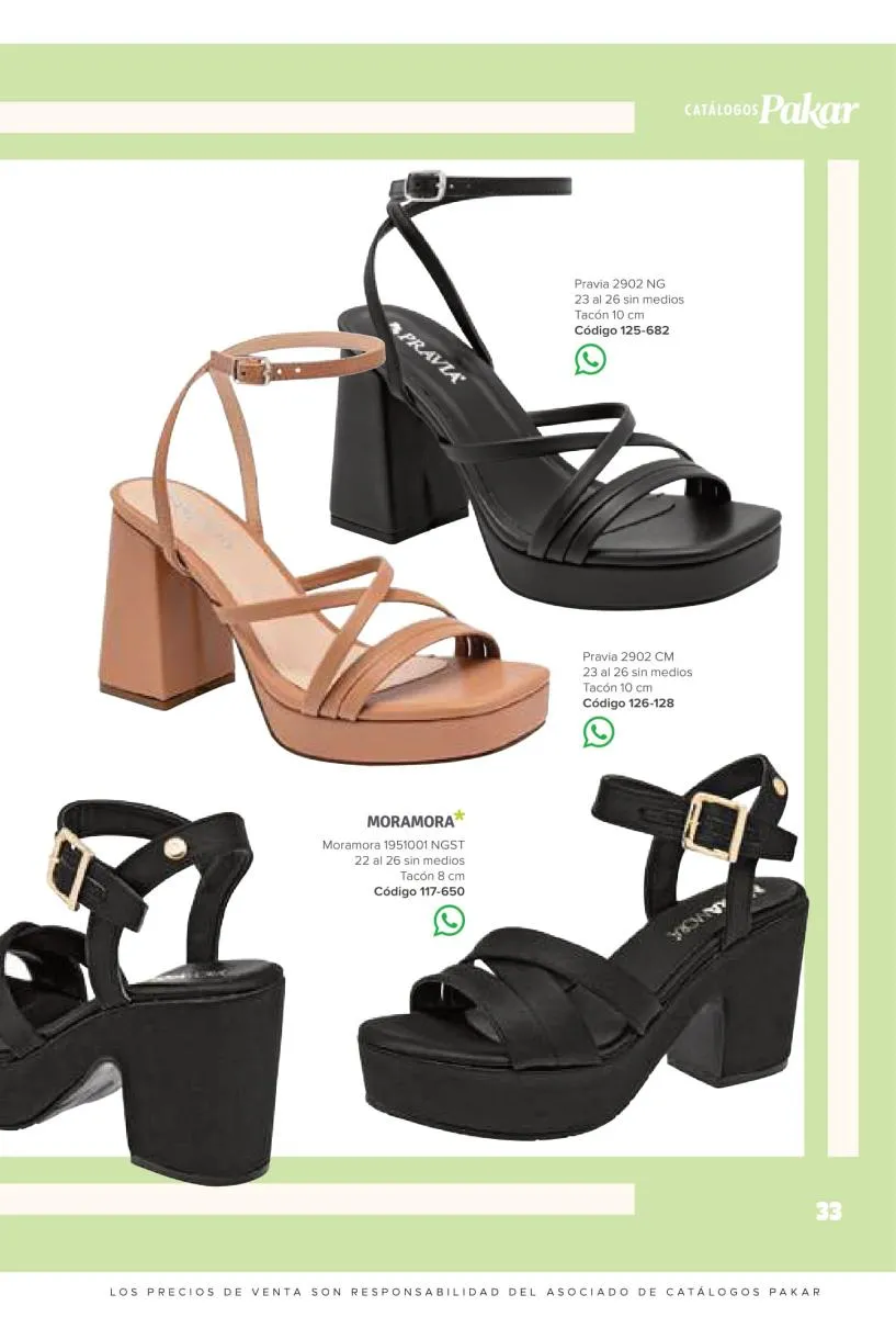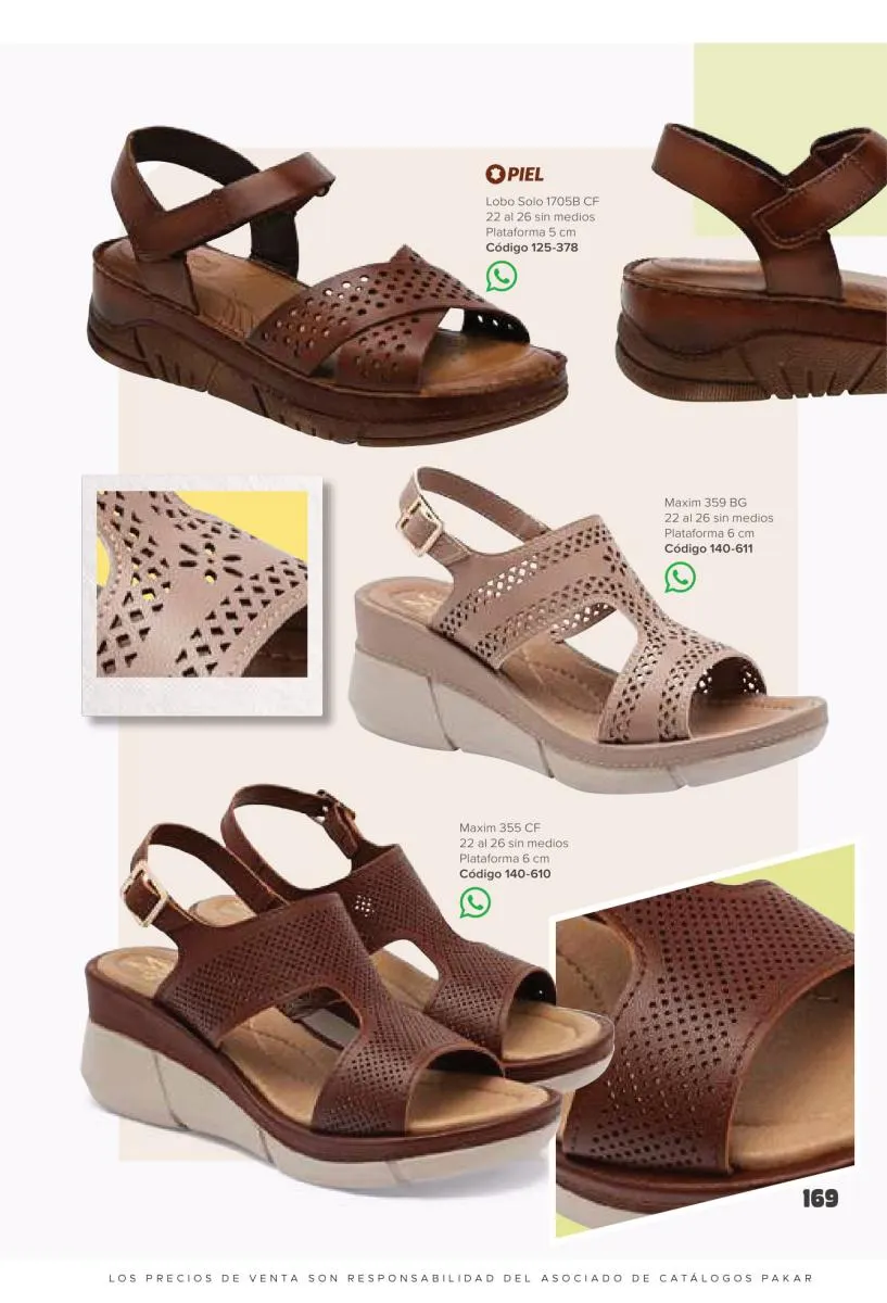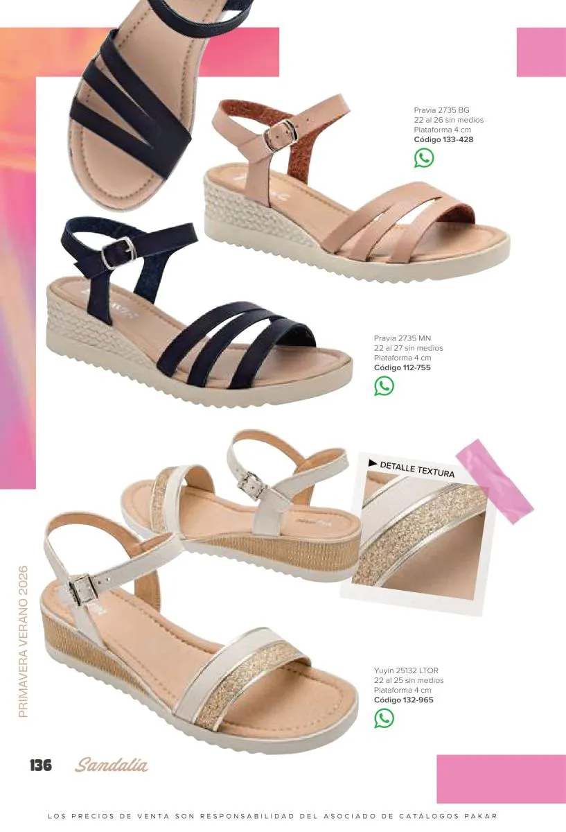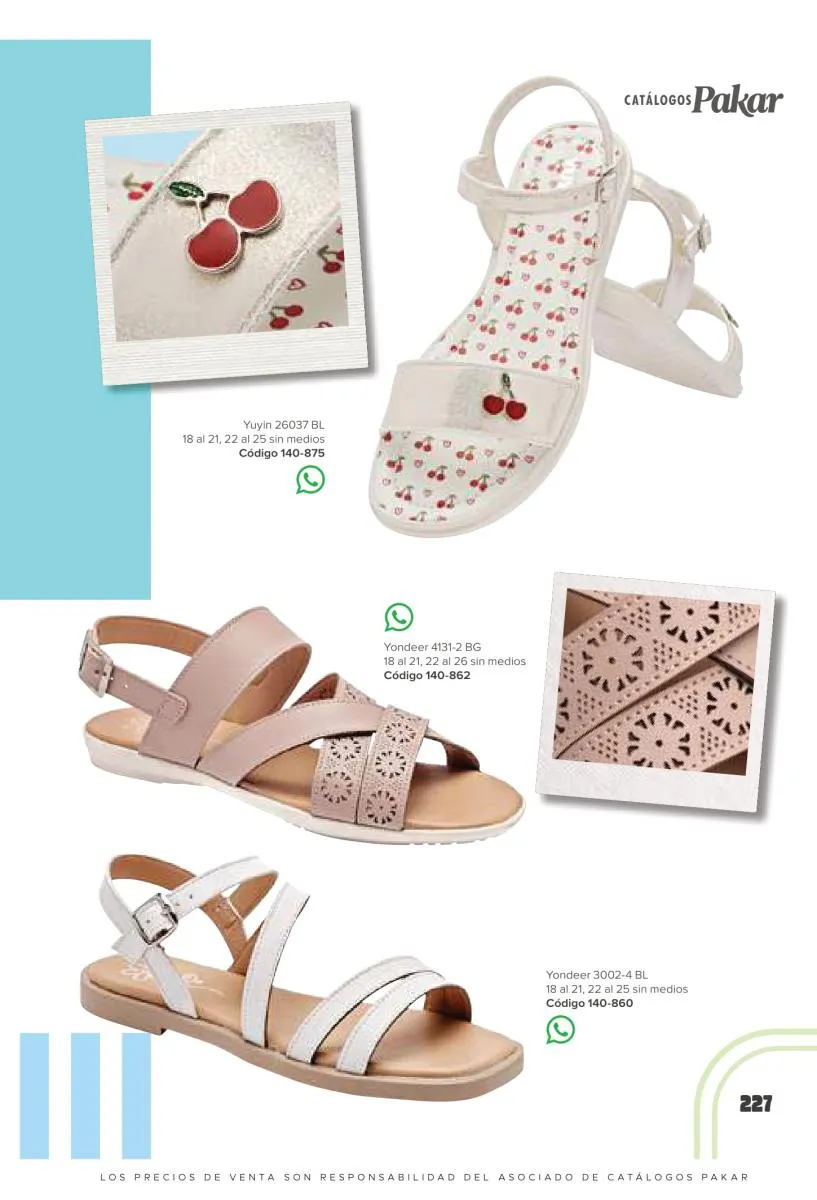 Otras opciones que tiene esta catálogo Pakar Sandalia primavera verano 2026 México, son las sandalias de corte alto, son cerradas en casi toda su extensión, de tacón alto y con un aspecto sumamente refinado. Están hechas en diferentes materiales para crear estilos muy marcados, seguro puedes combinarlas con unos hermosos jeans o alguna linda minifalda. Para una personalidad un poco más divertida, tenemos modelos más coloridos y con detalles en su superficie. Diseños coloridos, estampados, de flores, entre otros, todos creados con la intención de resaltar tu estilo y tu personalidad.