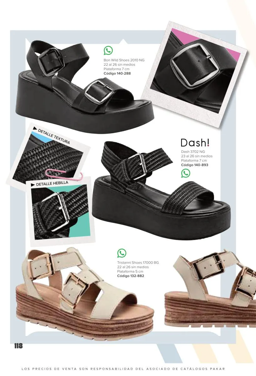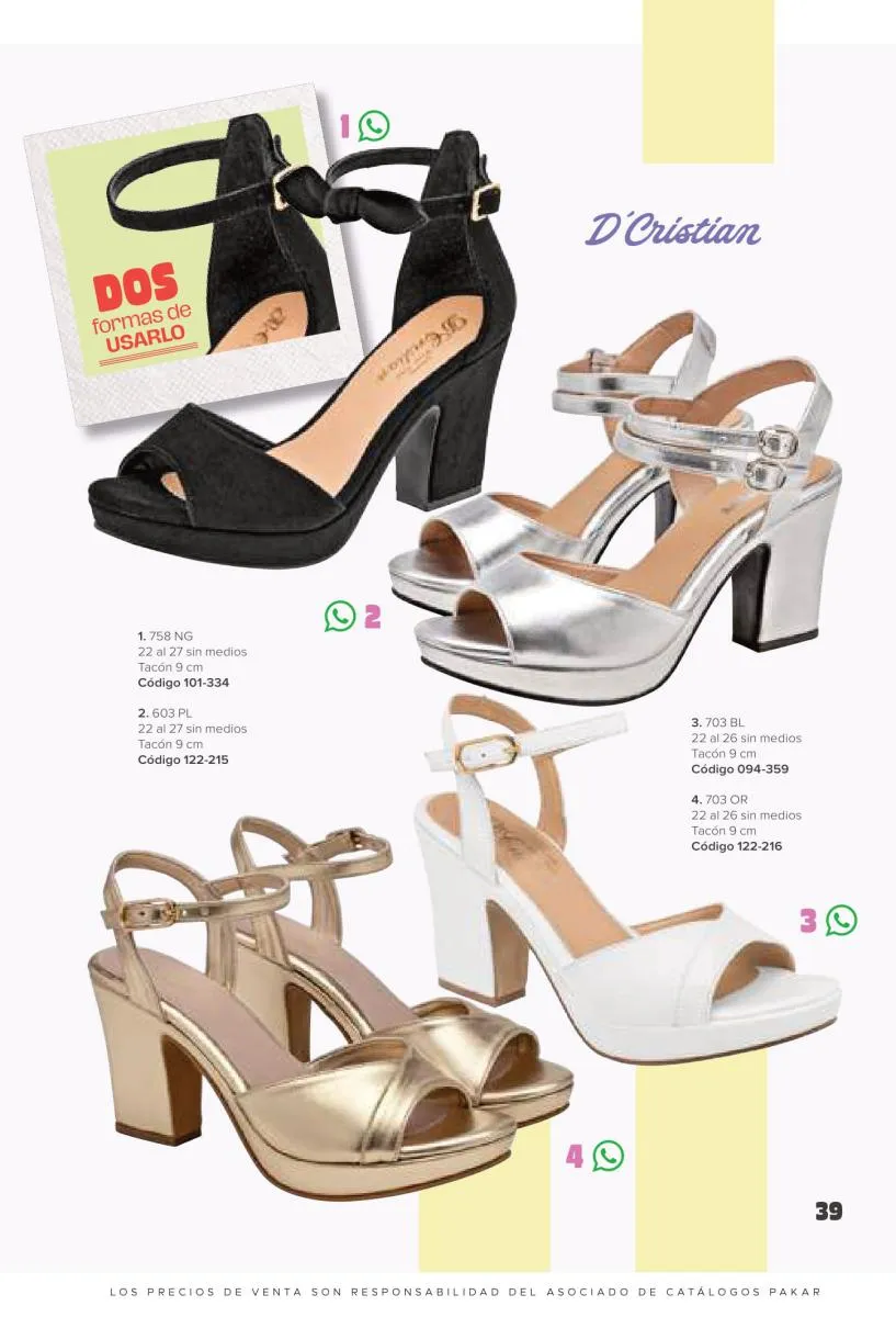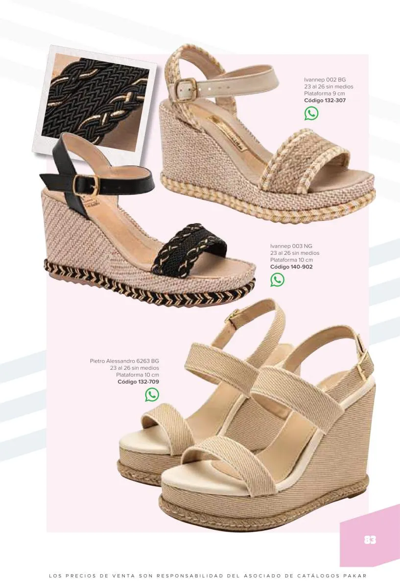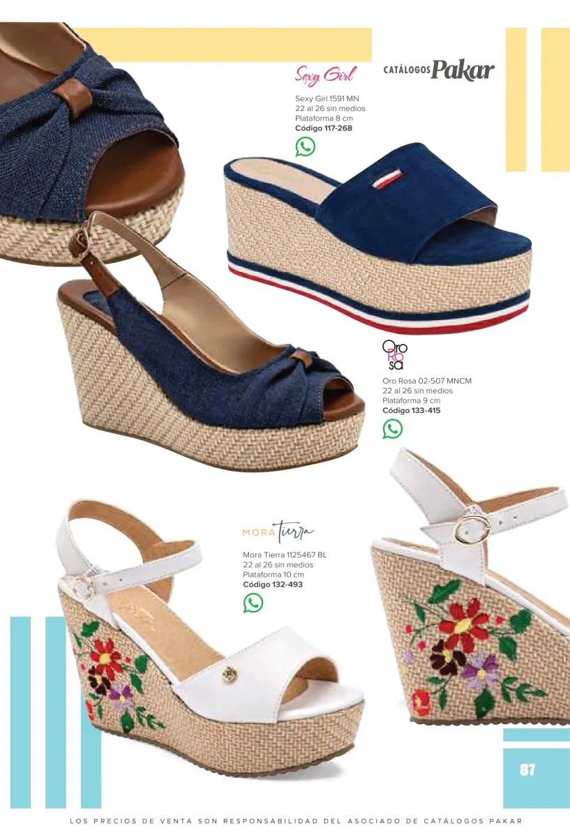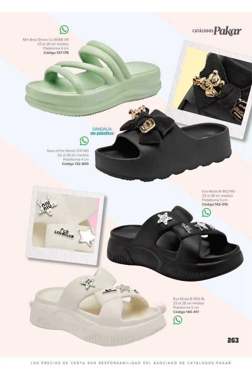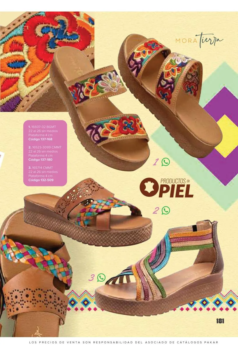 Otras opciones que tiene esta catálogo Pakar Sandalia primavera verano 2026 México, son las sandalias de corte alto, son cerradas en casi toda su extensión, de tacón alto y con un aspecto sumamente refinado. Están hechas en diferentes materiales para crear estilos muy marcados, seguro puedes combinarlas con unos hermosos jeans o alguna linda minifalda. Para una personalidad un poco más divertida, tenemos modelos más coloridos y con detalles en su superficie. Diseños coloridos, estampados, de flores, entre otros, todos creados con la intención de resaltar tu estilo y tu personalidad.