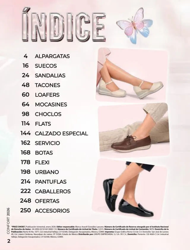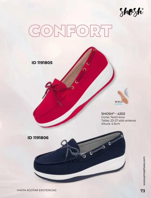 Aprovecha la máxima calidad y comodidad en tus pies con las opciones que catálogo Price Shoes Confort 2026 México tiene para ti. Con calzado ultra-ligero, flexible, plantilla memory foam y acojinada, suela antiderrapante, elástico ajustable, y muchos beneficios más.