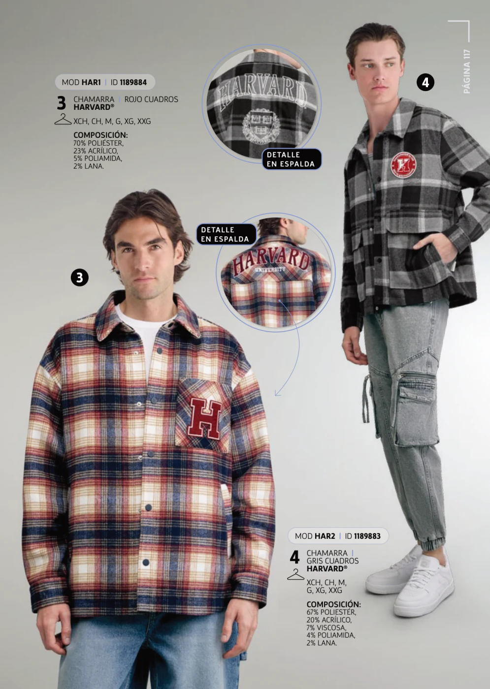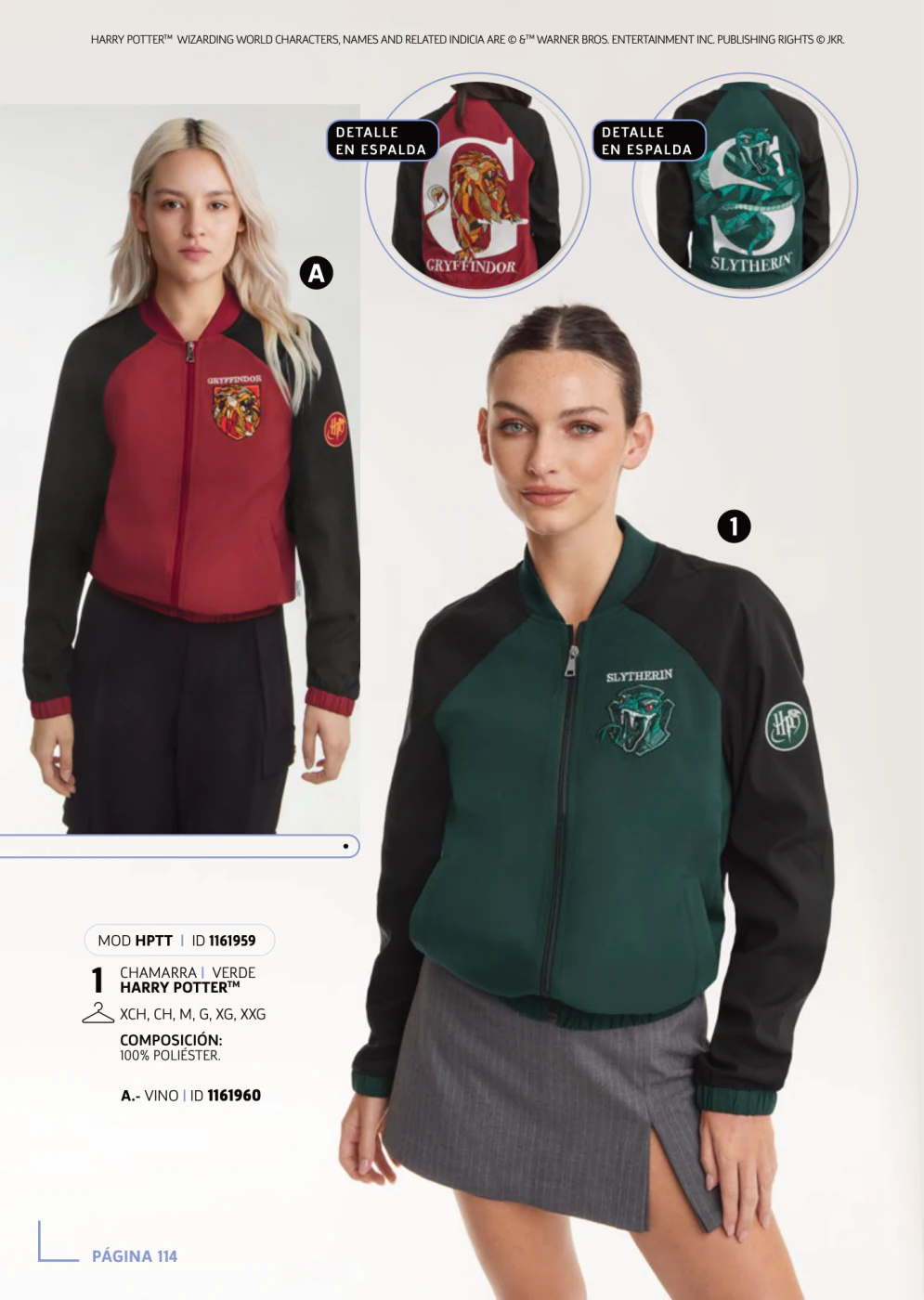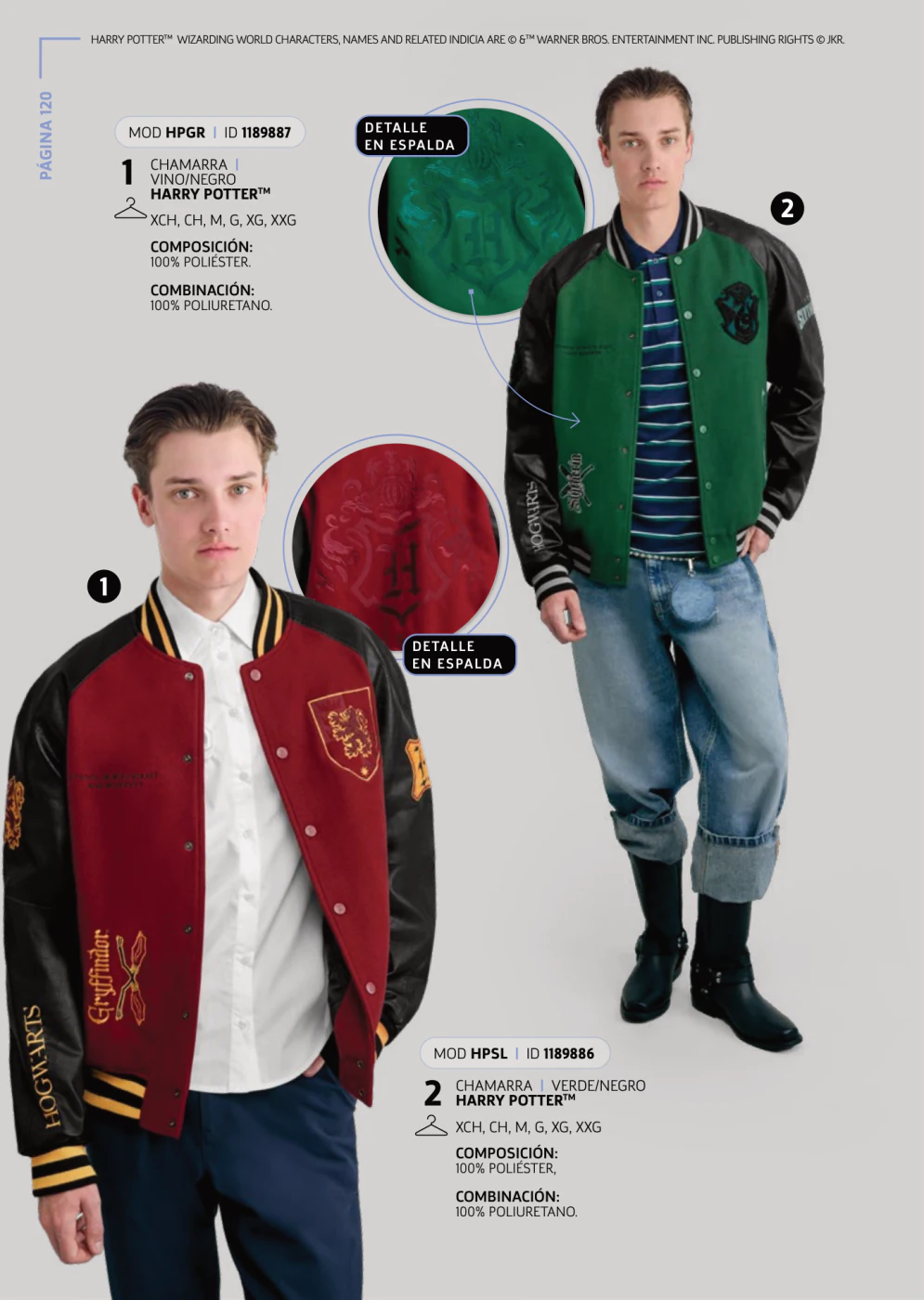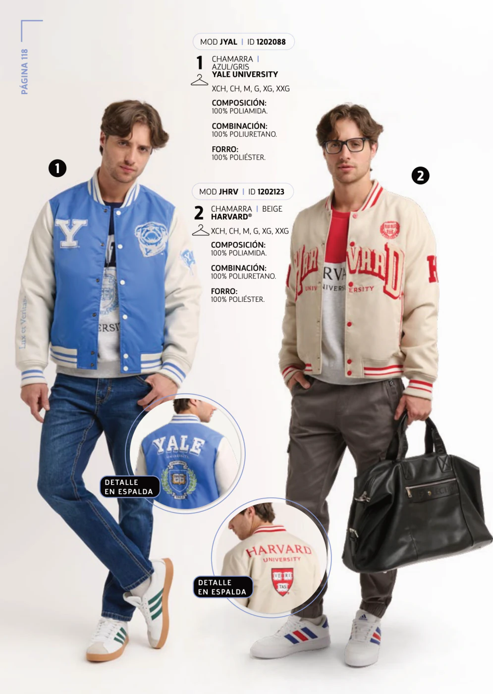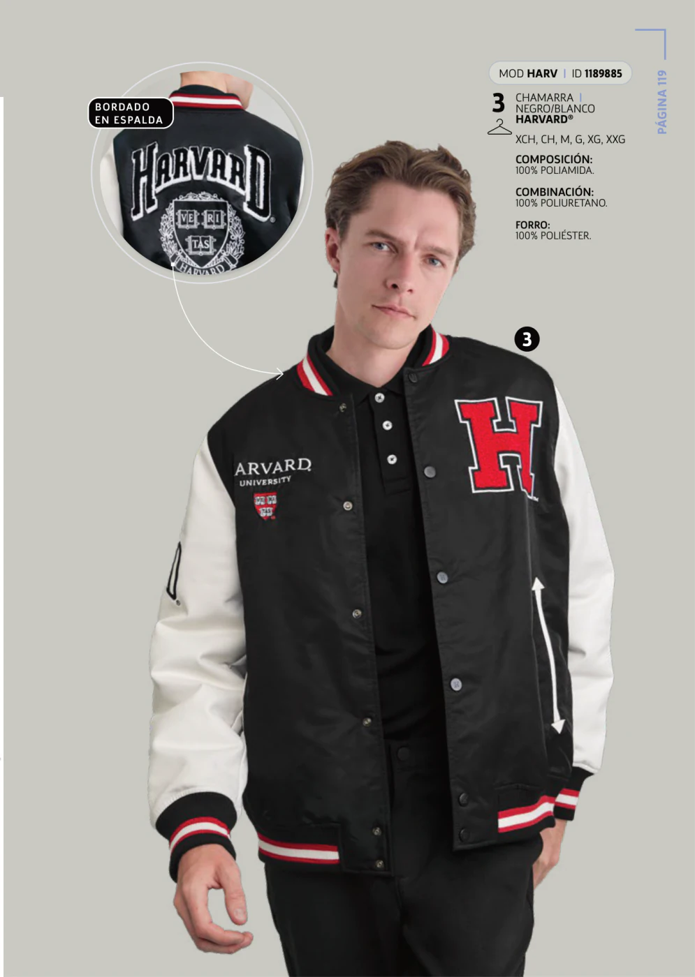 Otro elemento destacado es la chaqueta «Harvard» en rojo y marfil, una prenda que combina estilo universitario clásico con funcionalidad. Fabricada con la misma mezcla de algodón y poliéster, esta chaqueta es ideal para estudiantes que buscan una prenda versátil y con estilo para el Fiesta Panty.