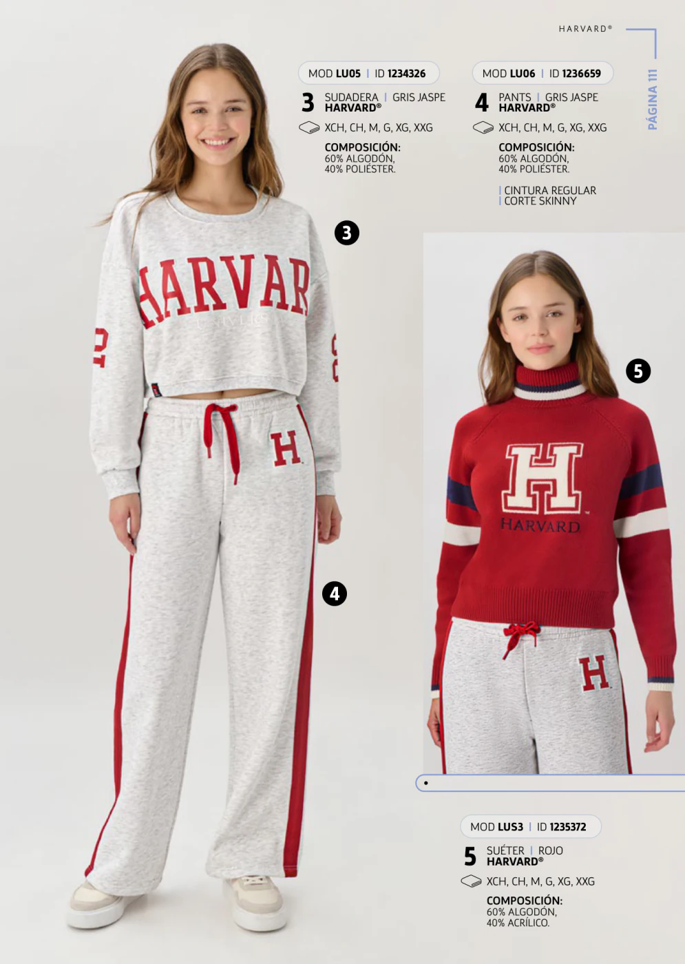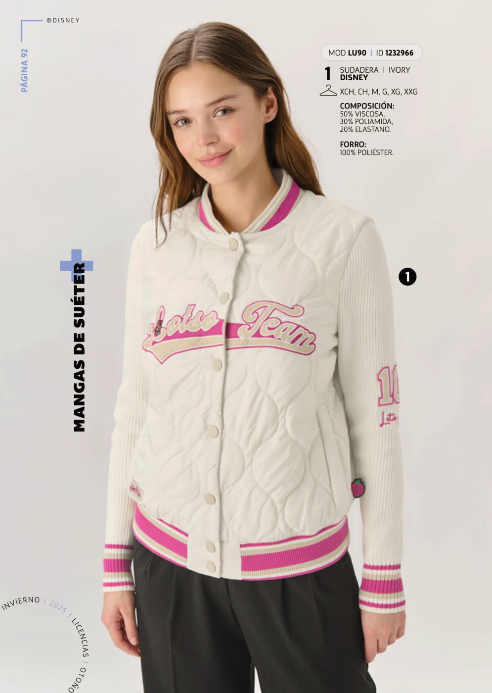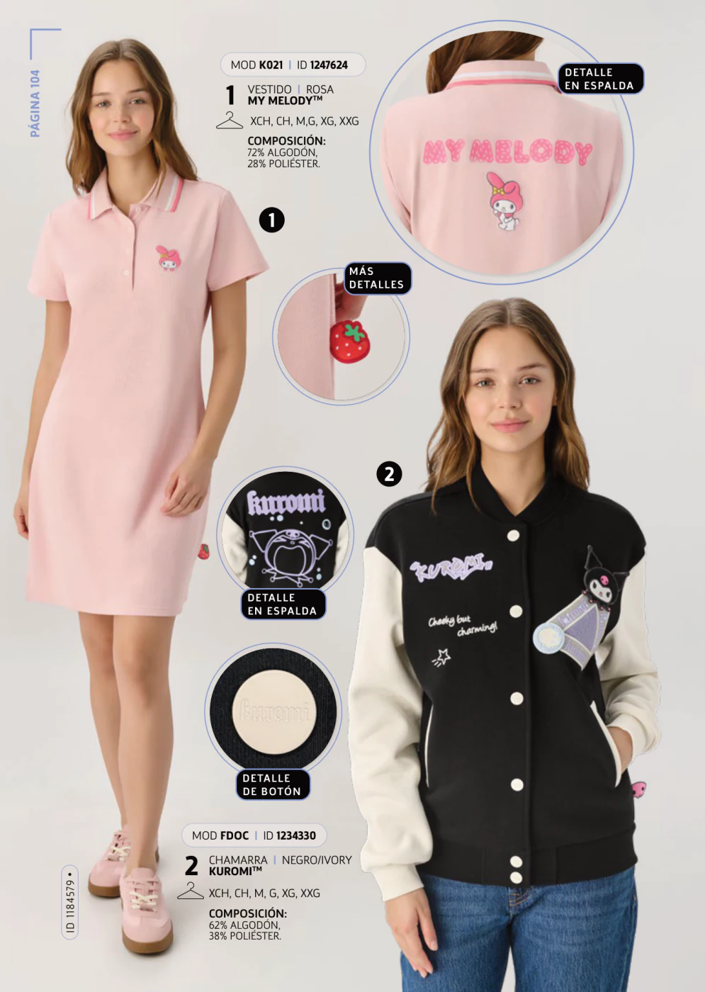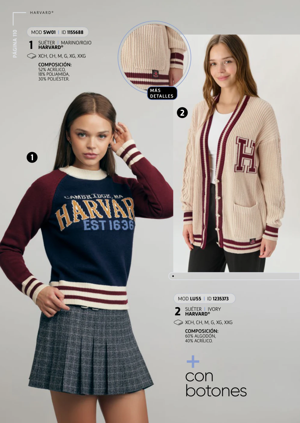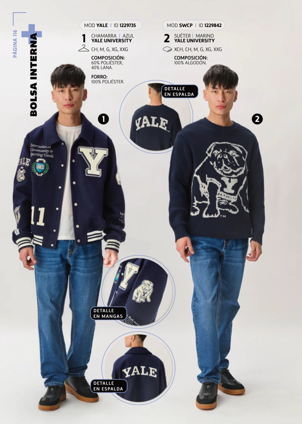 Otro elemento destacado es la chaqueta «Harvard» en rojo y marfil, una prenda que combina estilo universitario clásico con funcionalidad. Fabricada con la misma mezcla de algodón y poliéster, esta chaqueta es ideal para estudiantes que buscan una prenda versátil y con estilo para el Fiesta Panty.