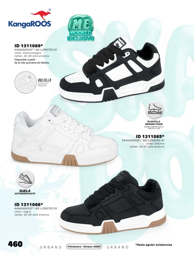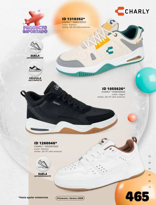 Destacamos marcas como kangaROOS los que tienen un bolsillo interno en su lengüeta, Charly, Urban Shoes, París Hilton entre otras.