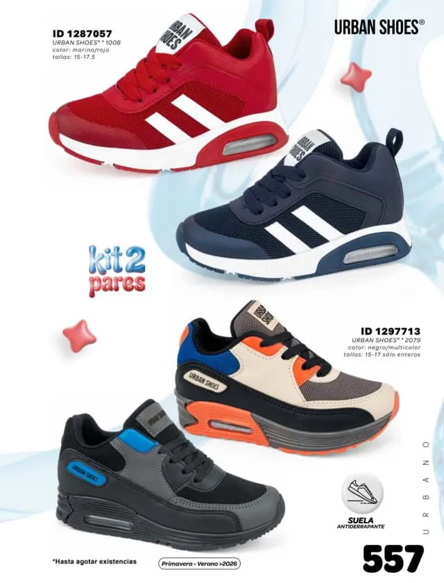 Todos los modelos junior traen suela EVA, corte de piel y con súper paquetes de ofertas.