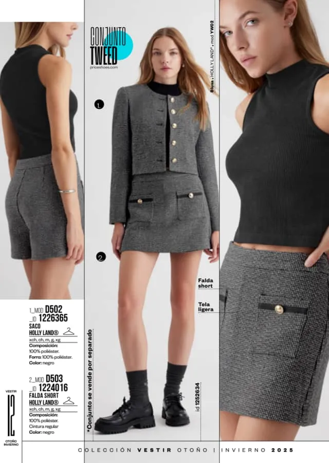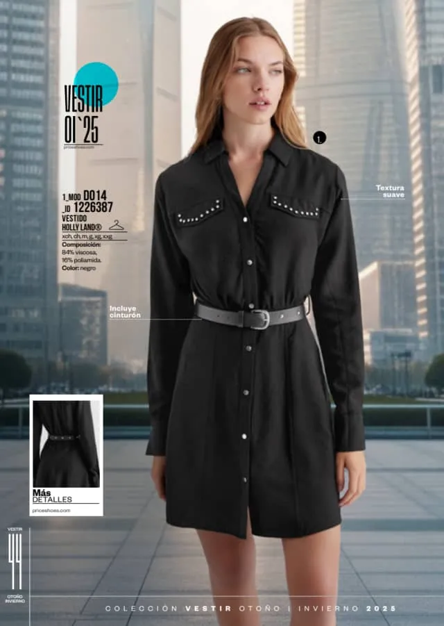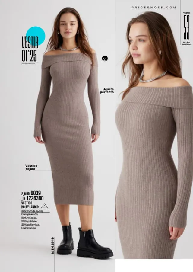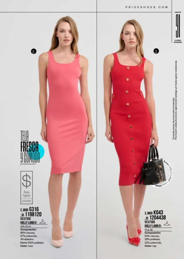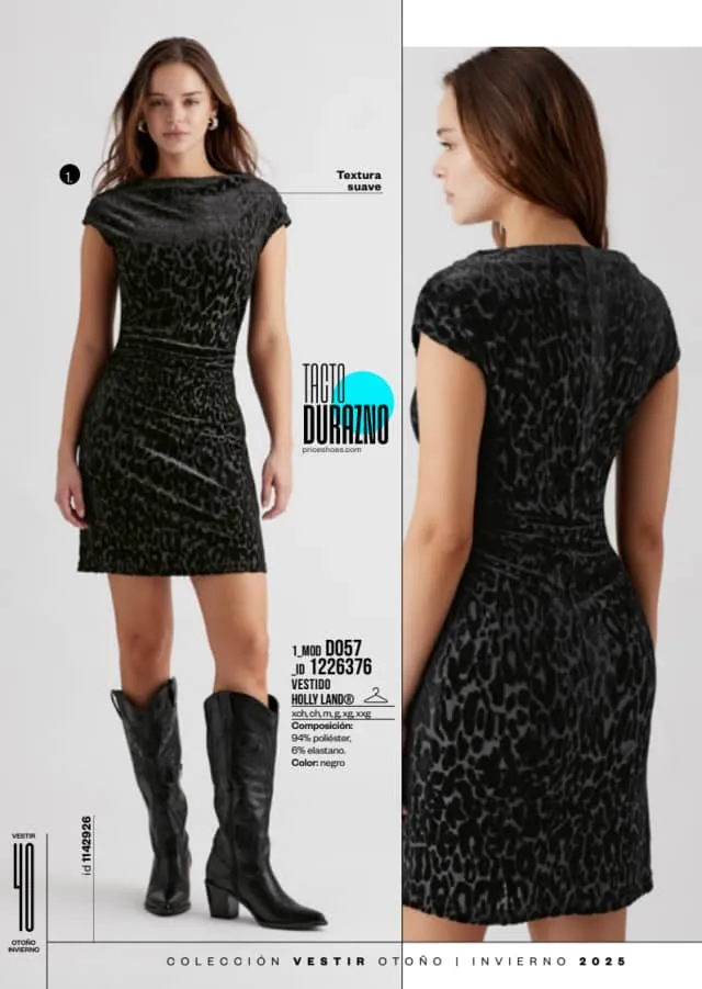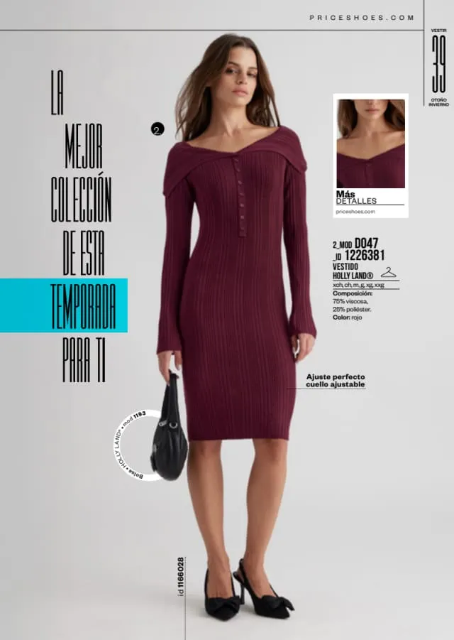 Lo primero que destaca para este catálogo Price Shoes Vestir 2025 México son vestidos por encima de la rodilla, de silueta ajustada. Lucir tus piernas es más fácil y cómodo con Price Shoes.