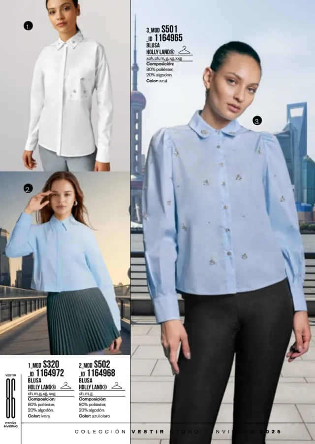 Al igual que los Importados, también están las blusas con textura brillante y de cuello alto, especiales para ir a la fiesta.
