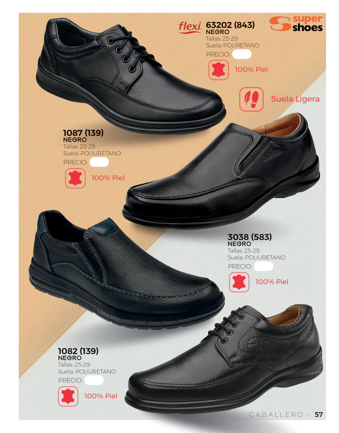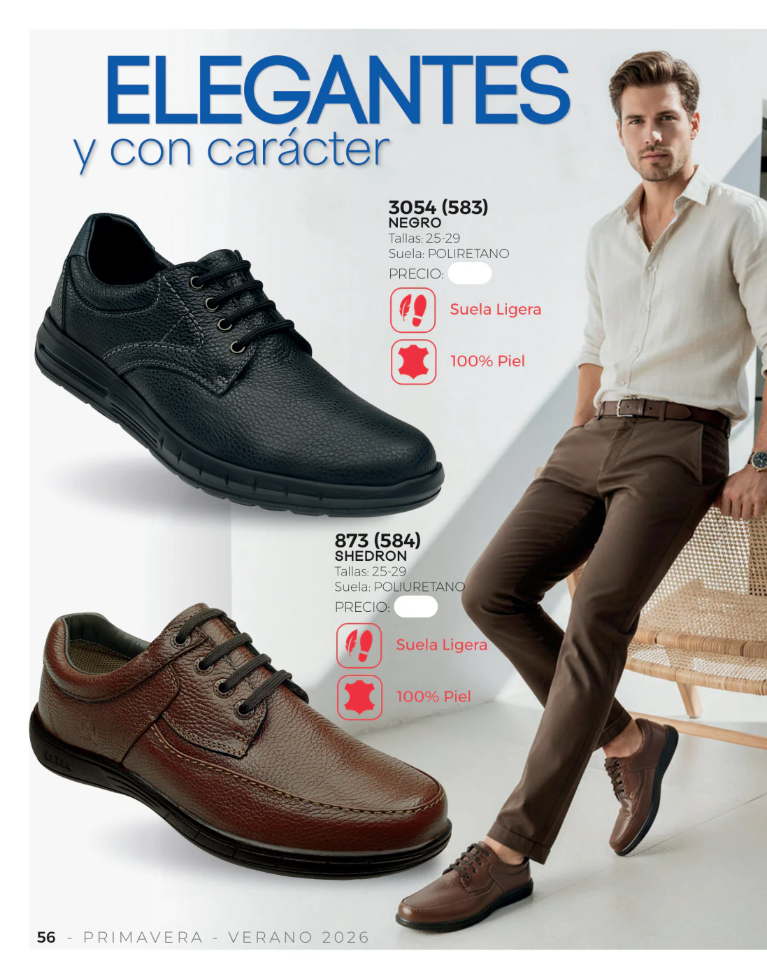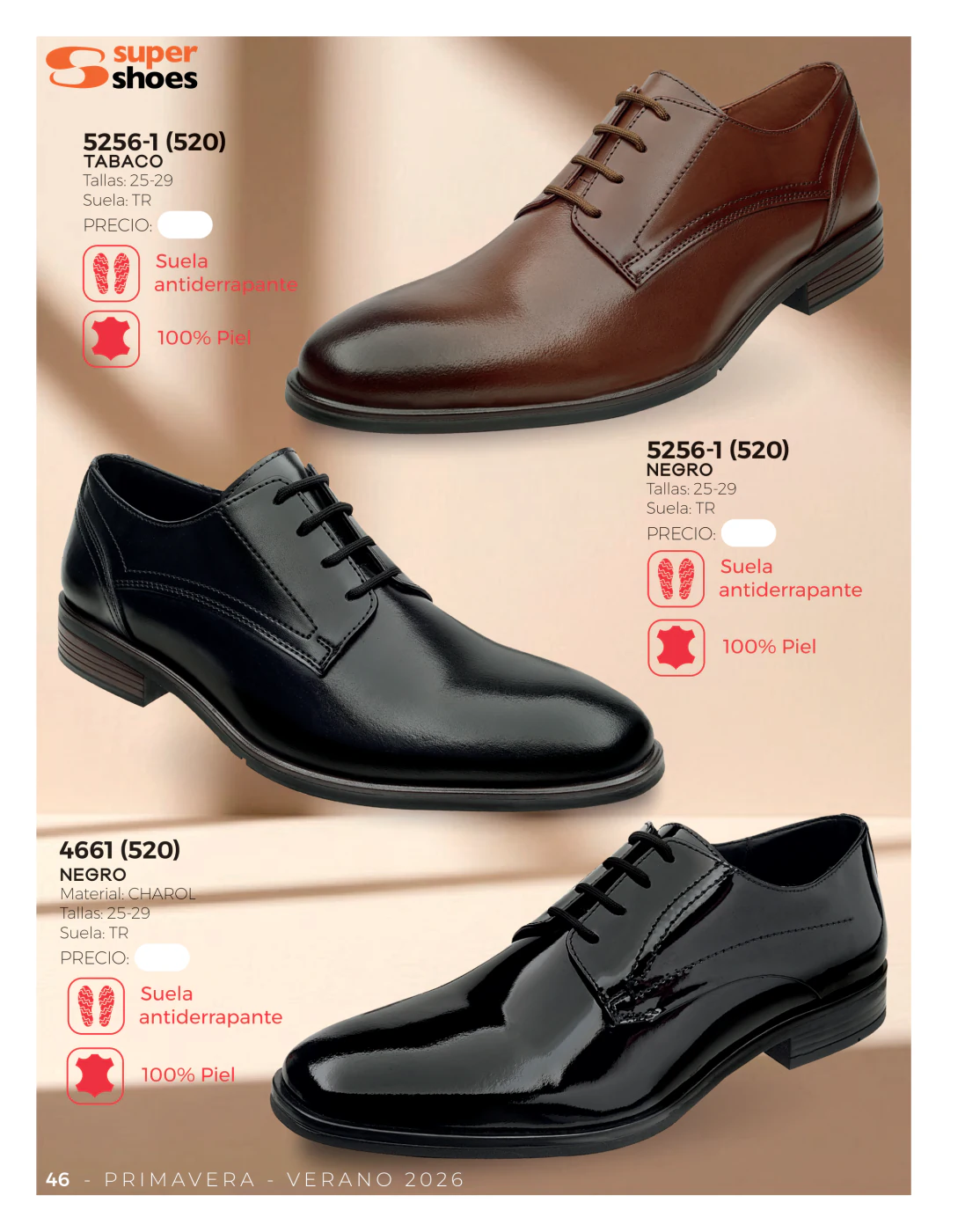 Hay que destacar en esta revista Super Shoes primavera verano 2026 Caballero México, el calzado formal de Super Shoes. Es uno elaborado en piel, flexible pero resistente. Desde la páginas puedes disfrutar de diversos modelos de la marca Christian Gallery o Flexi.
