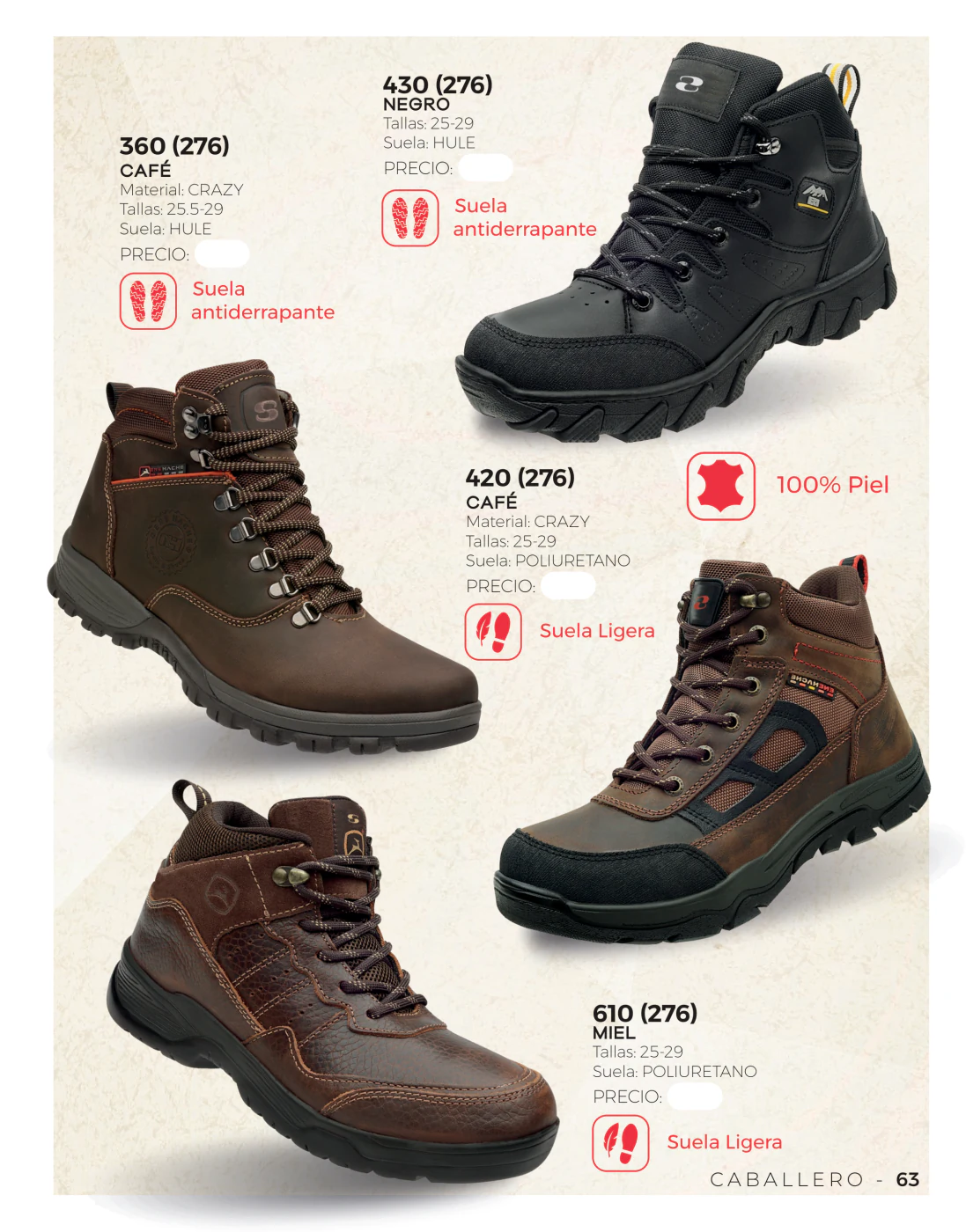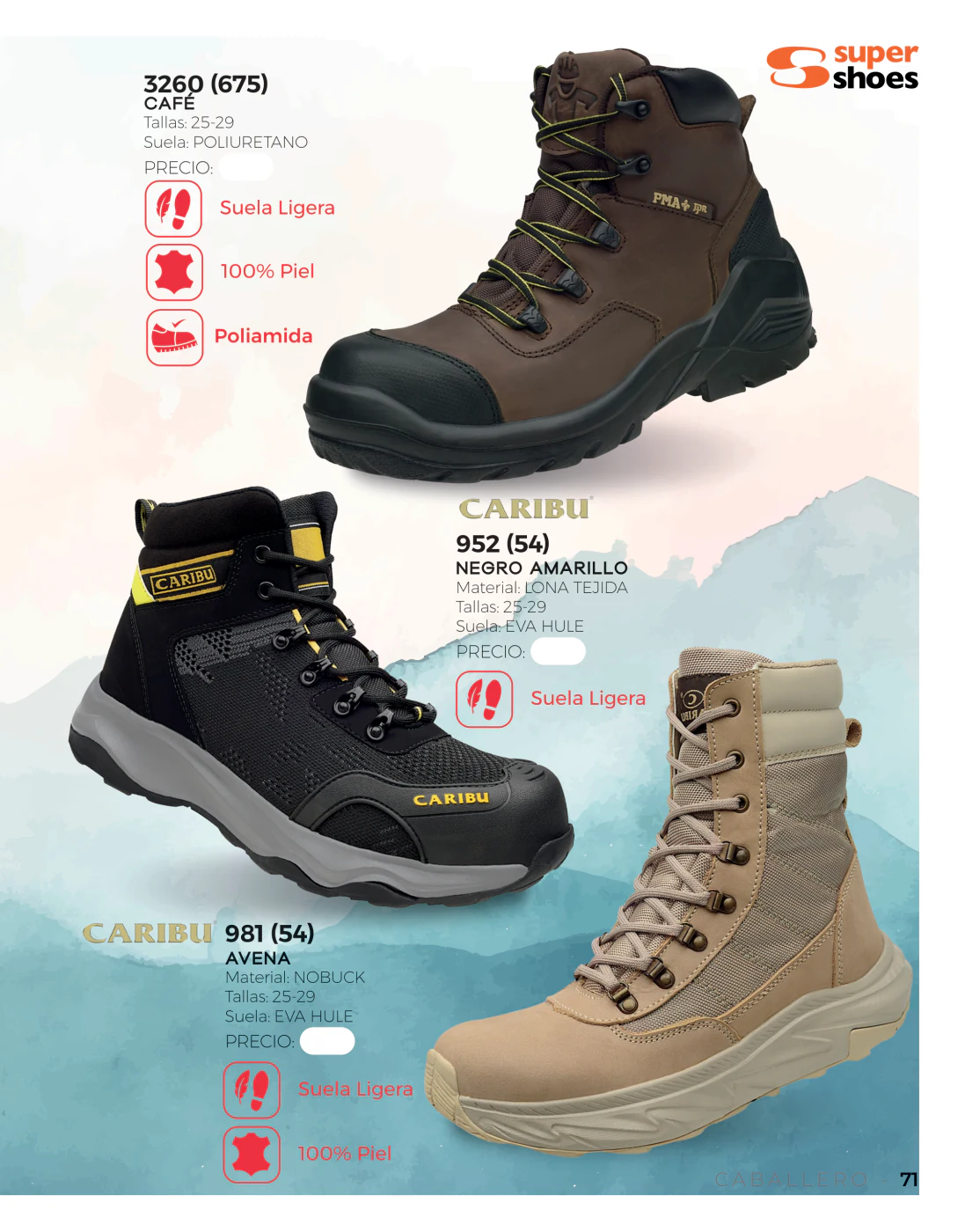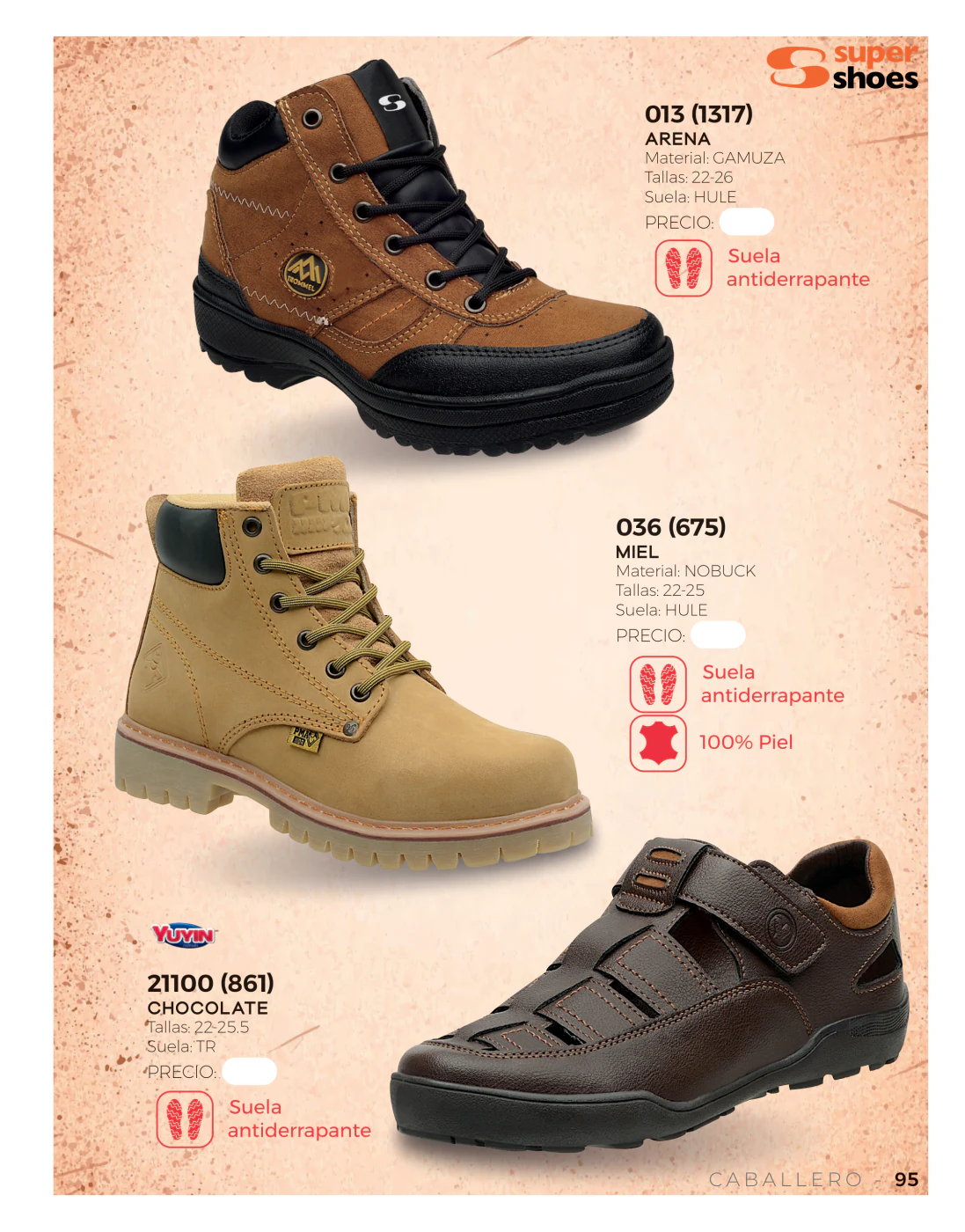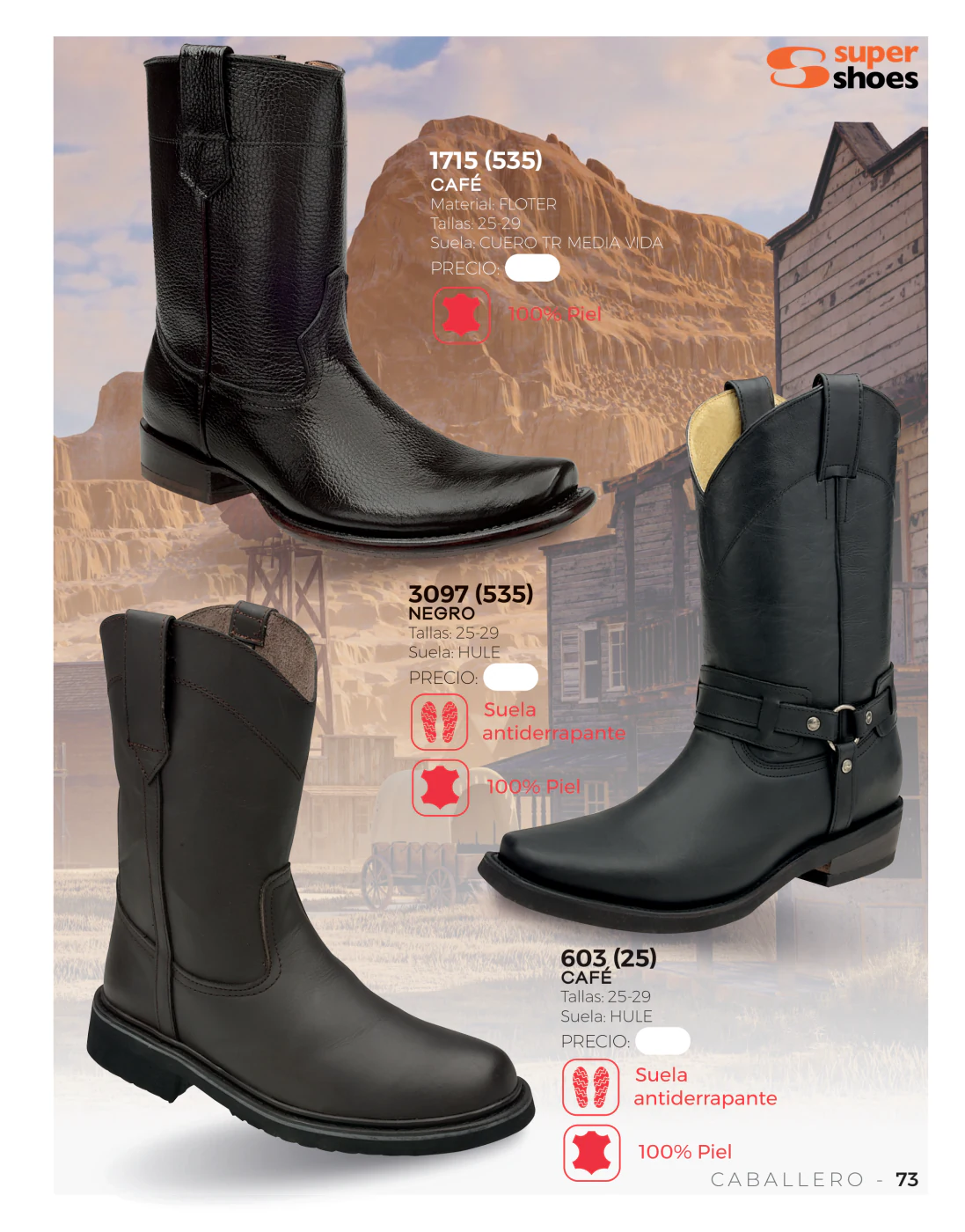 Finalizamos este recorrido por el catálogo Super Shoes Caballero con los modelos de botas para caballero, un calzado que les hace lucir atractivos y elegantes. Hay una amplia gama de modelos que seguro ellos gustarán usar, como el modelo 6481(272) en color maple que tiene un cómodo elástico en tobillera.