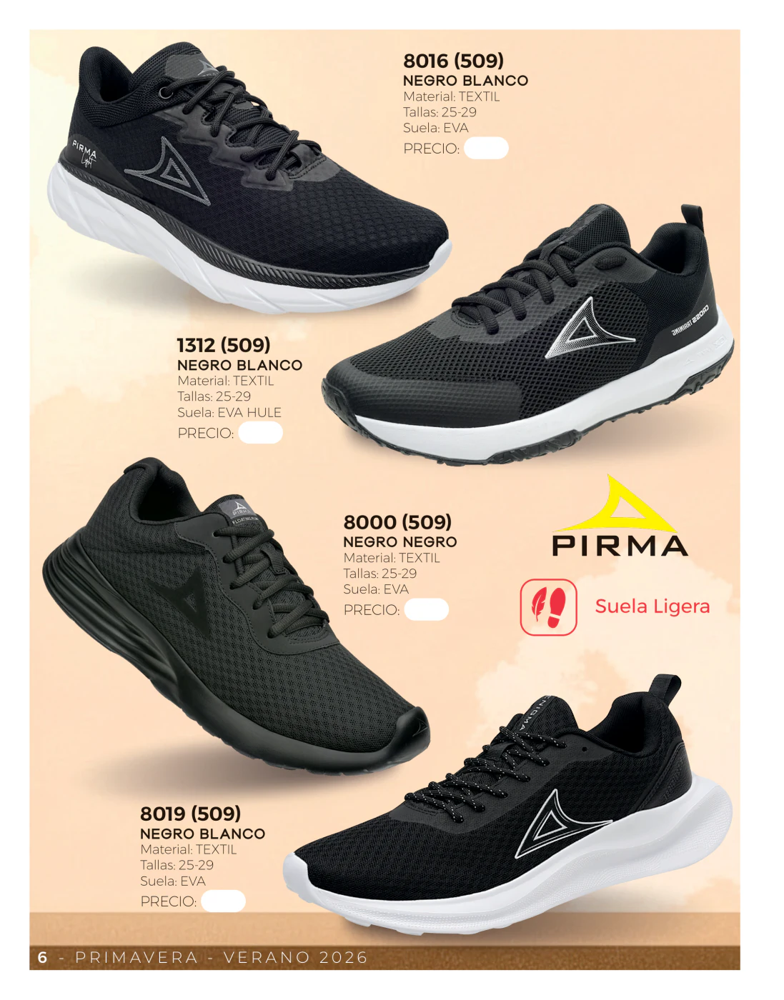 Pirma es una de las primeras en hacer aparición y lo hace con modelos perfectos para los caballeros de hoy. Por una parte, puedes conseguir modelos tradicionales en color negro elaborado con material textil y suela burbuja como el modelo 5056 (509).