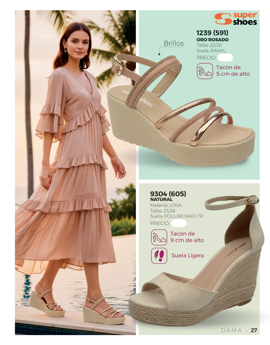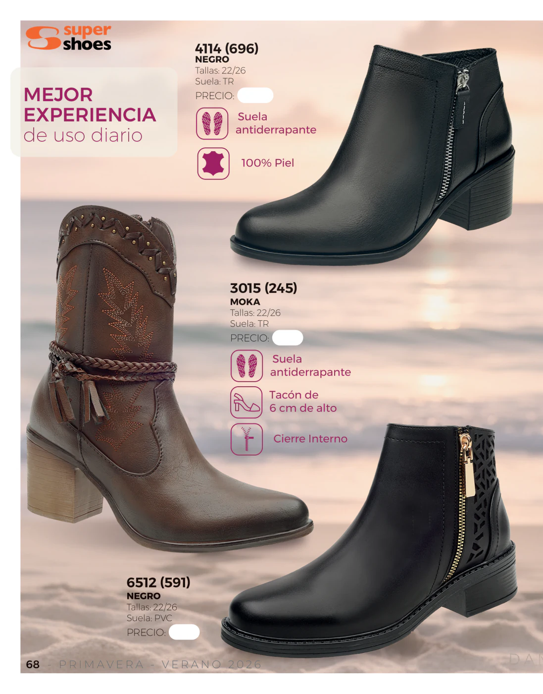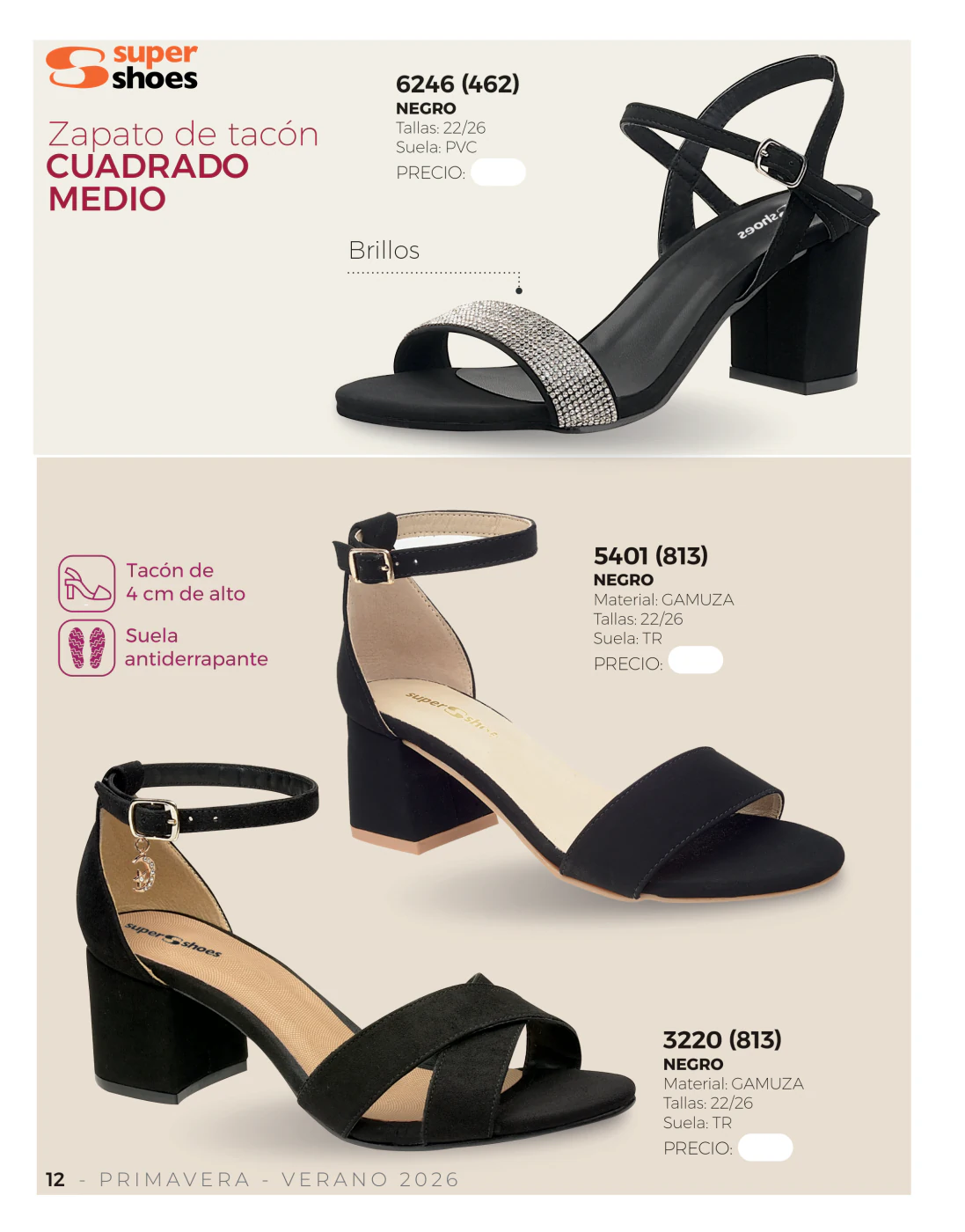 Lo primero que nos muestra este catálogo Super Shoes 2026 Dama es una amplia variedad de sandalias de tacón, perfectas para esas salidas donde tienes que lucir fantástica, empoderada y absolutamente bella.