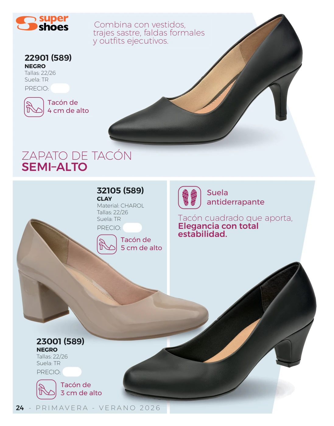 Vestir bien en tu trabajo es clave. Ofrece ese look profesional con la moda de Super Shoes primavera – verano para México con algunos de los modelos de esta revista 2026. Nuestras recomendaciones serán tener un modelo en charol negro o carne o uno en tono clay 24201(589) que combina con todo.