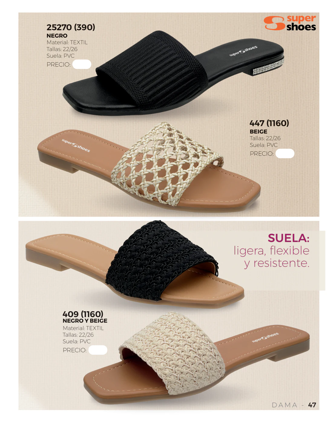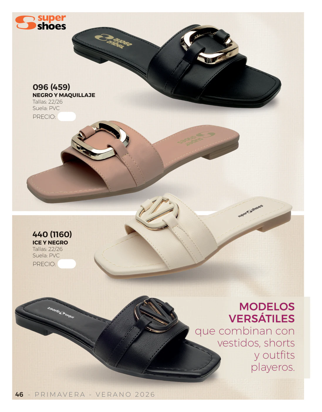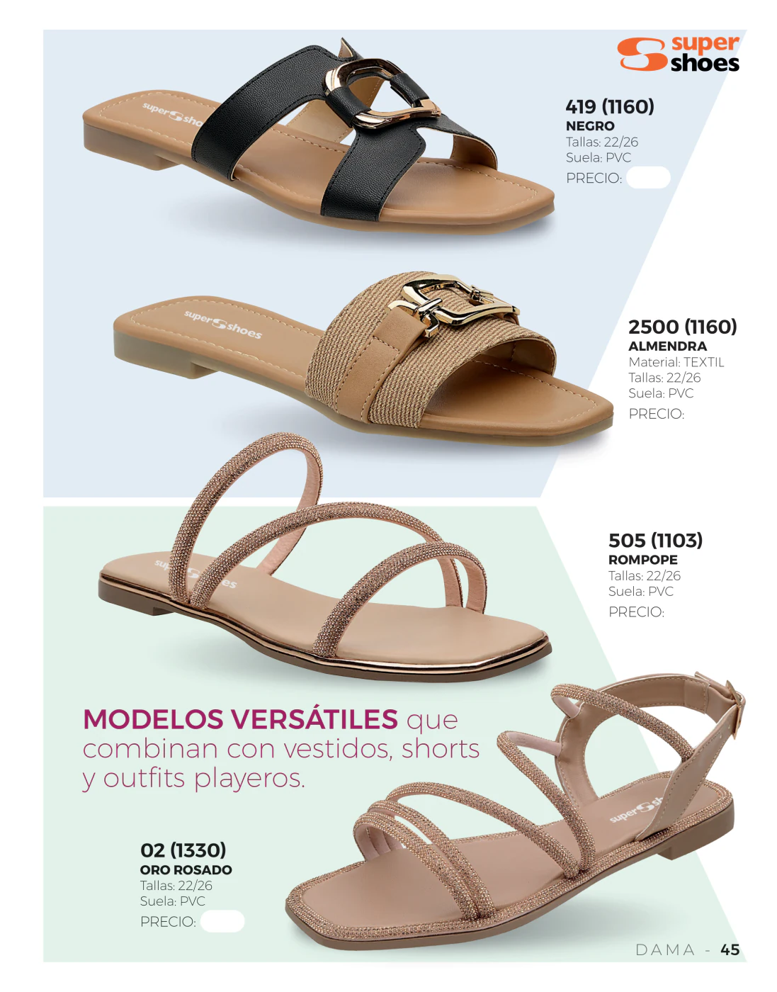 Estamos en la temporada primavera – verano y las olas y el sol llaman a pasar unos días frente al mar, en este sentido, las sandalias bajas resultan las compañeras ideales y en este catálogo Super Shoes primavera verano 2026 Dama México tienes muchas para elegir.