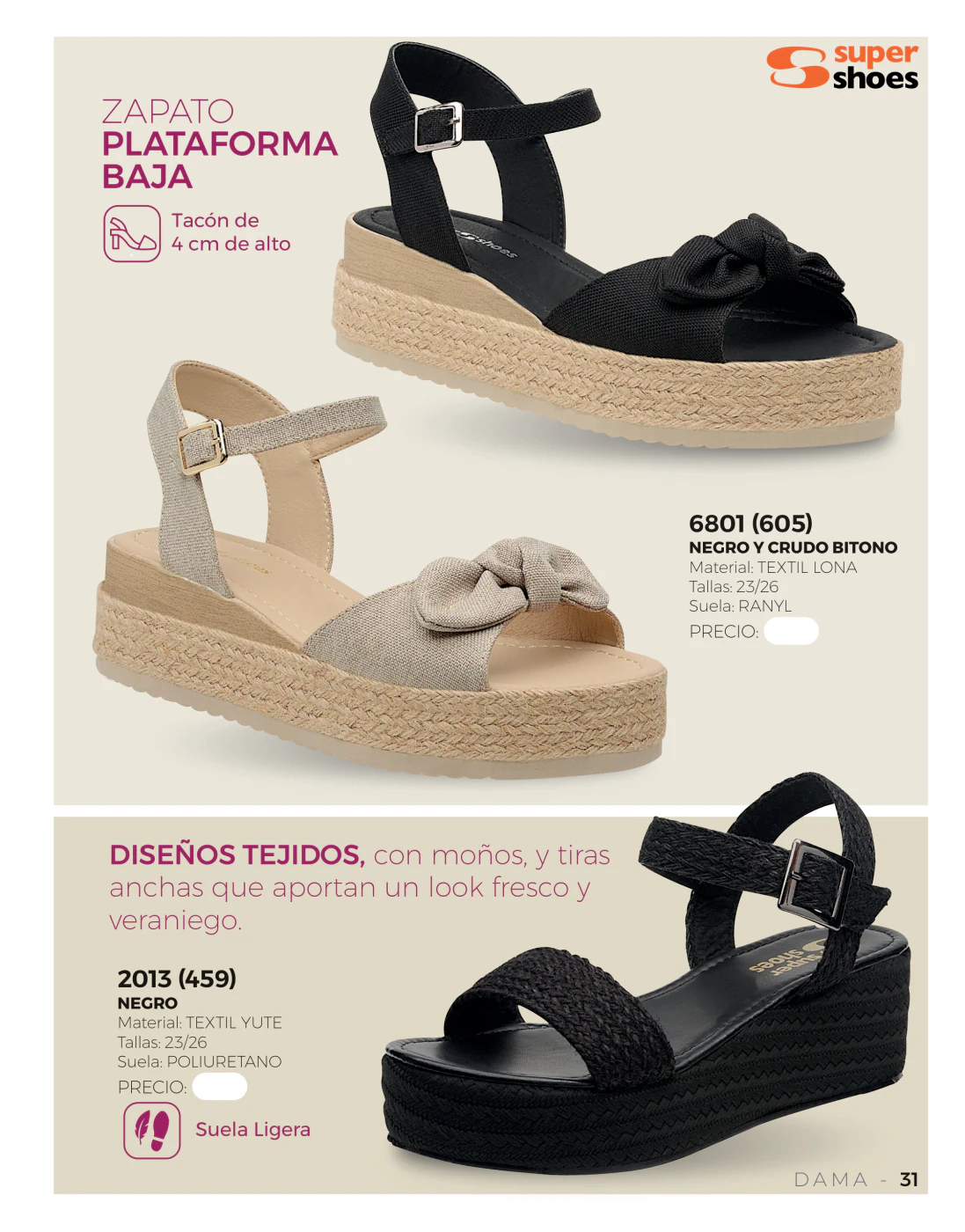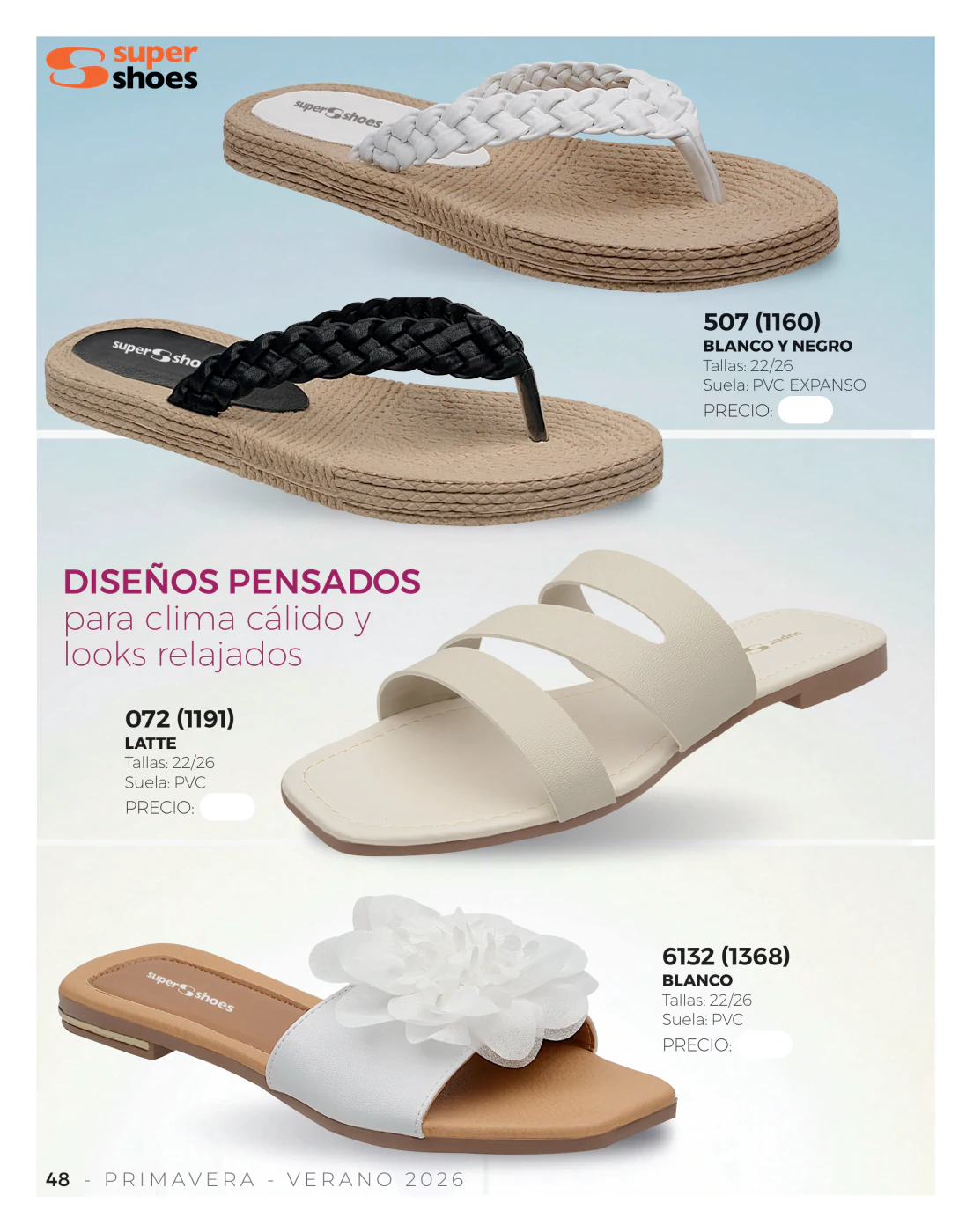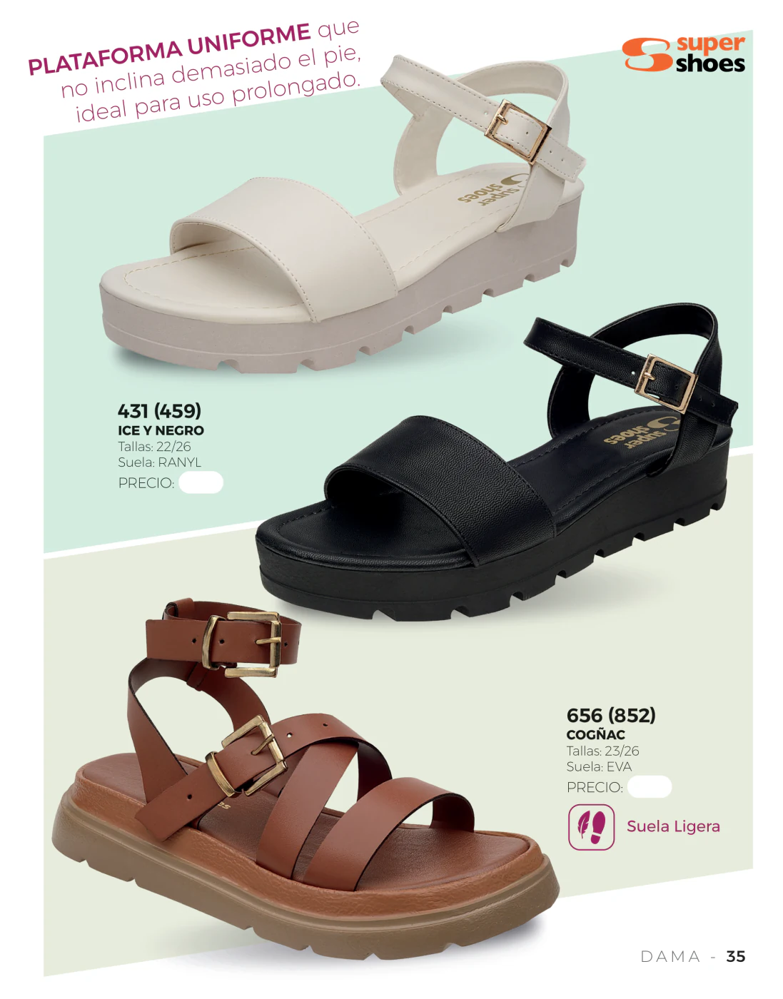 Estamos en la temporada primavera – verano y las olas y el sol llaman a pasar unos días frente al mar, en este sentido, las sandalias bajas resultan las compañeras ideales y en este catálogo Super Shoes primavera verano 2026 Dama México tienes muchas para elegir.