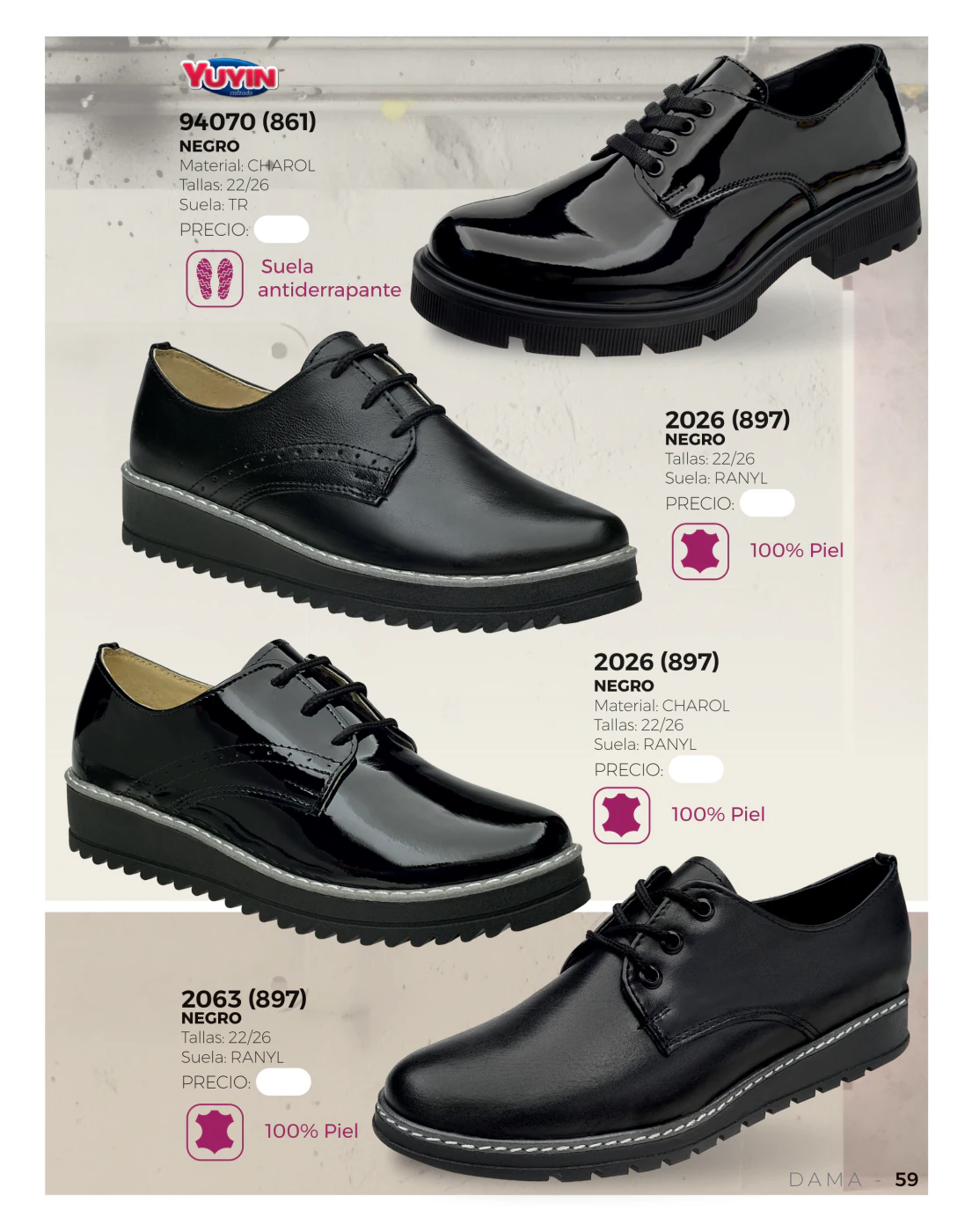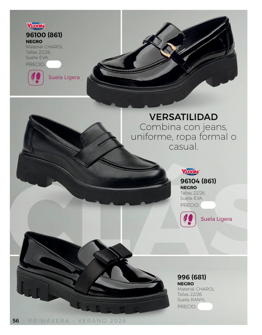 En este sentido, hay varias piezas que debemos destacar, como el modelo en mezclilla 7002 (573) con plataforma tejida, perfecto salidas informales, un modelo en charol de color carne 17301 (589) será el punto clave en ese outfit femenino y elegante y si lo que buscas son modelos trenzados sintéticos o gamuza, los de la página 9 empezarán a ser los favoritos desde hoy.