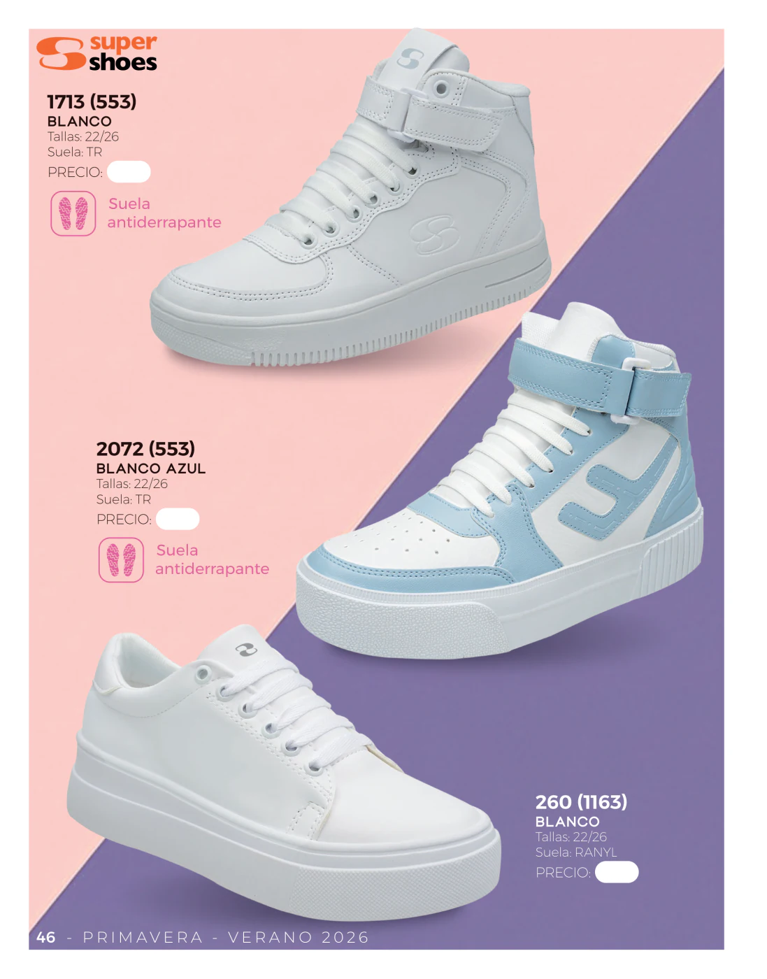 Vamos cerrando este recuento y debemos incluir una marca que todos aman, los convenientes Super Shoes México, el auténtico calzado urbano para dama que no puedes dejar de tener en esta primavera – verano 2026 México. Revisa las opciones de corte alto o bajo de las páginas que seguro querrás tener en todas sus presentaciones.