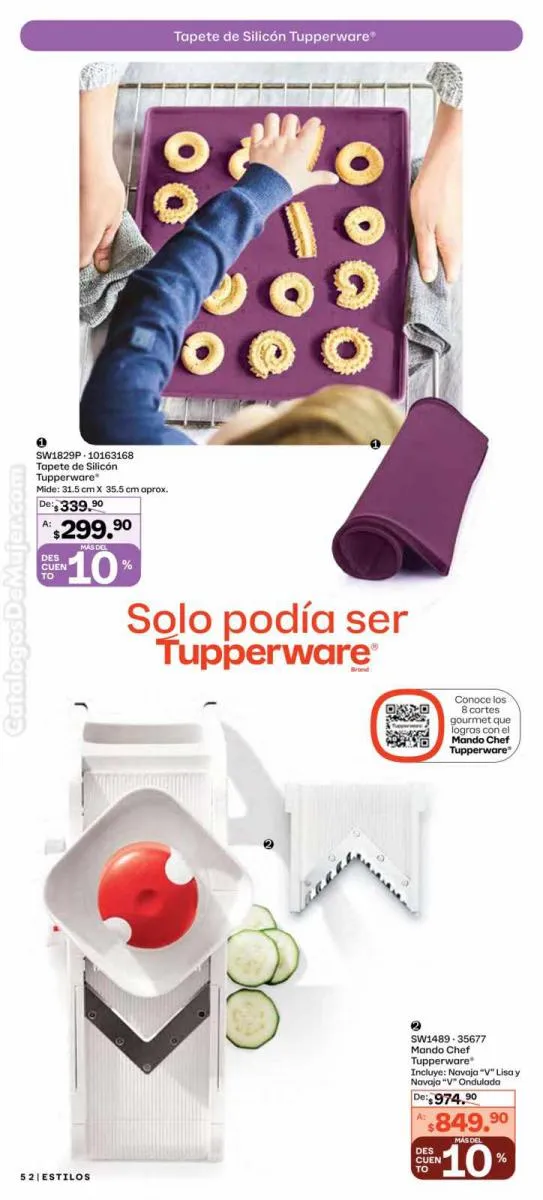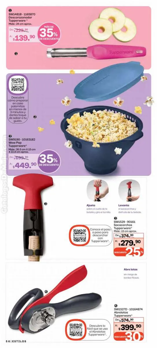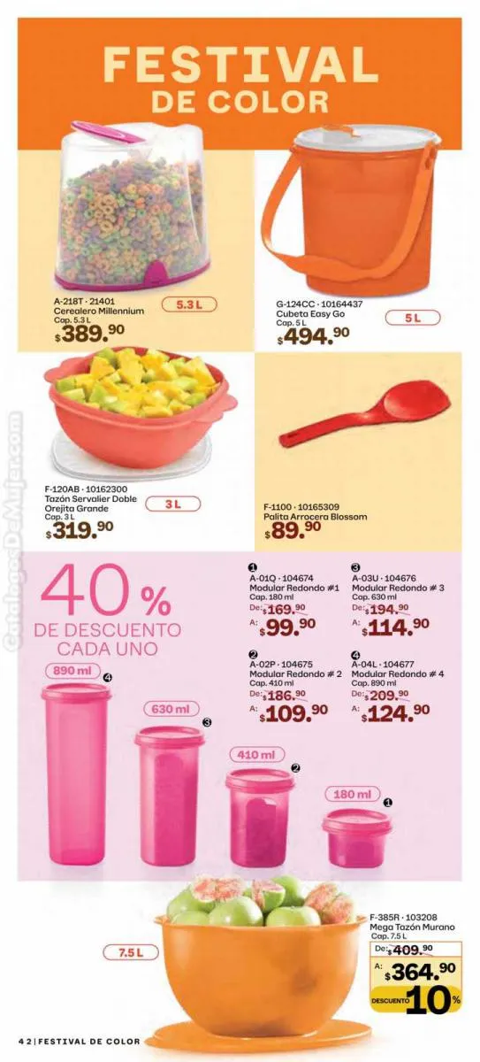 - También a 10% puedes llevar una excelente variedad de productos Tupperware (pág. 56) como la gelarica jumbo, el recipiente portavianda, la copa distinción, el Luxury de 1,5 litros con tapa, el medidor con tapa o la practi tabla.
