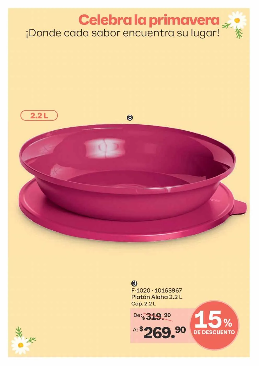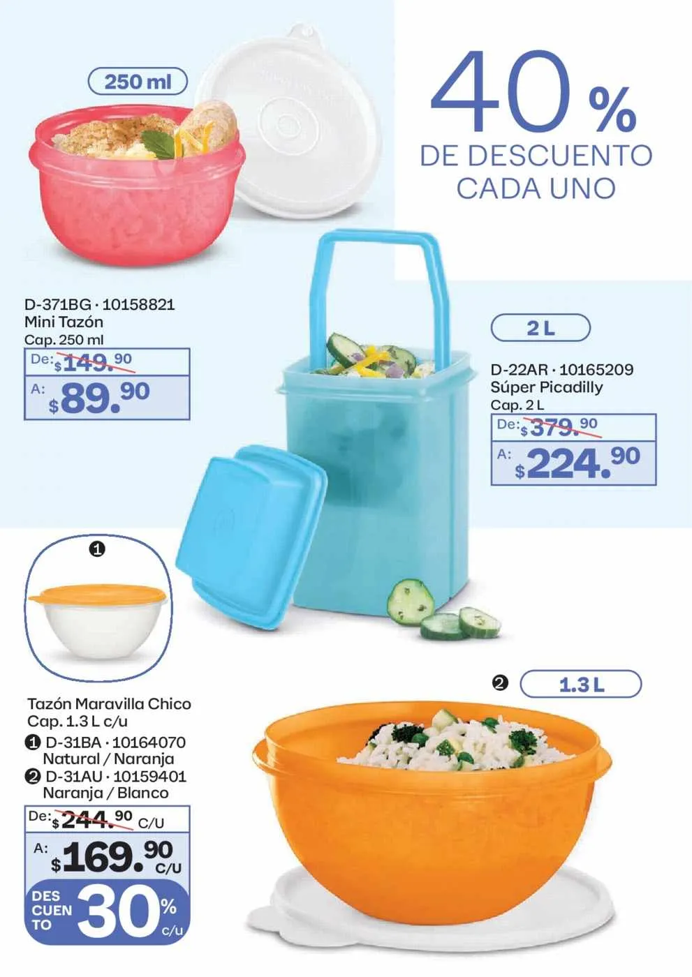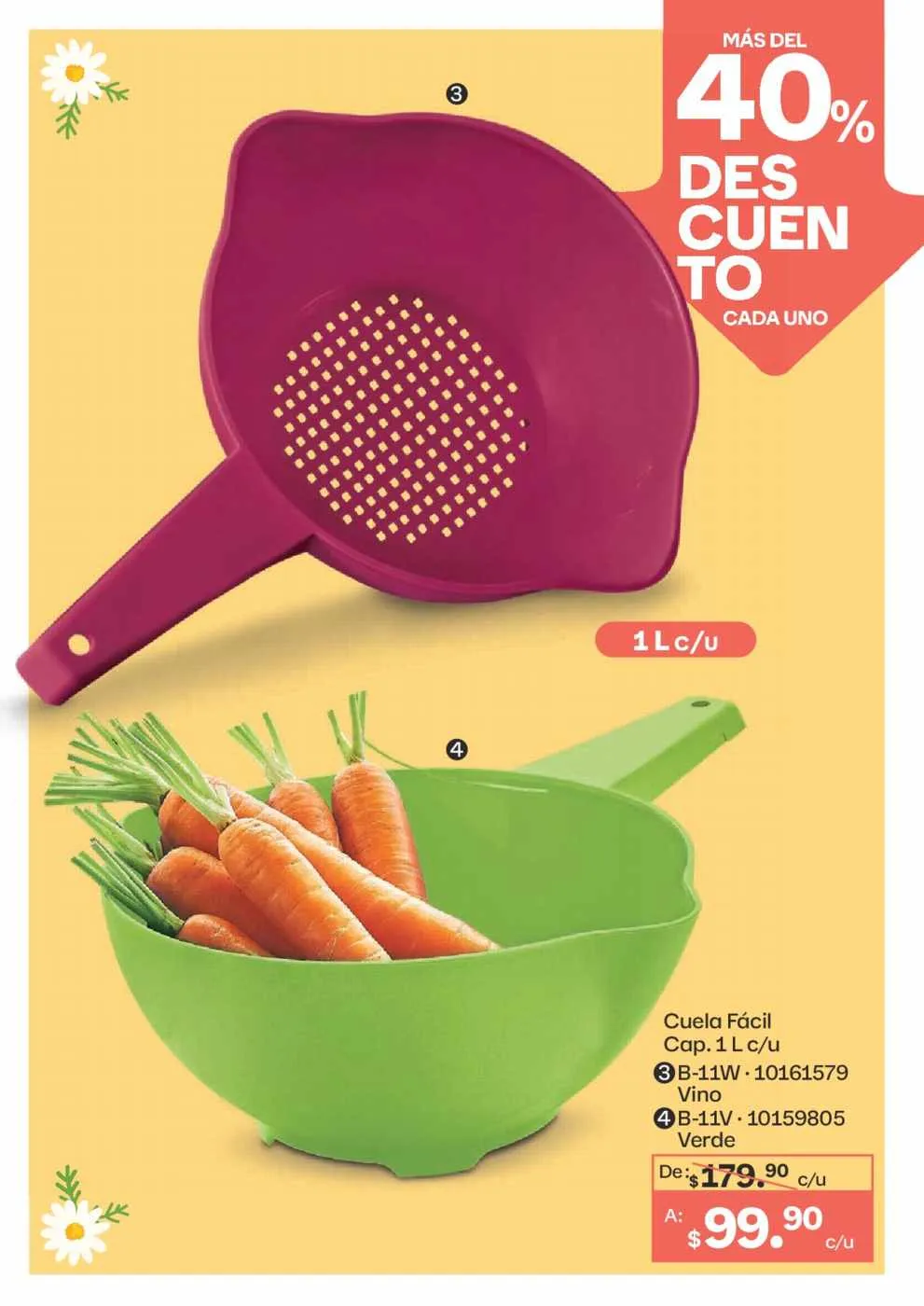- El Tazón Blossom de 1,3 litros y el de 2,5 litros a 35% de descuento (pág. 62).