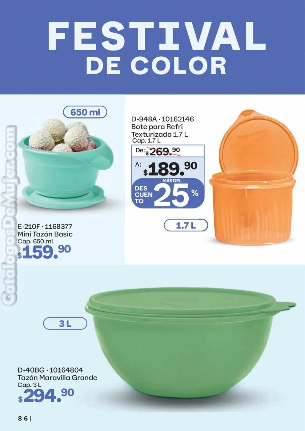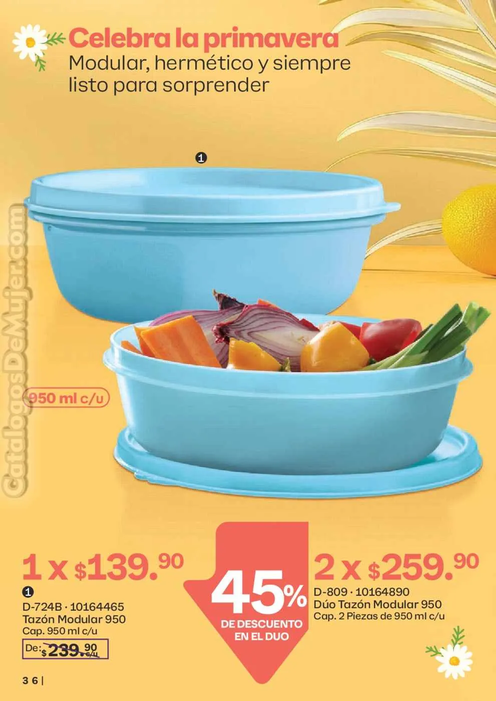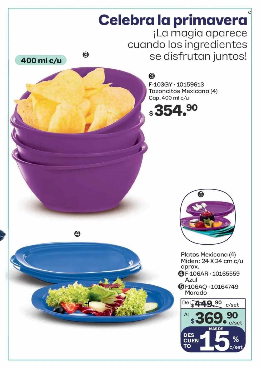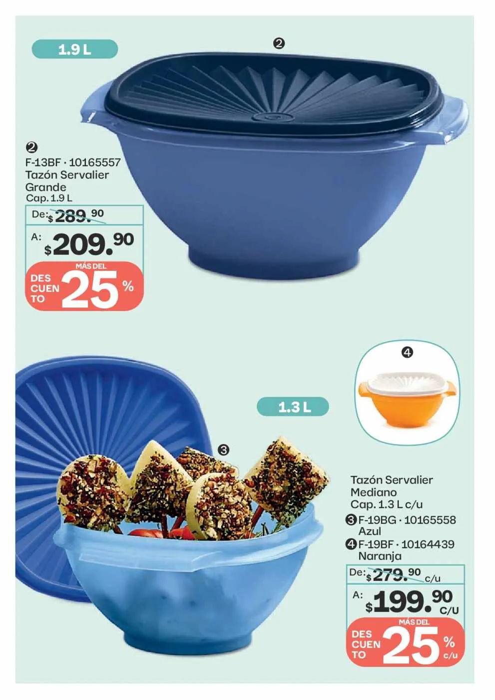 - El Tazón Blossom de 1,3 litros y el de 2,5 litros a 35% de descuento (pág. 62).