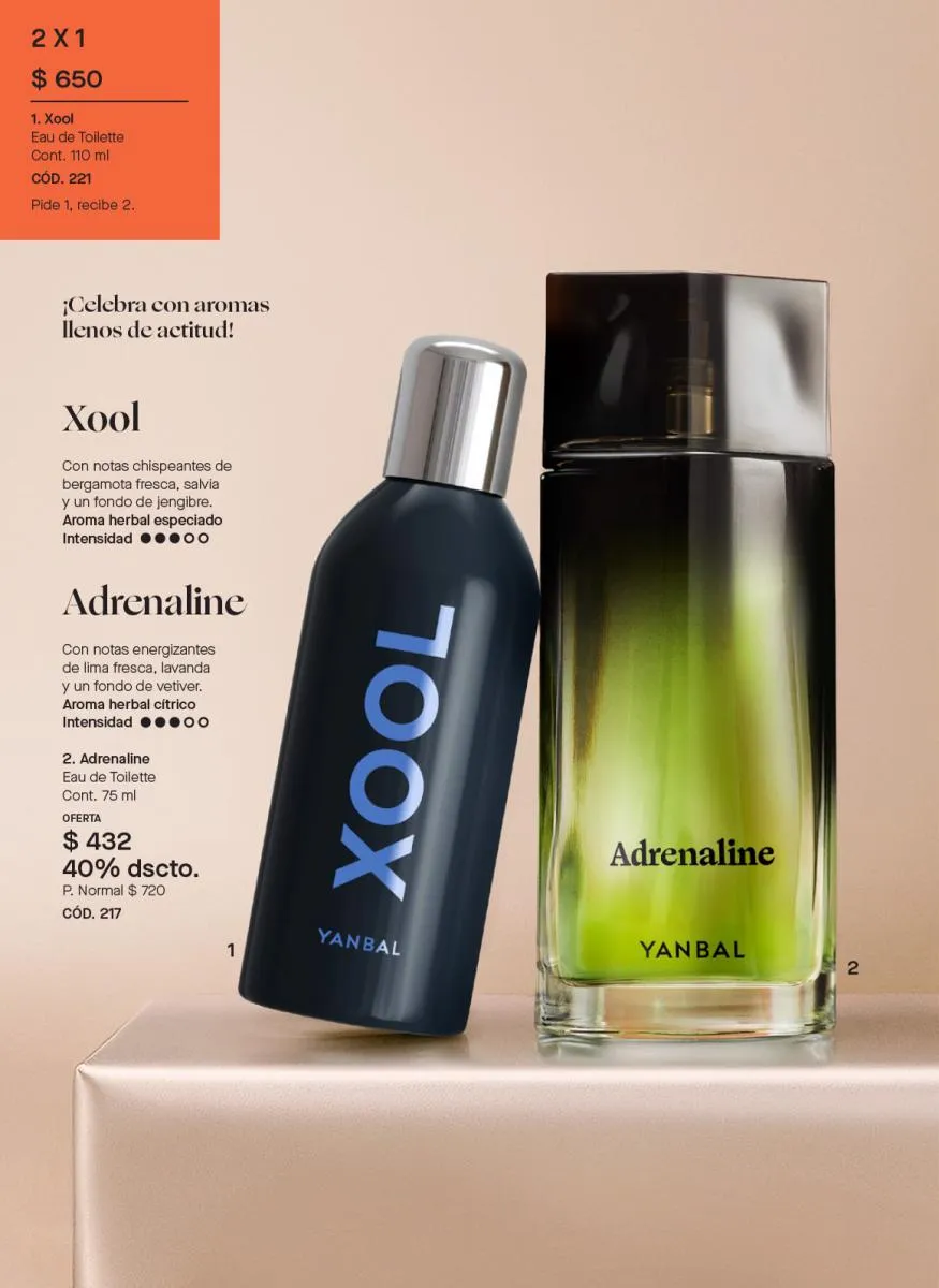 Para caballero, a un 25% off tienes las fragancias de Focco, Sprio Blue, Adrenaline. Y hay más a 30 y 35% de descuento en este mes.