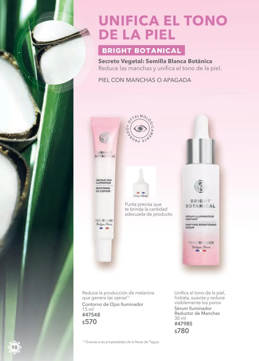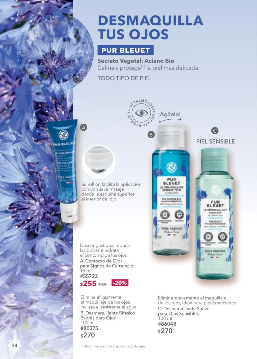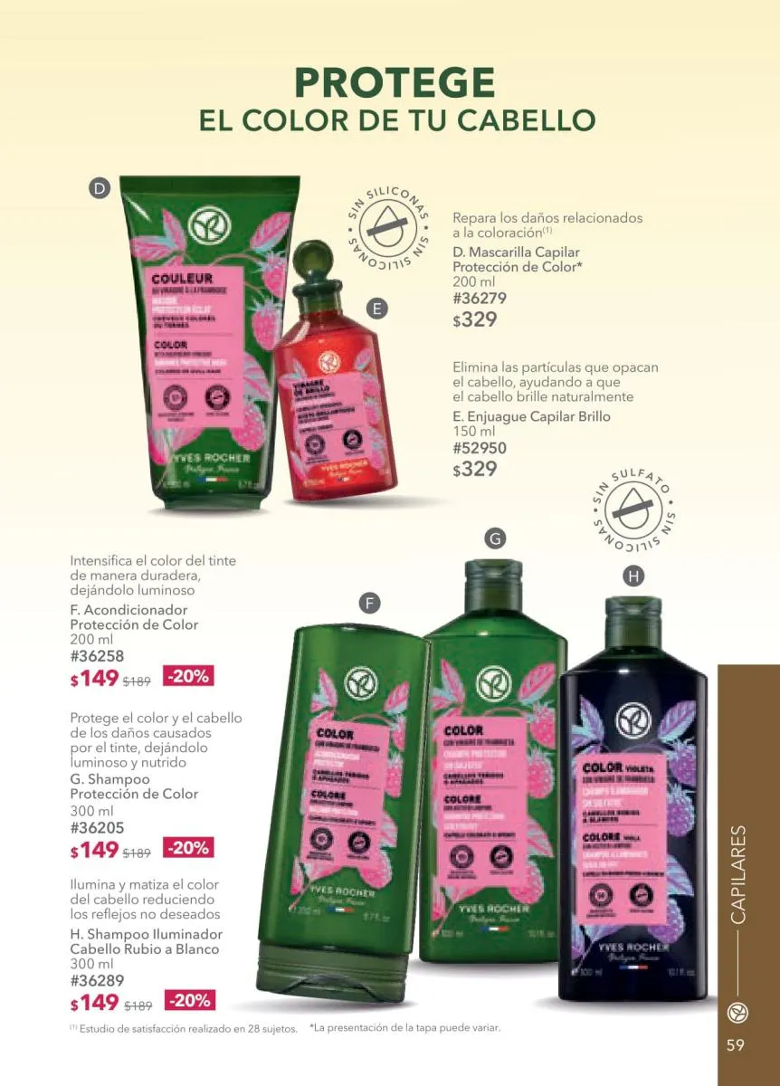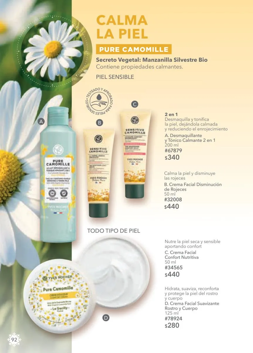 - Desde la página 74 encontrarás mucho más en la categoría de maquillaje con las líneas favoritas de Yves Rocher. Consulta los fabulosos precios de los rubores, máscaras, bases y demás que te harán destacar en estas fiestas.