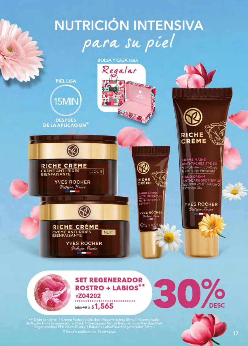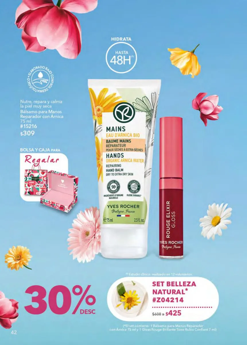 Novedades del catálogo Yves Rocher campaña 6 2026 para México. Porque sabemos que los cuidados de la piel son importantes, llévate el bálsamo labial antiarrugas nutri recuperador con un 50% de descuento. Además, adquiere todos los productos para el cuidado, la regeneración o hidratación de la piel, el cabello, las manos, a precios accesibles y con promociones especiales. Son muchas las opciones que tenemos para que le des a tu mamá una sorpresa original y personalizada.