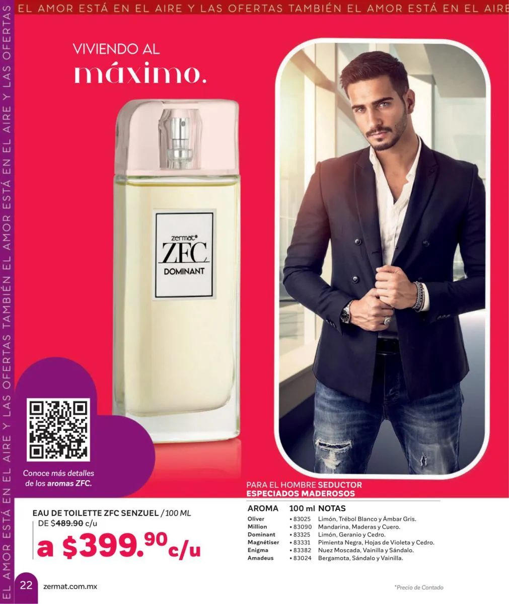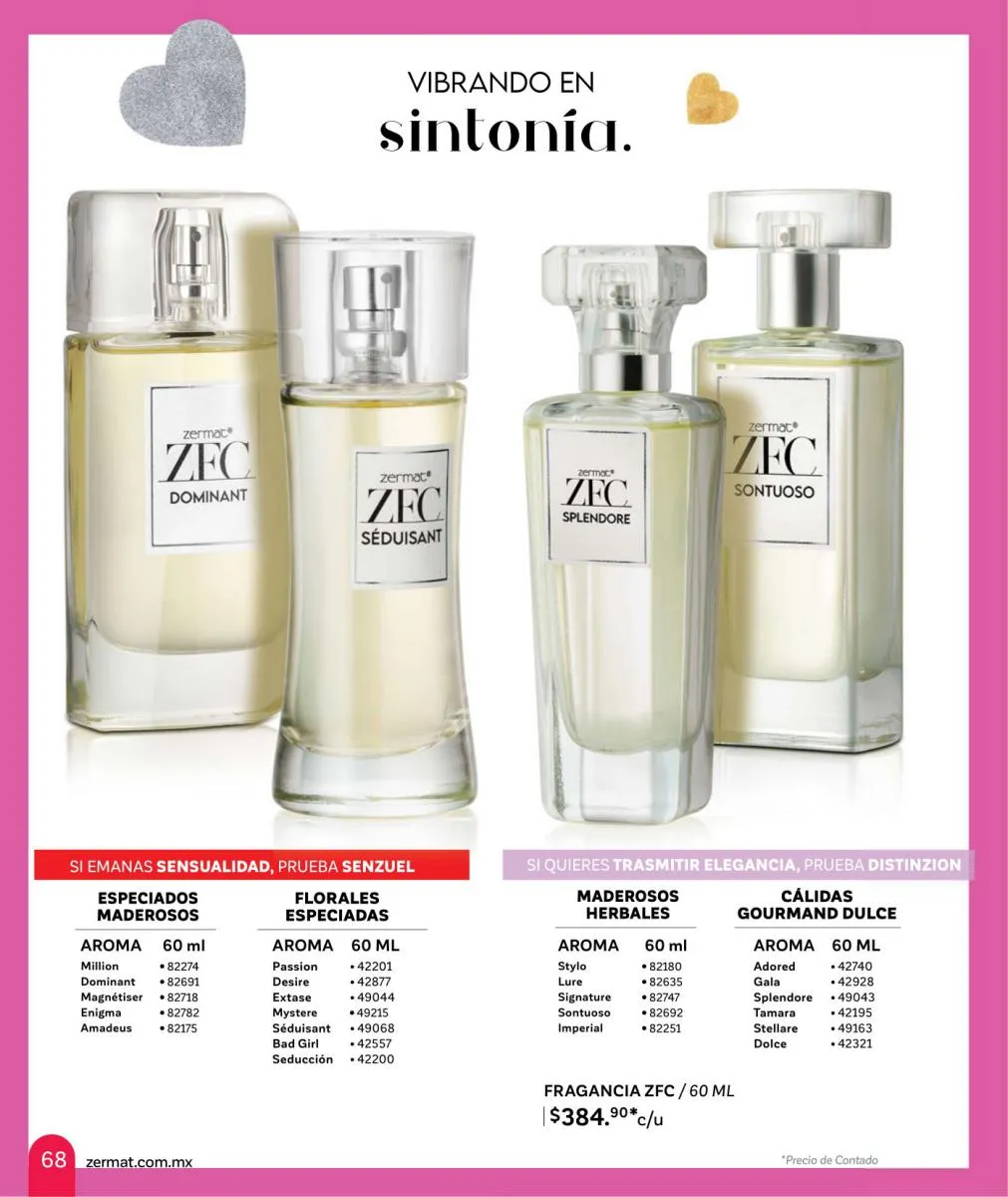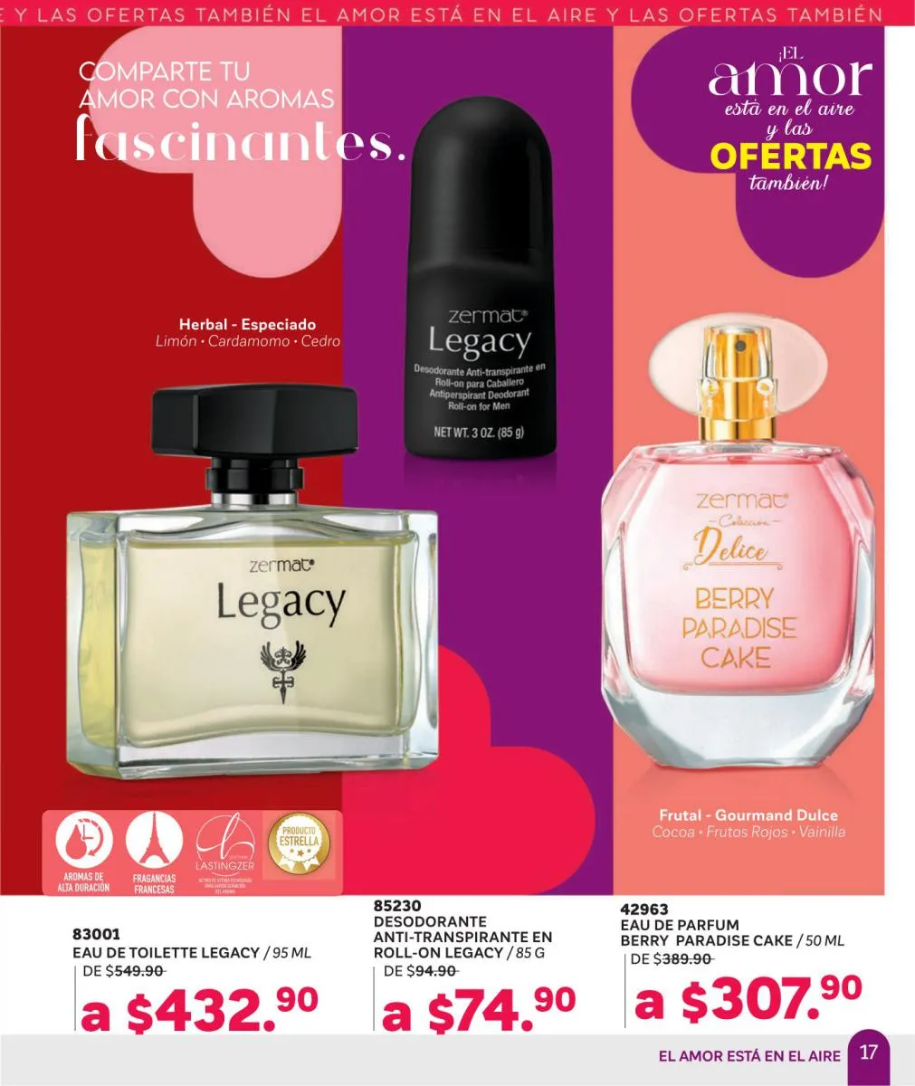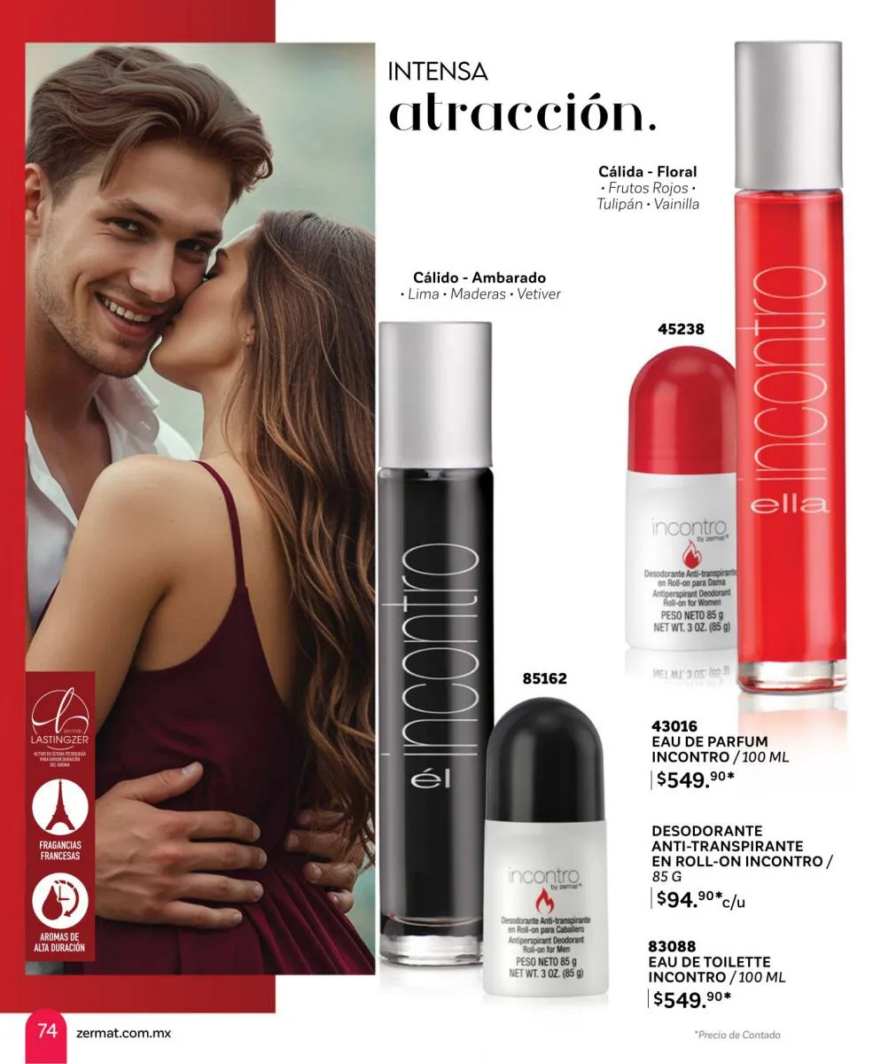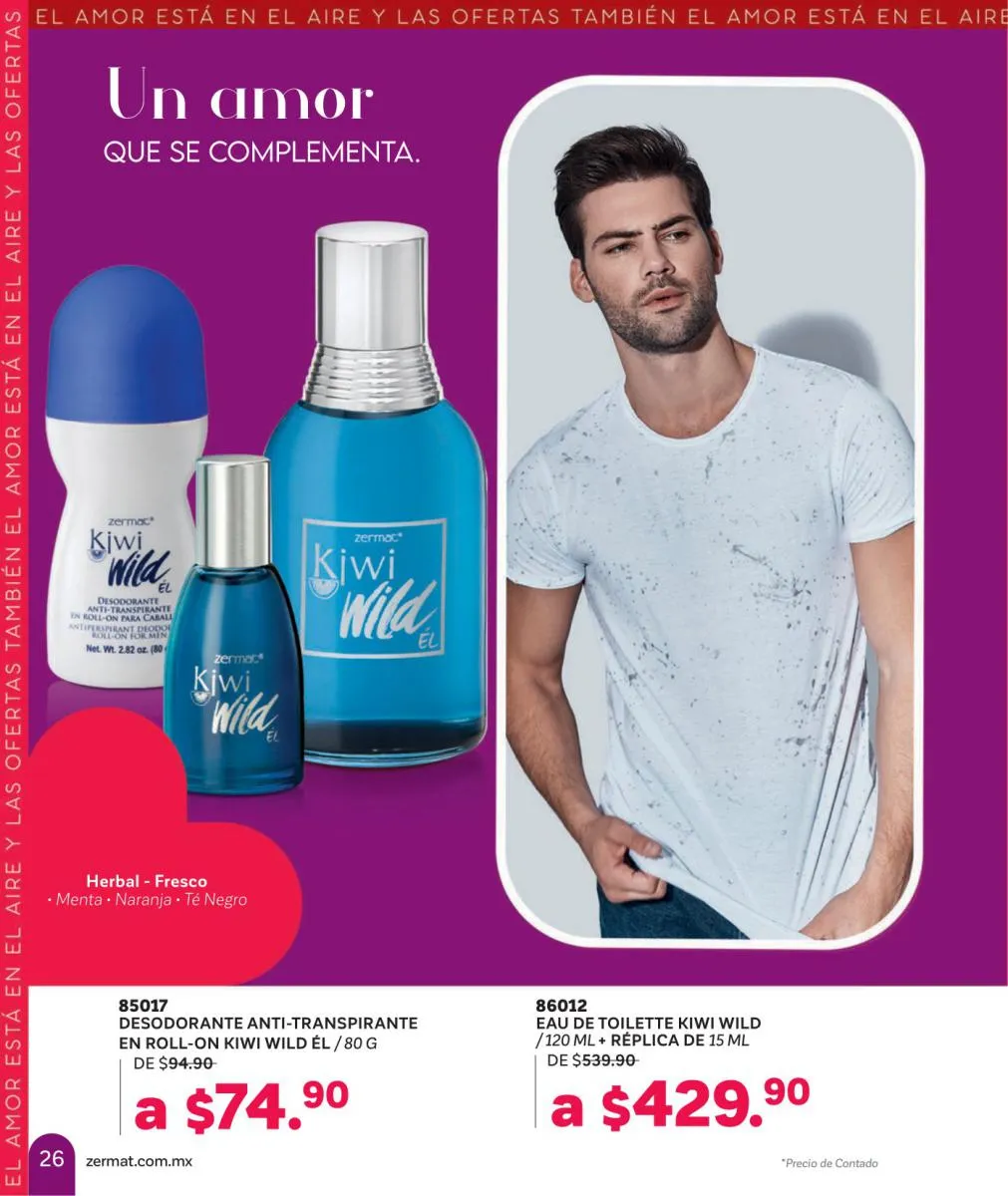 Comparte amor y disfruta las mejores aventuras, descubre nuevas fragancias, en esta Zermat catálogo Febrero 2026 México te ofrecemos perfumes llenos de seducción, para que transmitas pura sensualidad y generes un ambiente cargado de pasión. Sorprende a tu pareja con una de nuestras lociones corporales, desodorantes o perfumes. Tenemos excelentes opciones para hombres y mujeres, para que lleven su relación a un nuevo nivel.