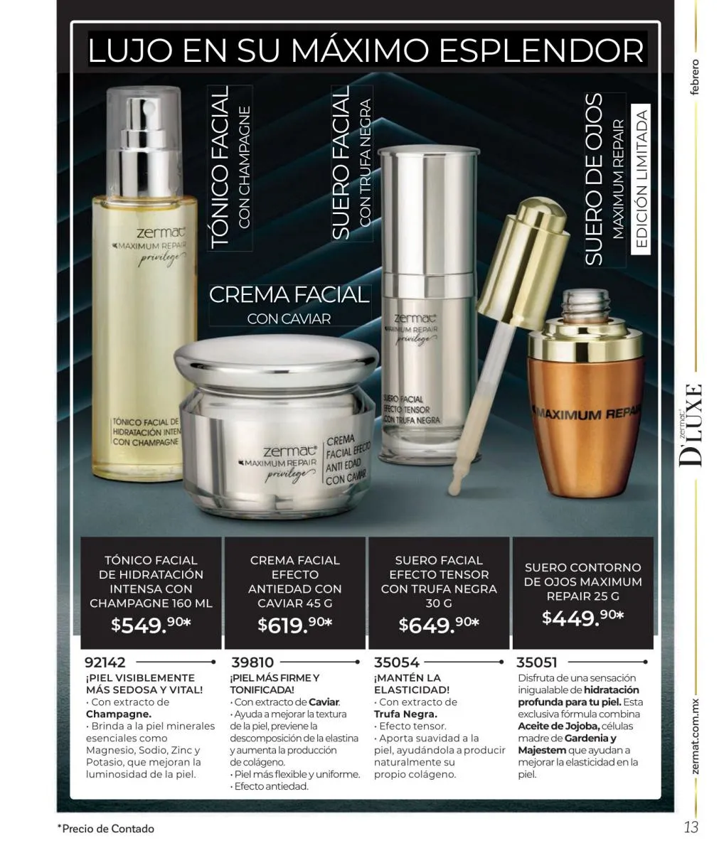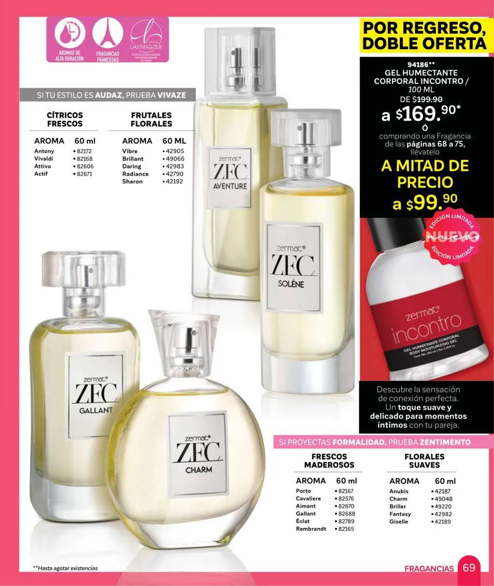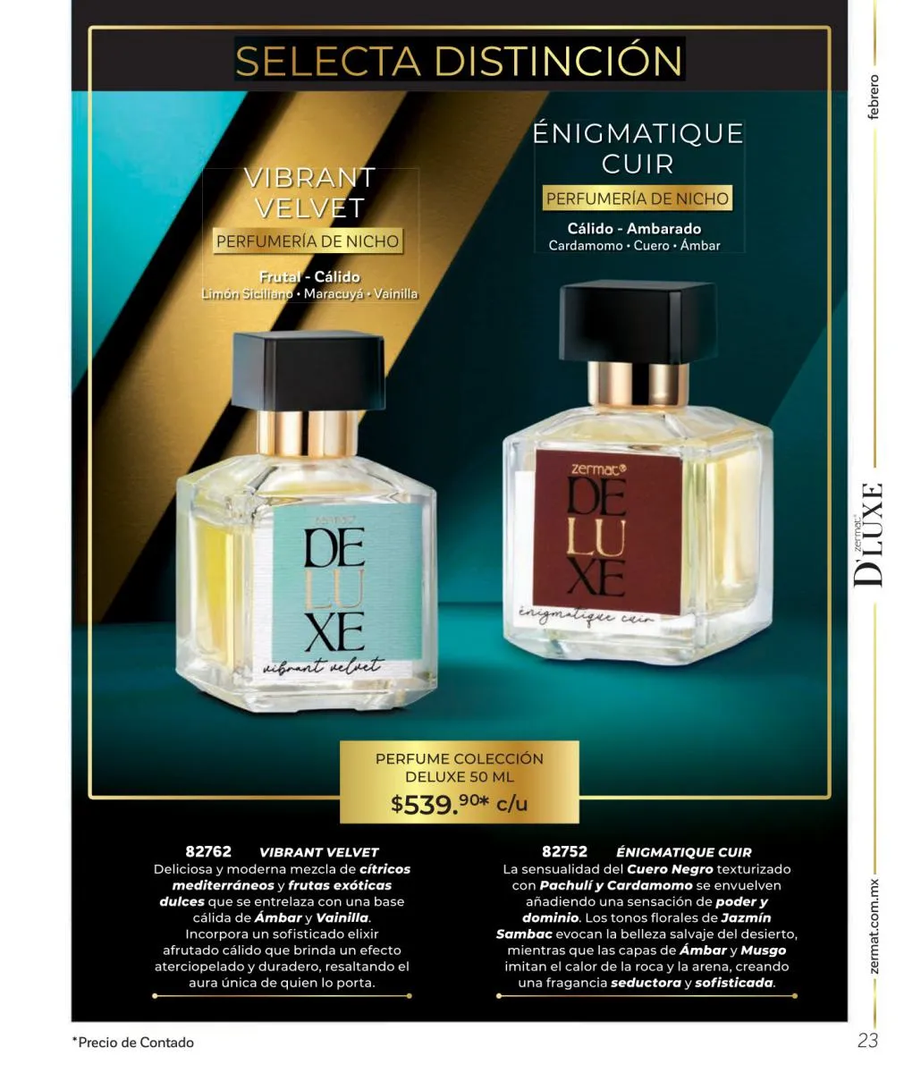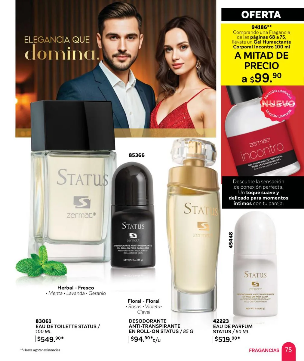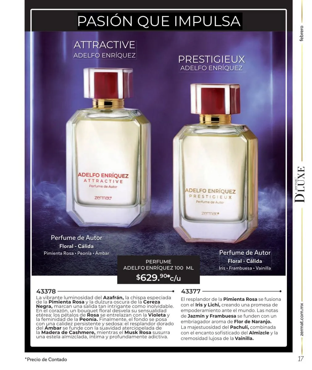 Comparte amor y disfruta las mejores aventuras, descubre nuevas fragancias, en esta Zermat catálogo Febrero 2026 México te ofrecemos perfumes llenos de seducción, para que transmitas pura sensualidad y generes un ambiente cargado de pasión. Sorprende a tu pareja con una de nuestras lociones corporales, desodorantes o perfumes. Tenemos excelentes opciones para hombres y mujeres, para que lleven su relación a un nuevo nivel.